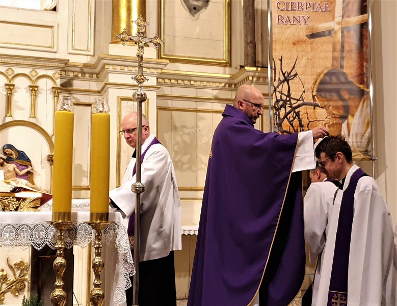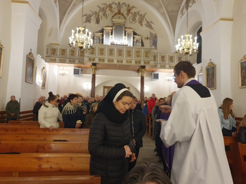 Parafia Tymbark – Środa Popielcowa, obrzęd posypania głów popiołem