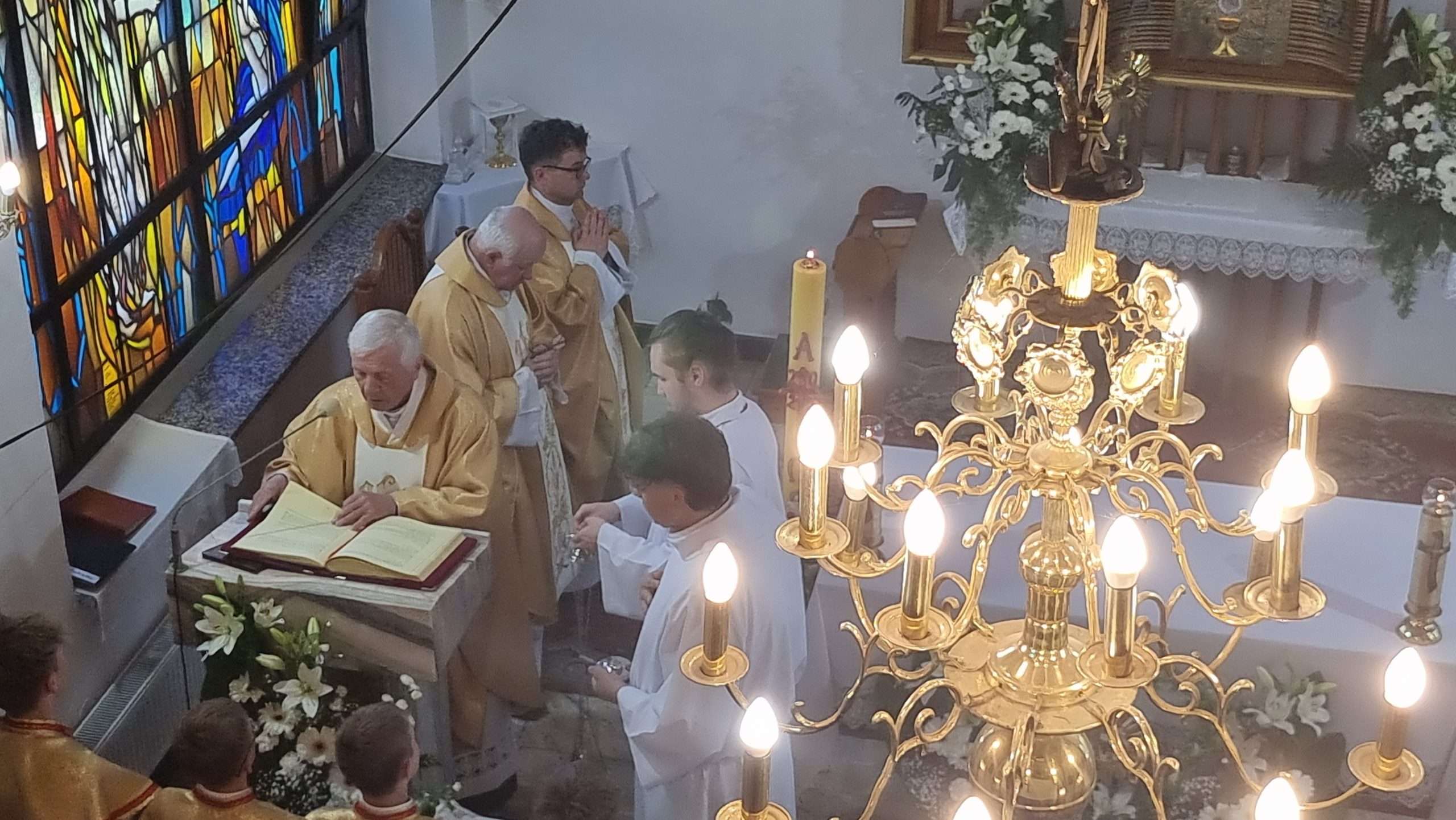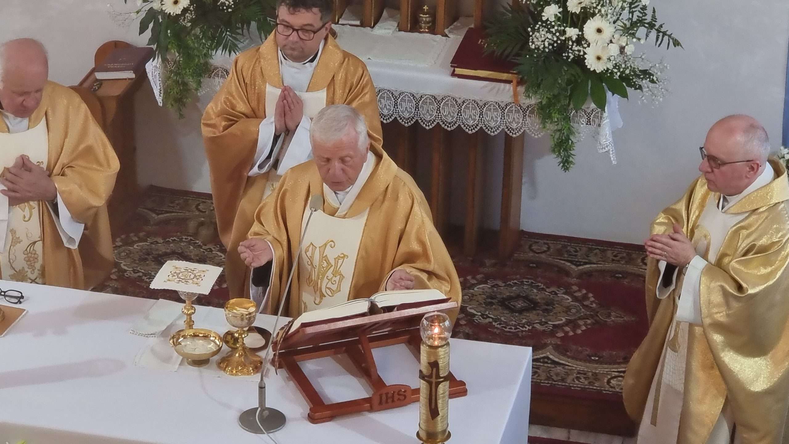 Uroczystej Eucharystii (o godz.11) przewodniczył ks. Roman Kurowski wikariusz w Brzeznej i duszpasterz w sanktuarium na Strzygańcu. W koncelebrze Msze św. sprawowali ks.proboszcz Parafii Tymbark Jan Banach, rodak Piekiełka ks. Antoni Augustyn oraz rezydent Parafii Tymbark ks.Józef Nowak.