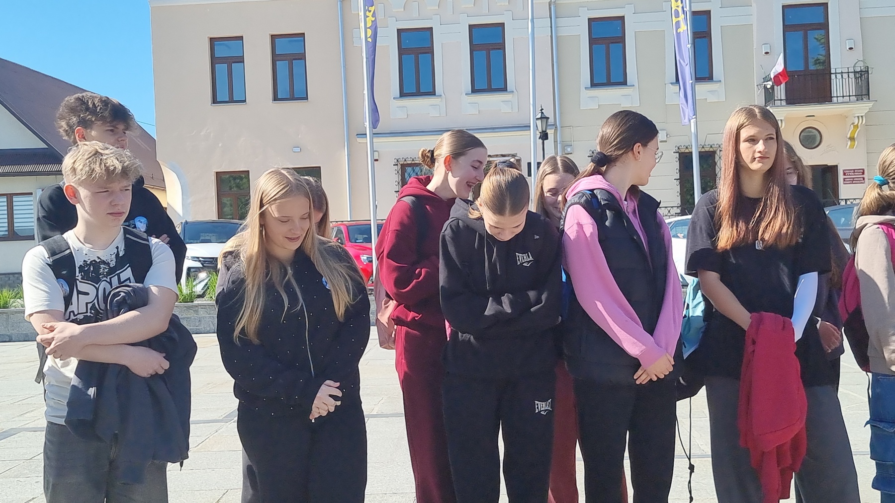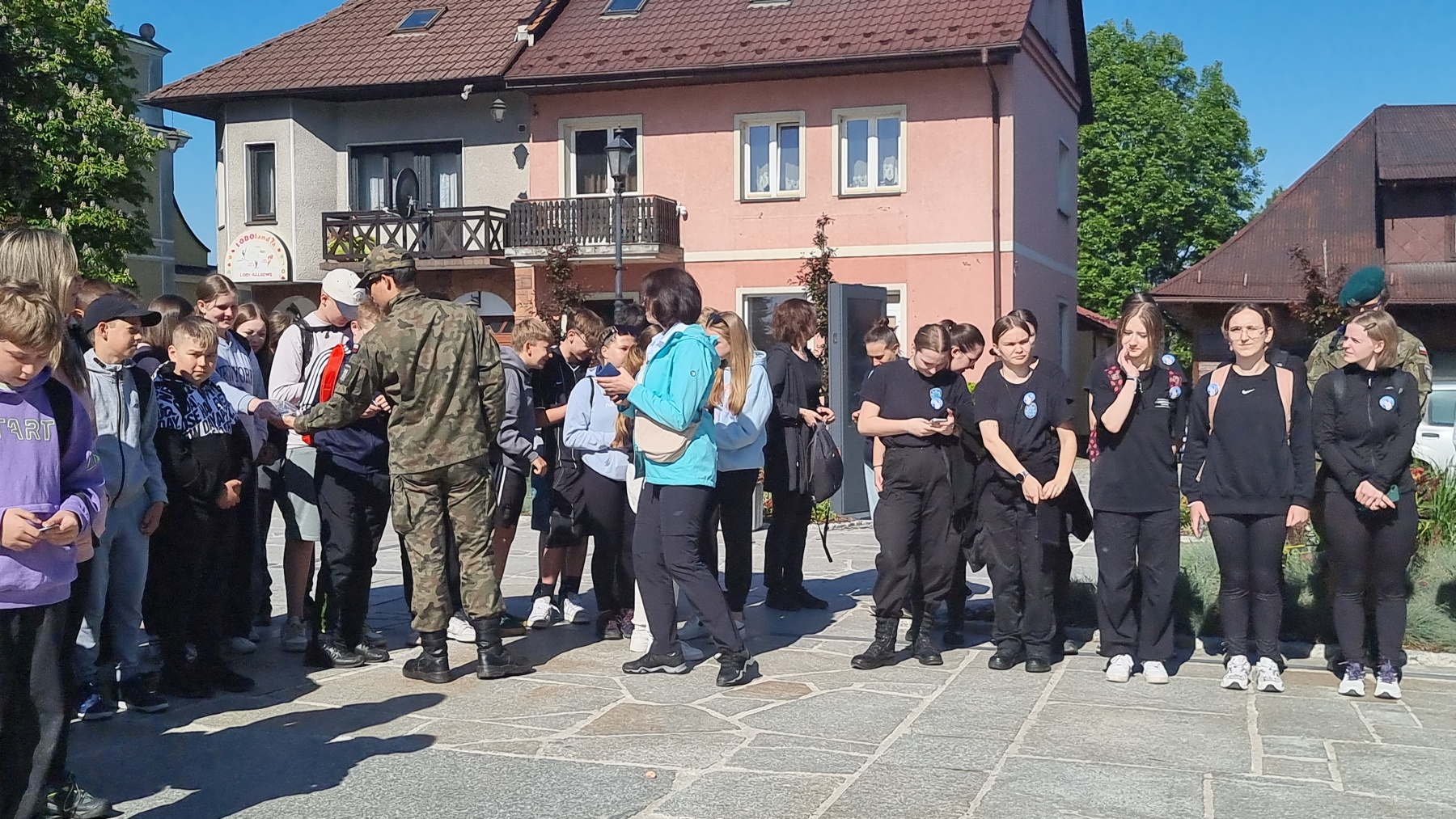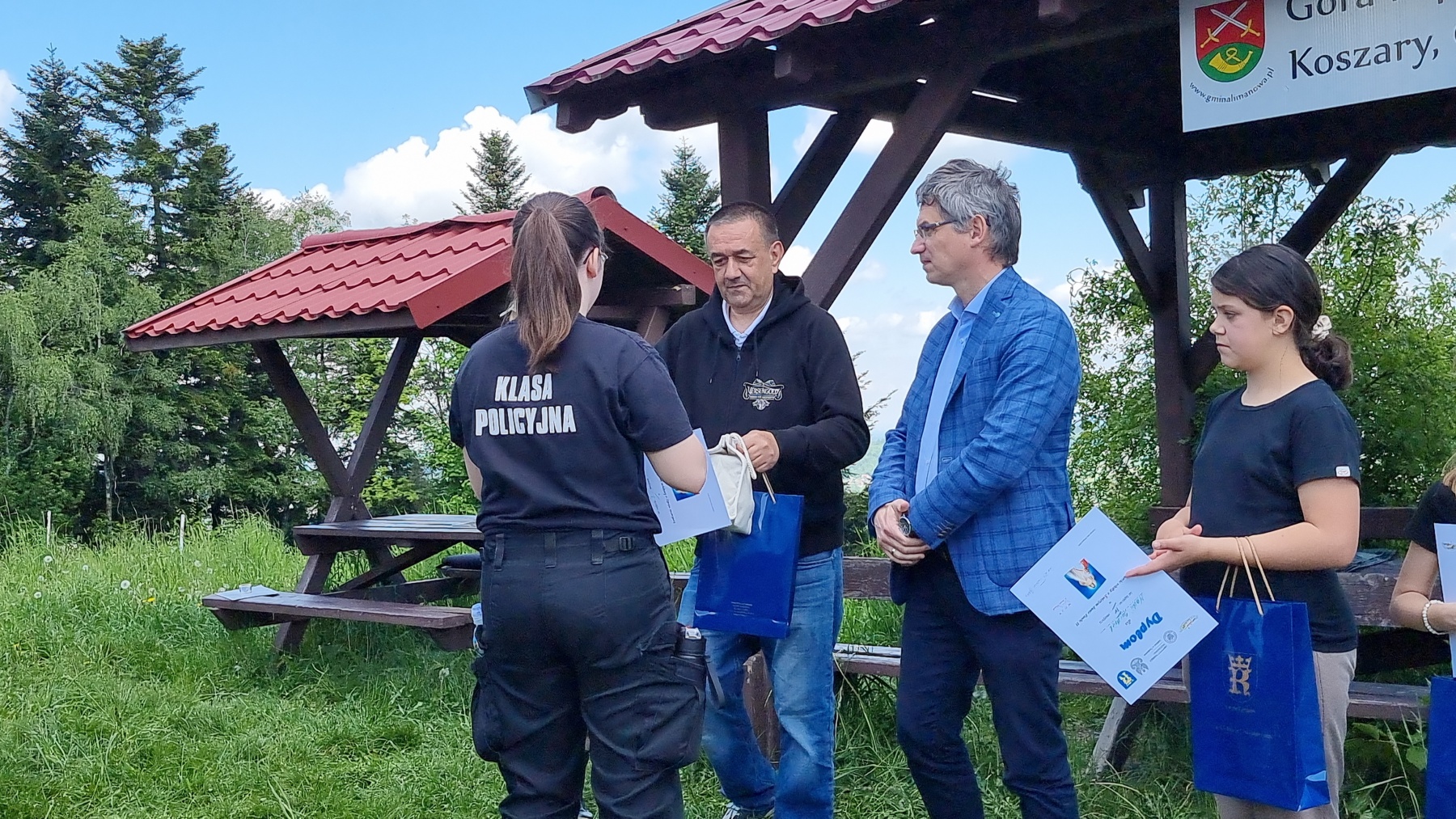wszyscy z Zespołu Szkół im. KEN w Tymbarku, uczniowie klas policyjnych.