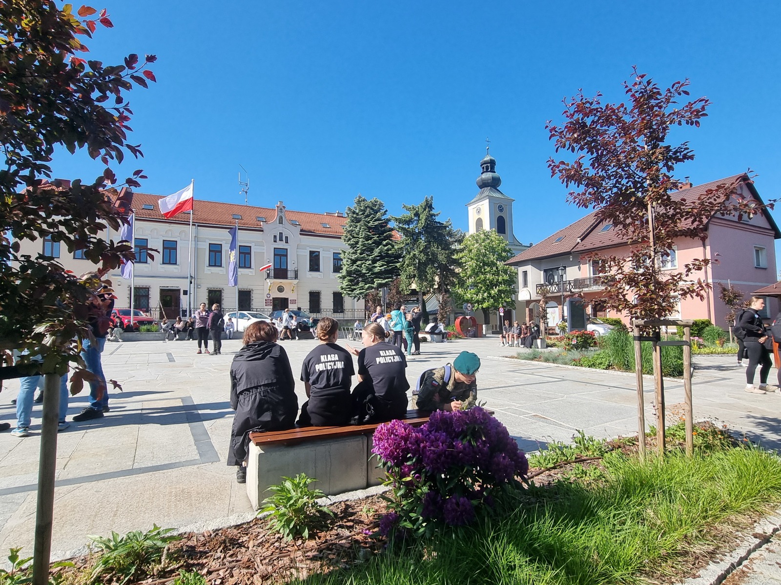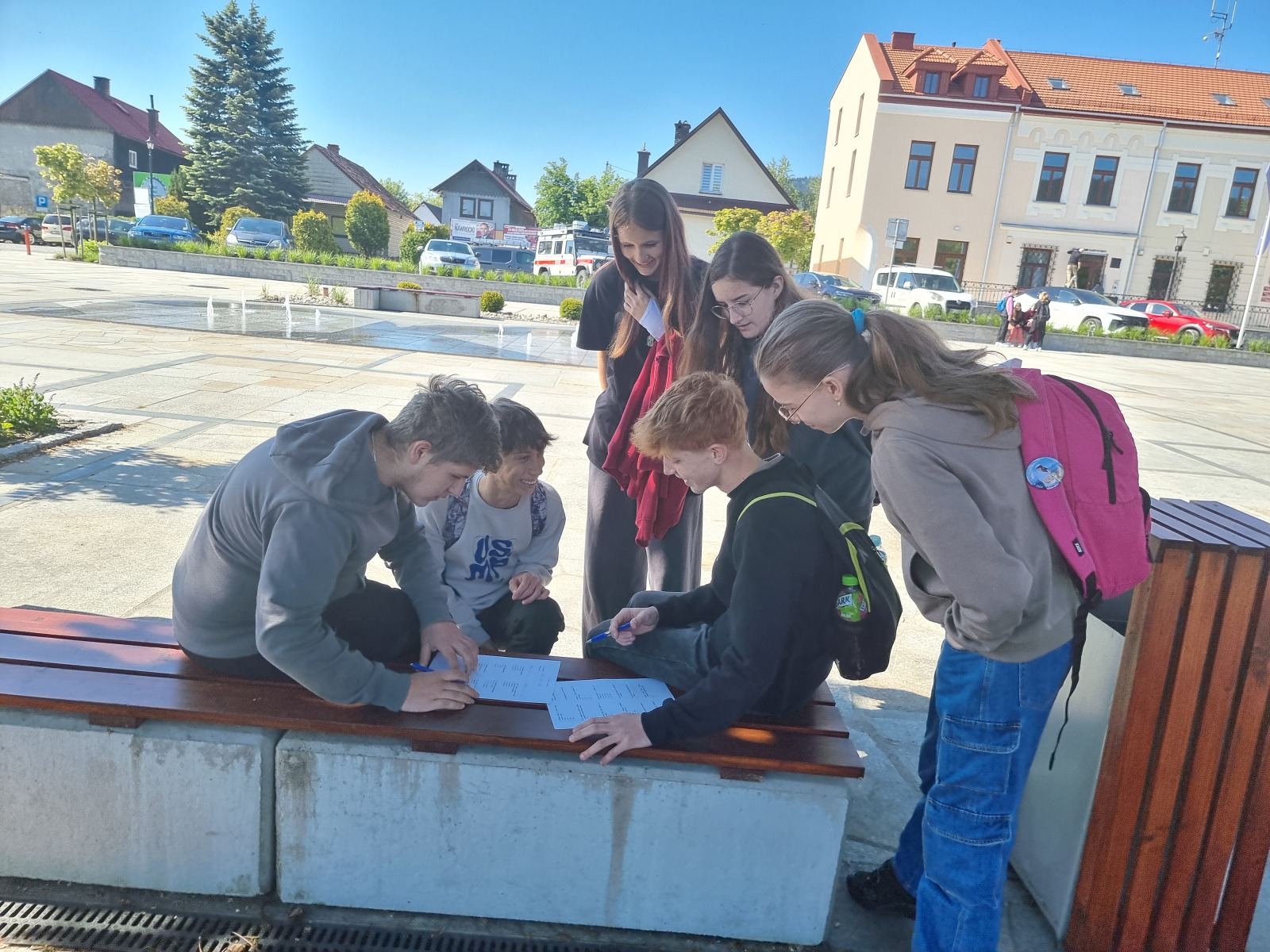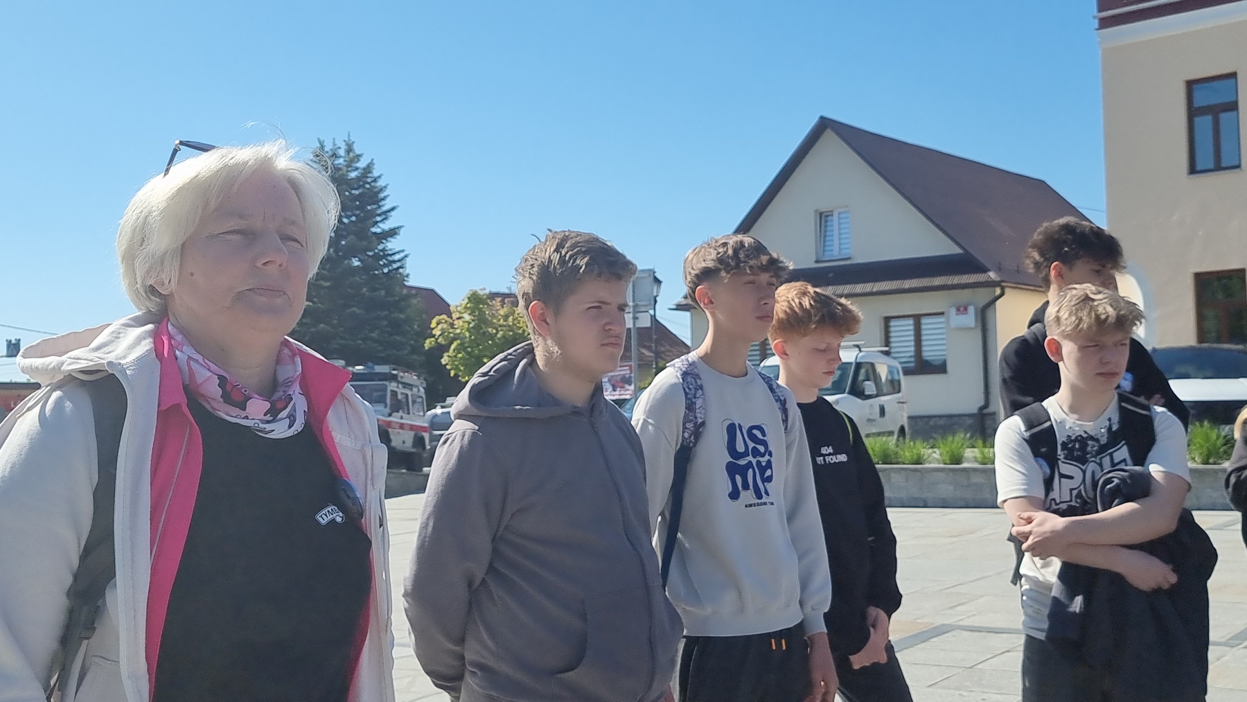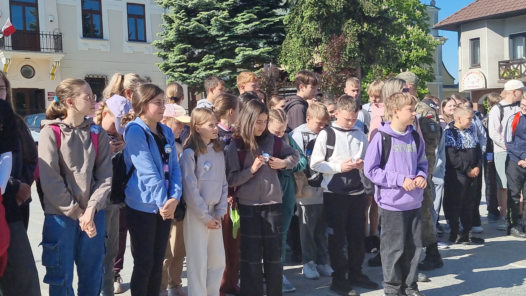wszyscy z Zespołu Szkół im. KEN w Tymbarku, uczniowie klas policyjnych.