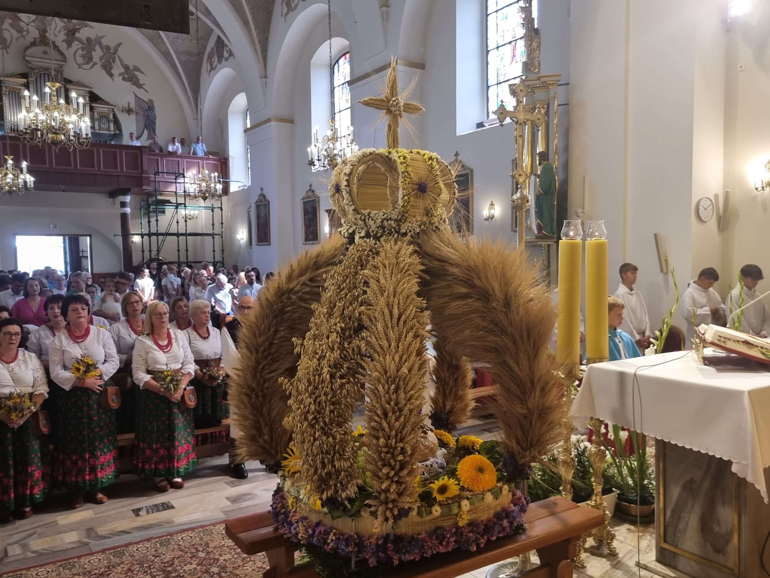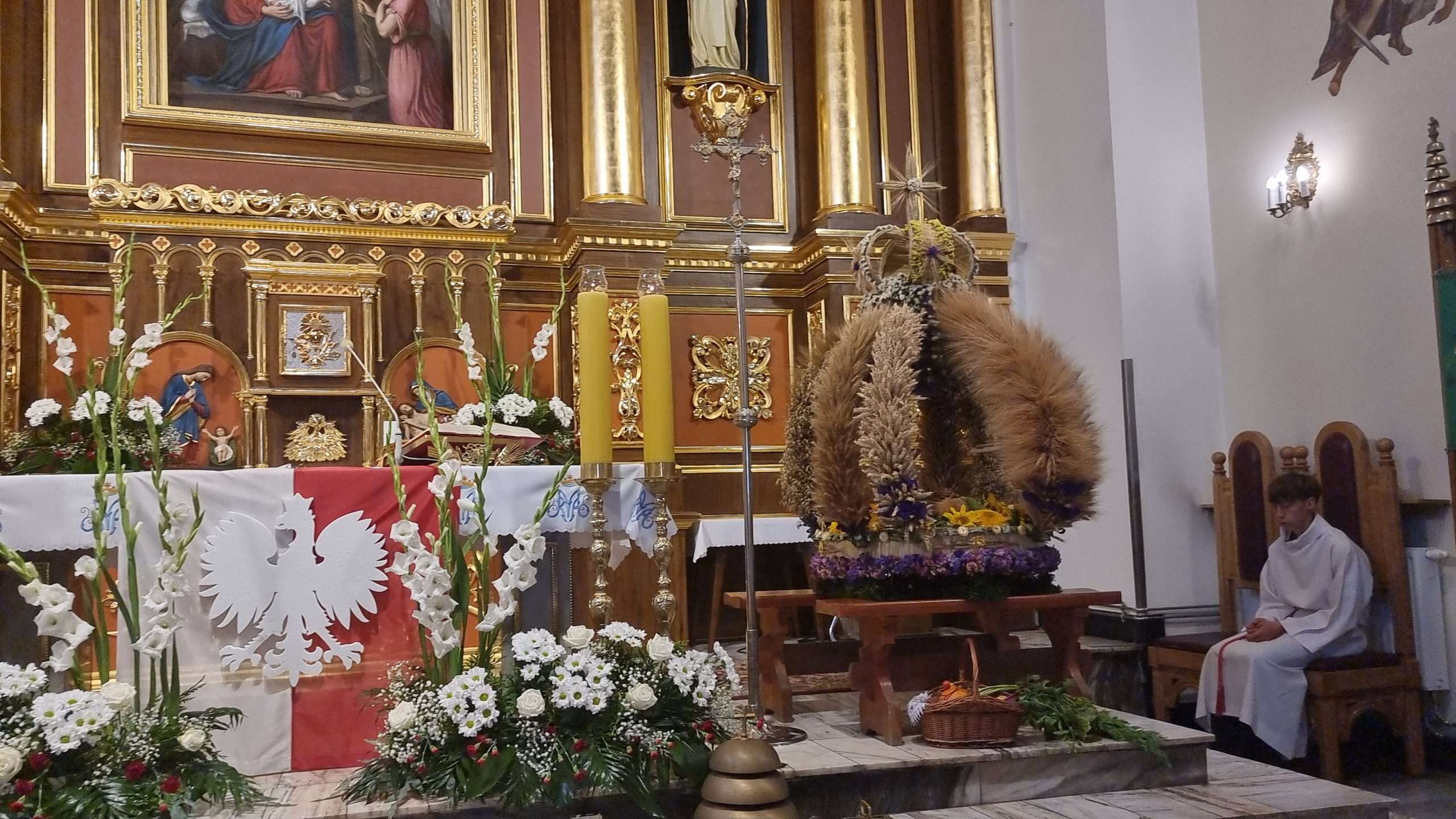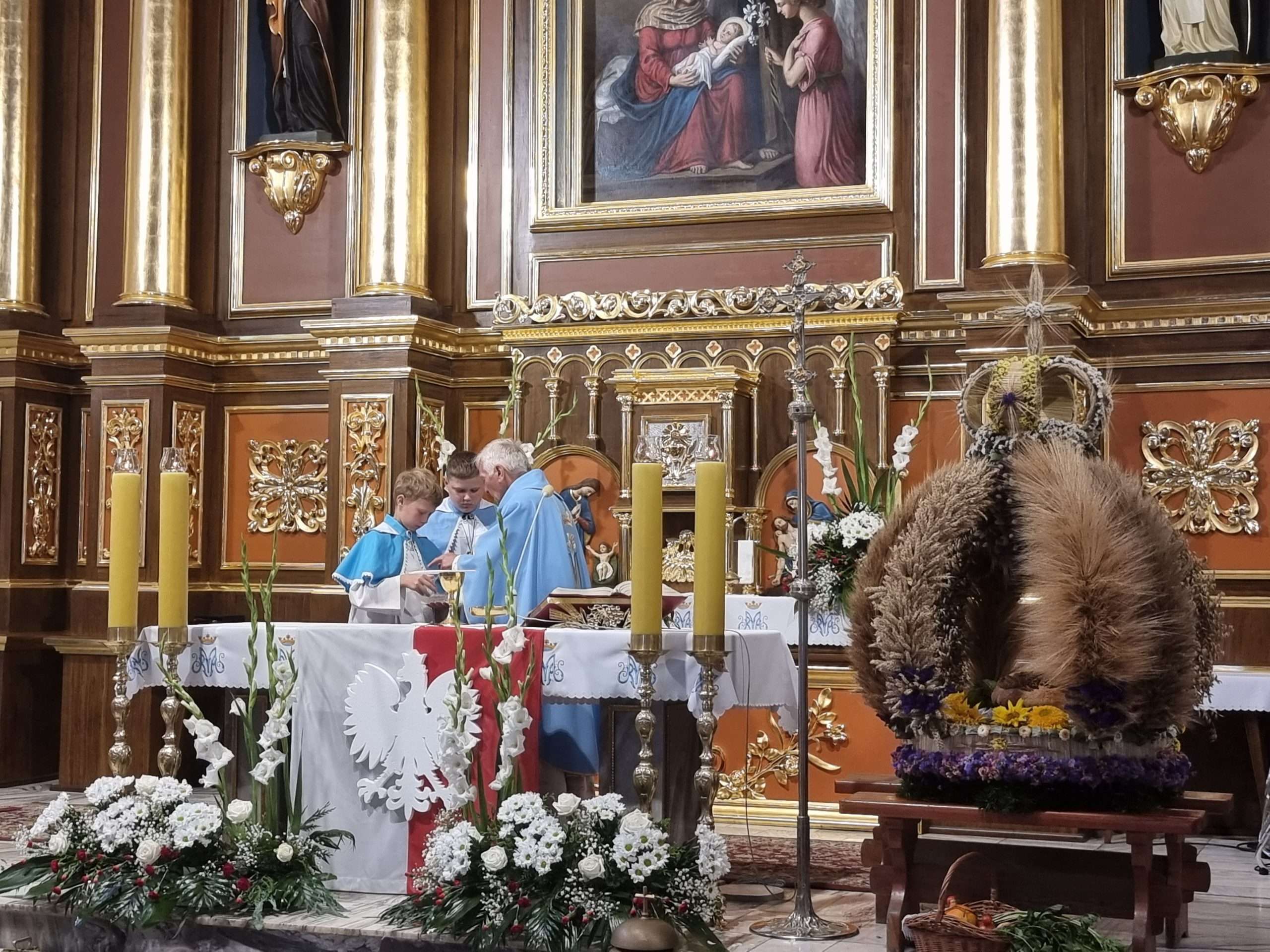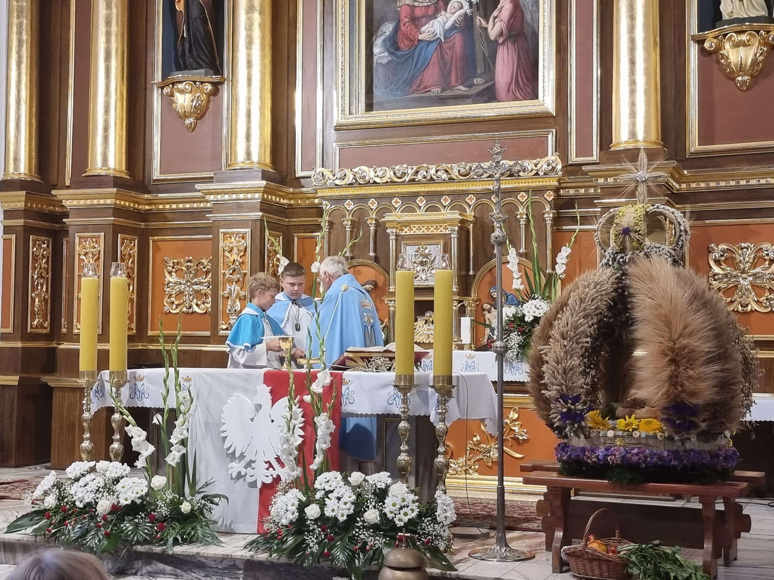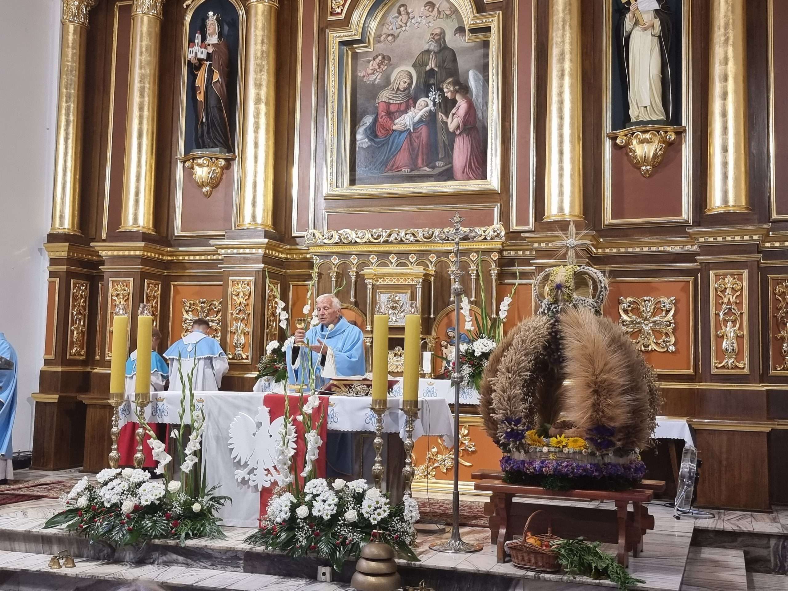 W tymbarskiej parafii Eucharystia o godz.10 rozpoczęła się wprowadzeniem do świątynie wieńca żniwnego oraz błogosławieństwem kwiatów i ziół.