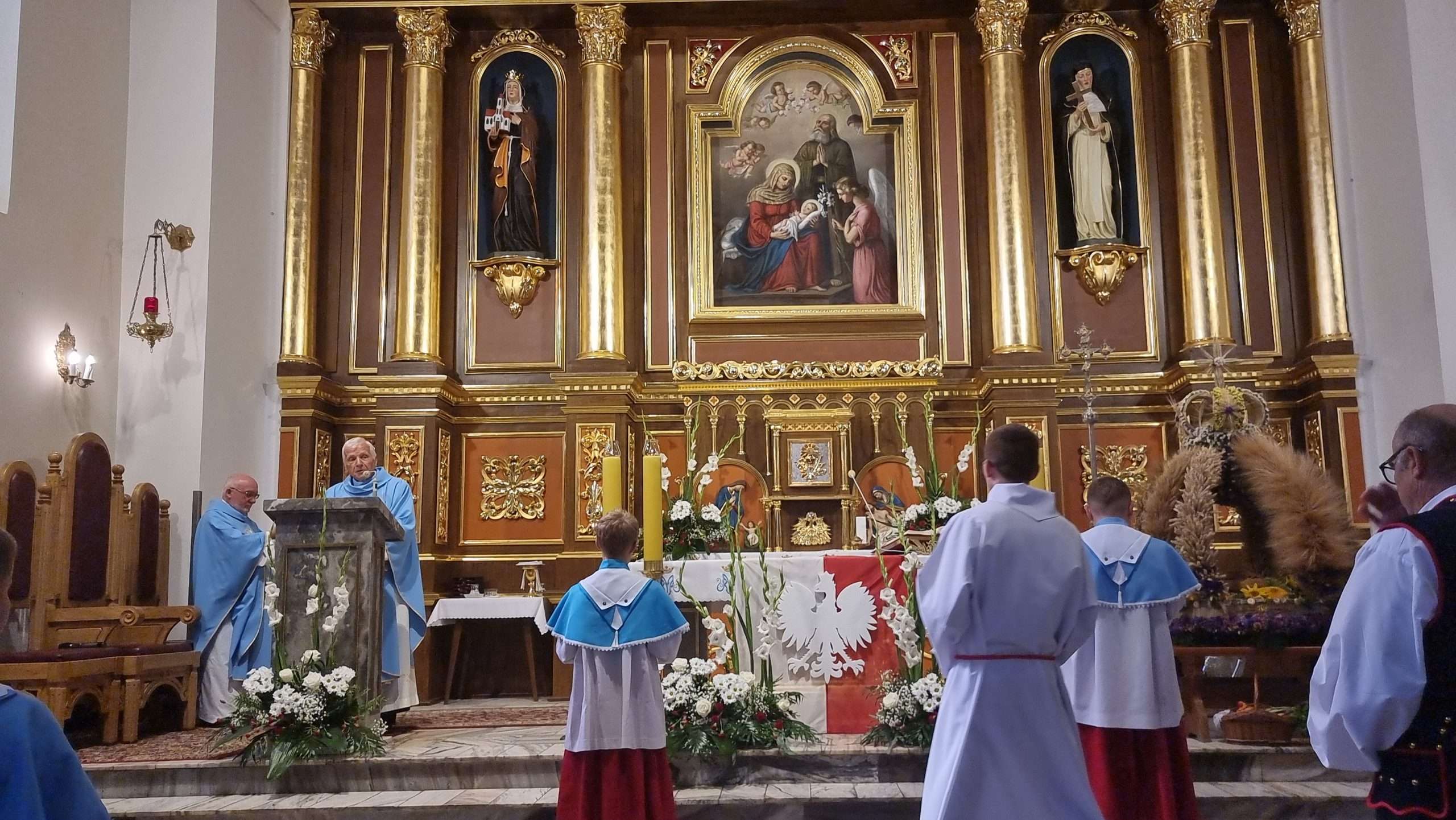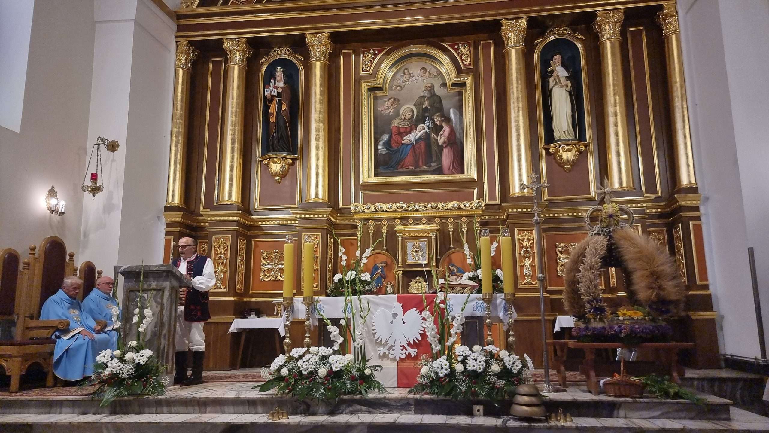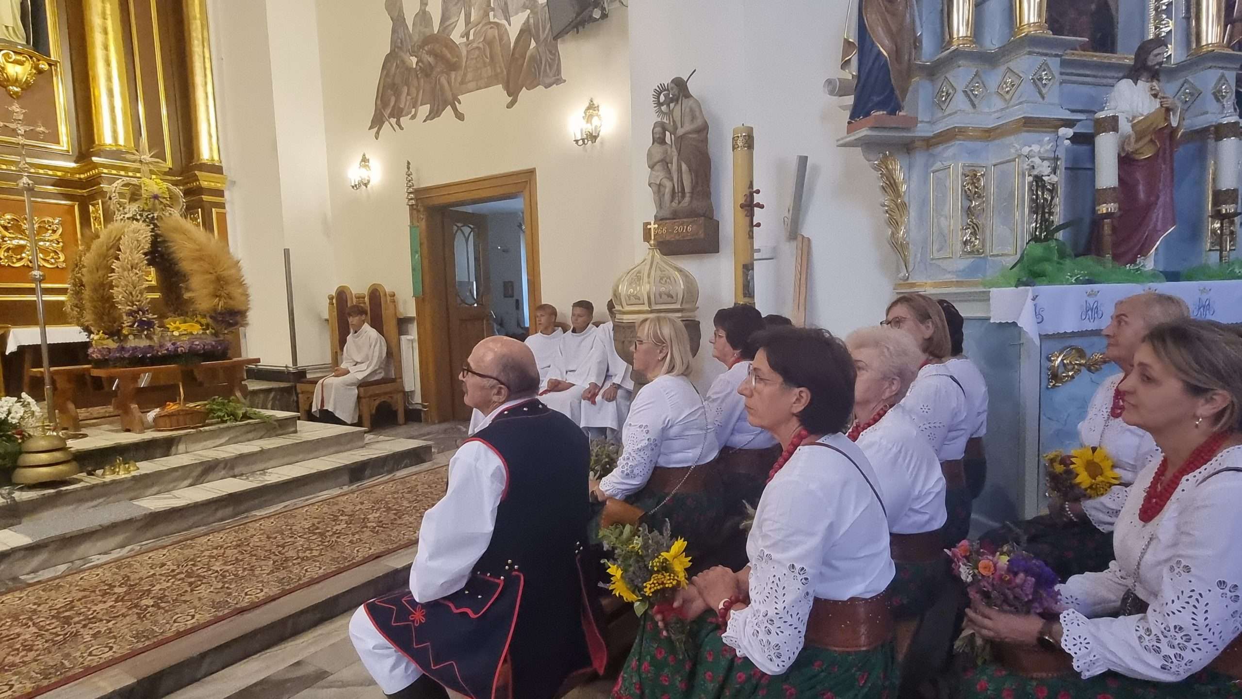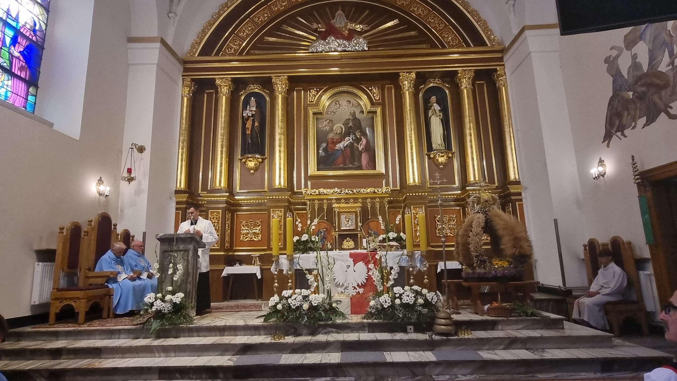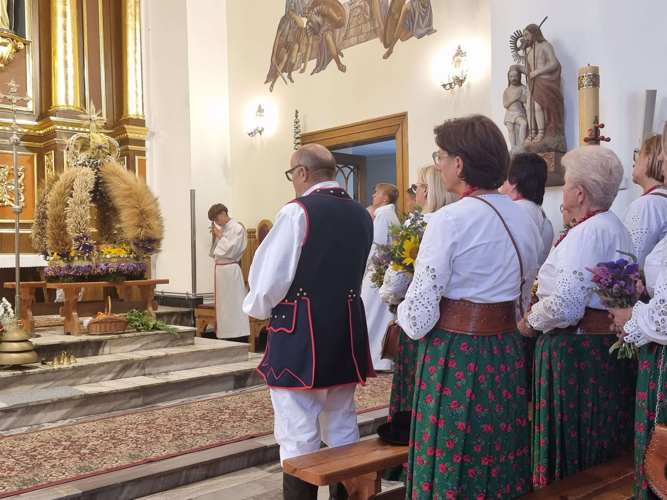 W tymbarskiej parafii Eucharystia o godz.10 rozpoczęła się wprowadzeniem do świątynie wieńca żniwnego oraz błogosławieństwem kwiatów i ziół.