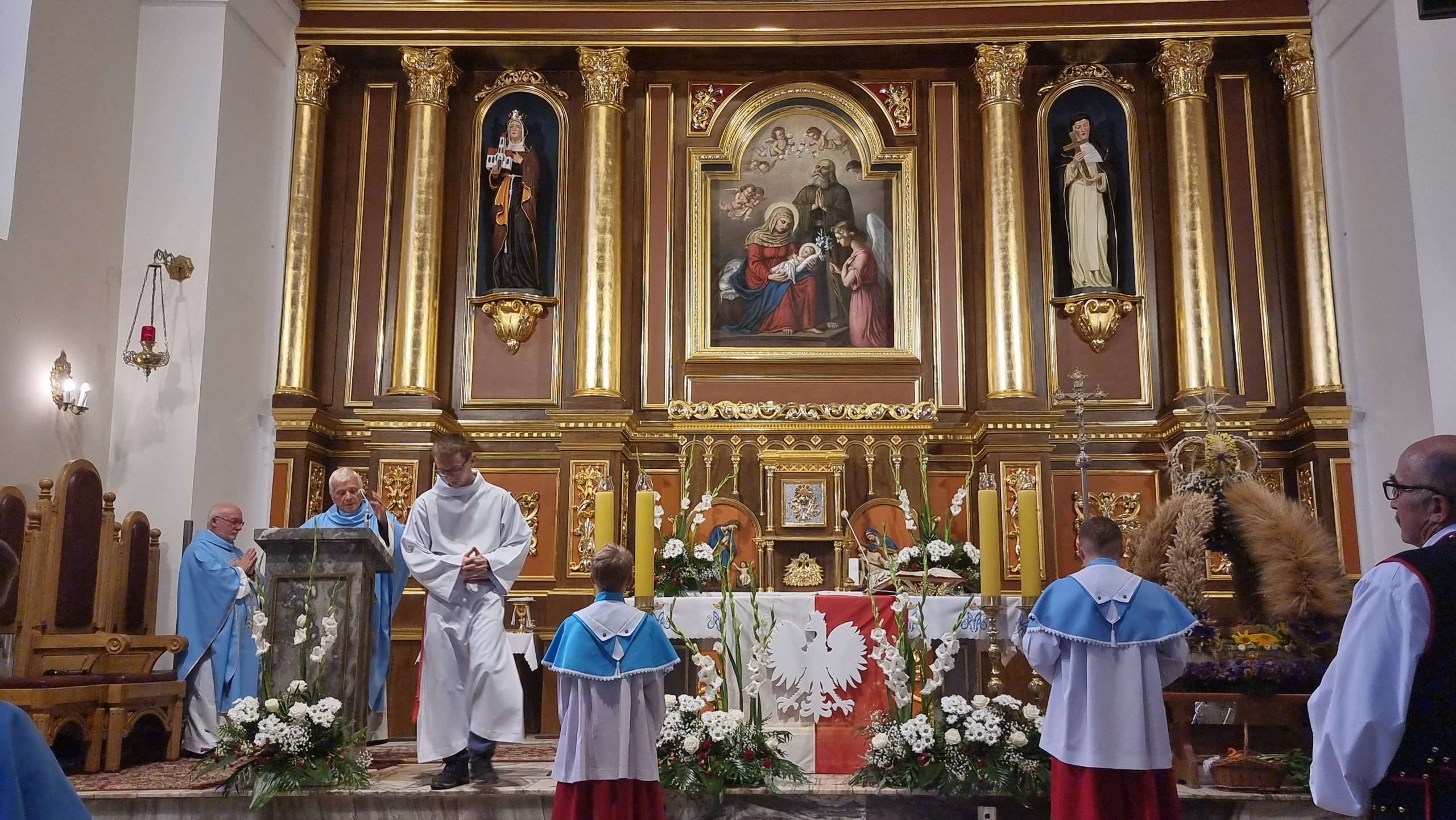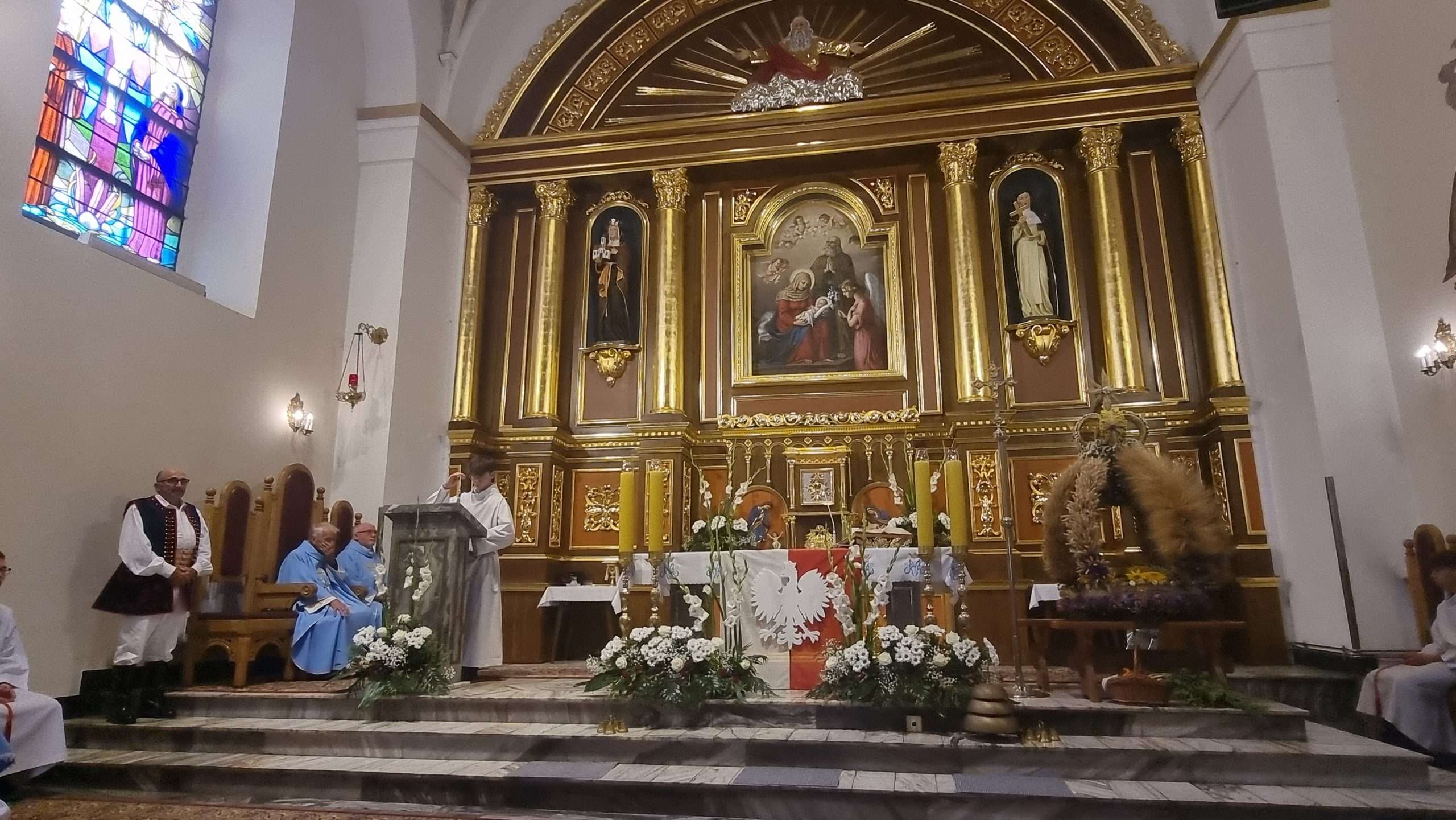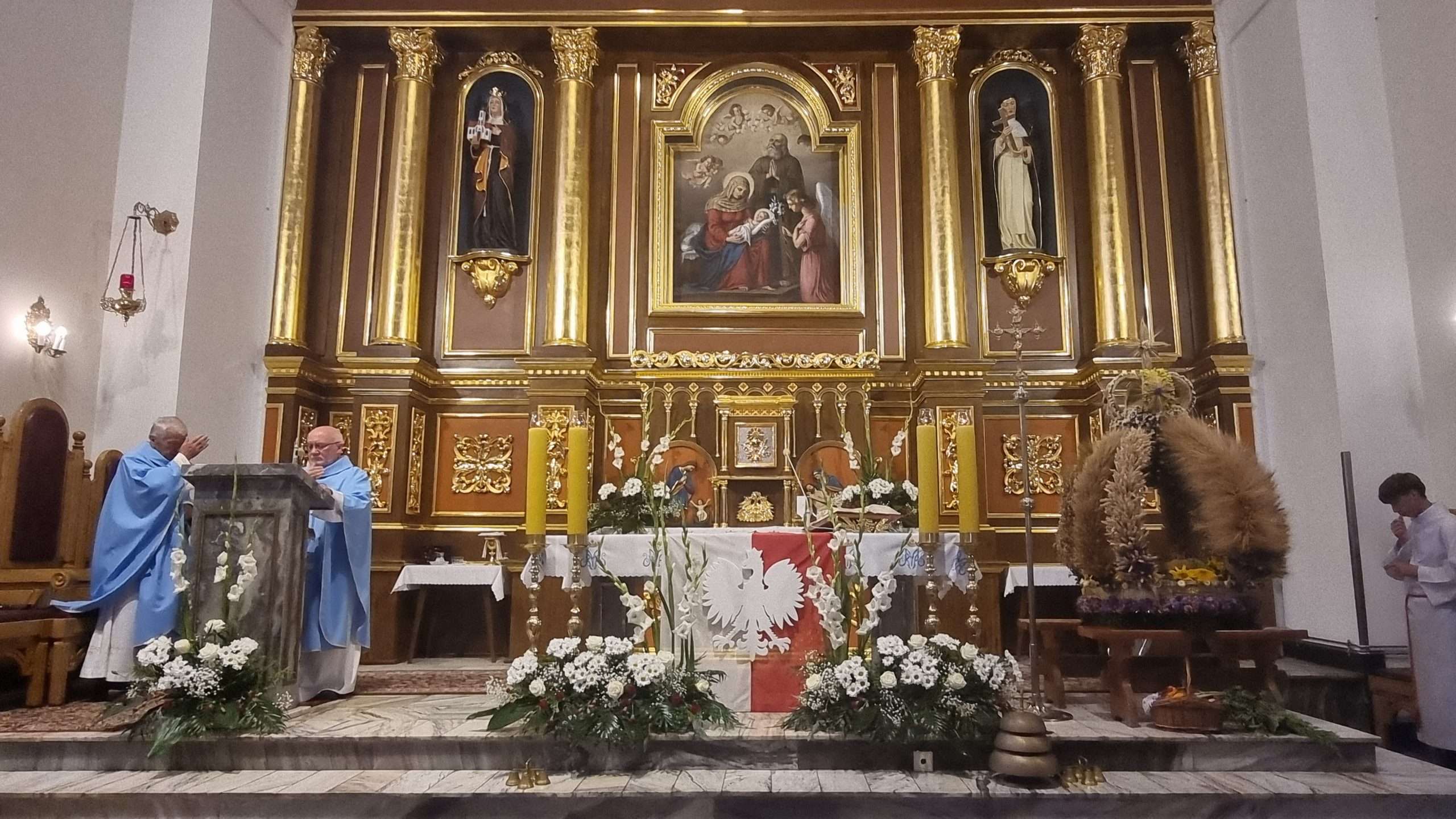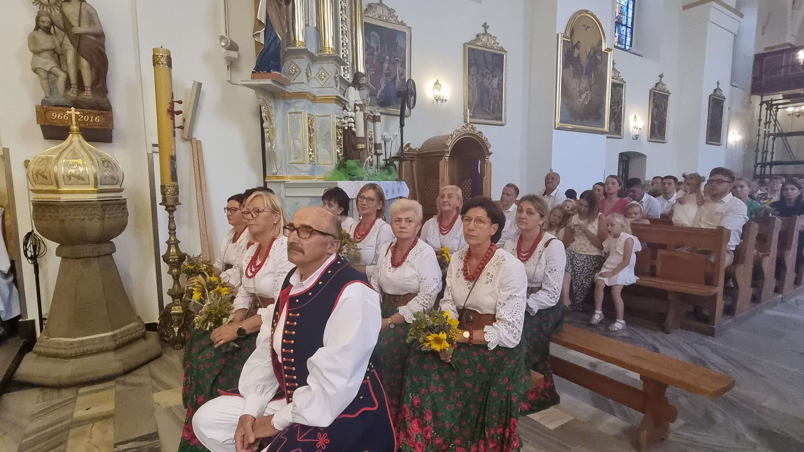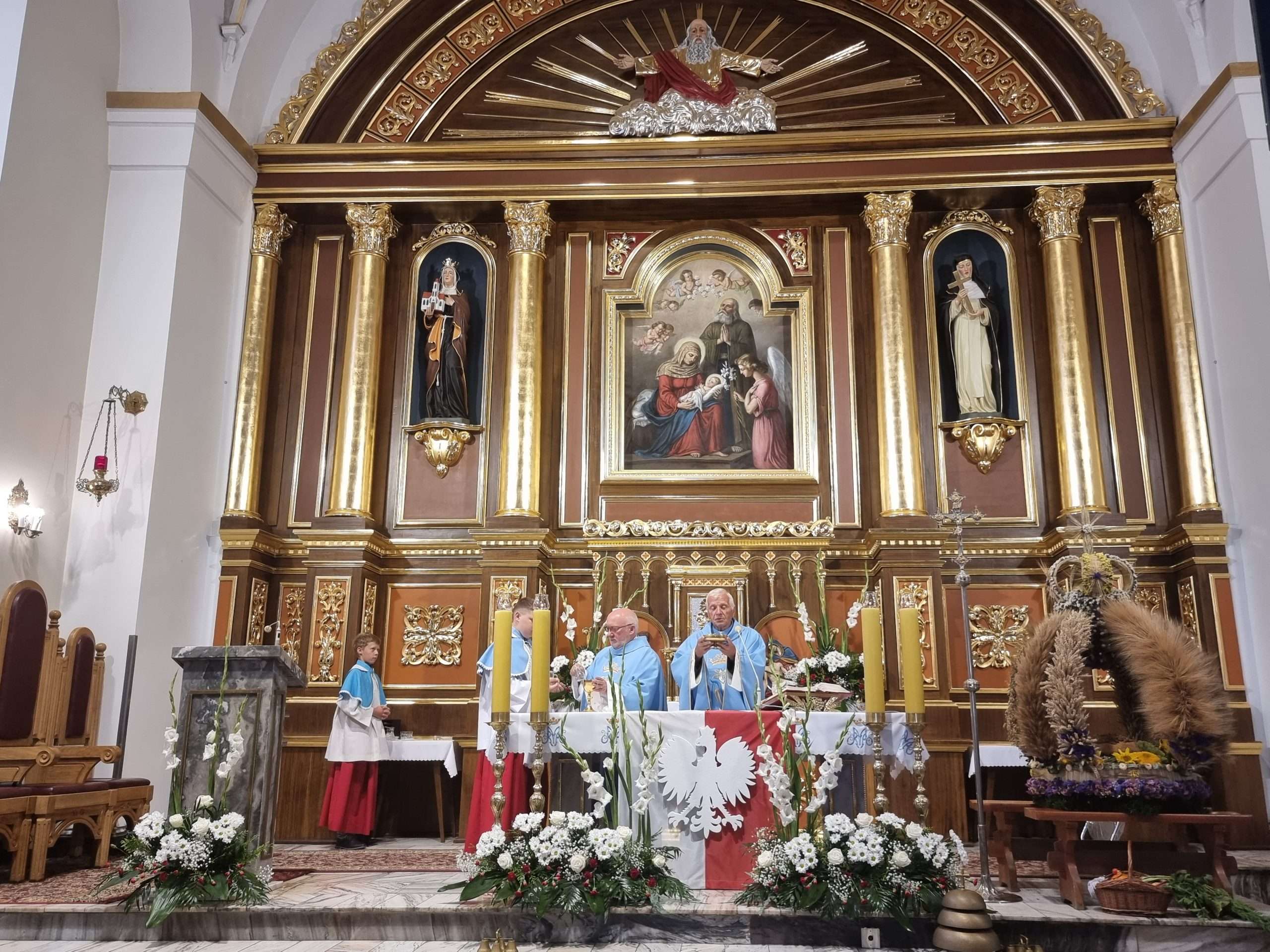 W tymbarskiej parafii Eucharystia o godz.10 rozpoczęła się wprowadzeniem do świątynie wieńca żniwnego oraz błogosławieństwem kwiatów i ziół.