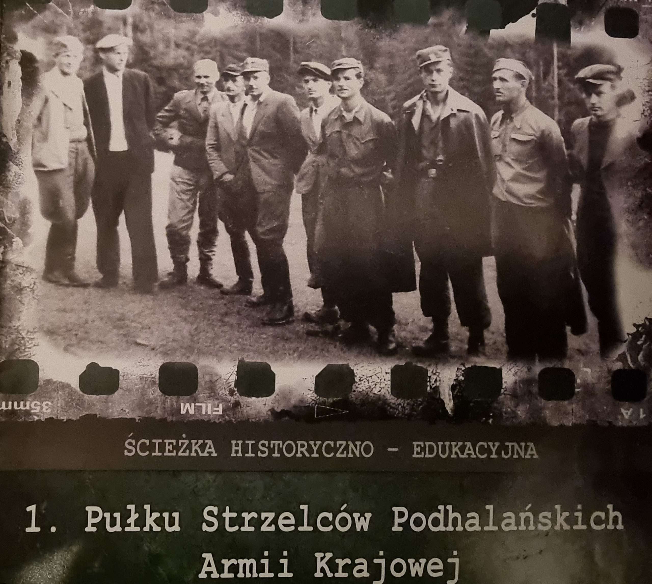 pierwsza strona broszury autorstwa Przemysława Bukowca na temat ścieżki edukacyjnej w rejonie Mogielicy, której celem jest pamięć o miejscach działalności konspiracyjnej, o żołnierzach oraz ofiarach poniesionych przez ludność cywilną z rąk okupantów niemieckich i sowieckich