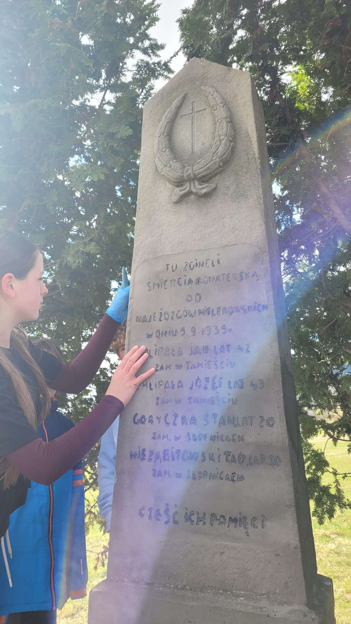 pomnik upamiętniający zamordowanych mieszkańców (podczas prac porządkowych prowadzonych przez młodzież z SP Tymbark)