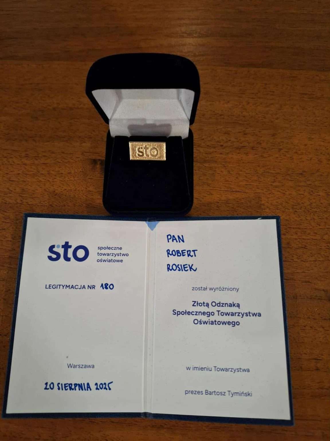 Pan Robert Rosiek – wicedyrektor Społecznej Publicznej Szkoły Muzycznej w Tymbarku, nauczyciel oraz aktywny członek Samodzielnego Koła Terenowego nr 99 STO w Tymbarku – decyzją Kapituły Złotej Odznaki STO został uhonorowany Złotą Odznaką Społecznego Towarzystwa Oświatowego.