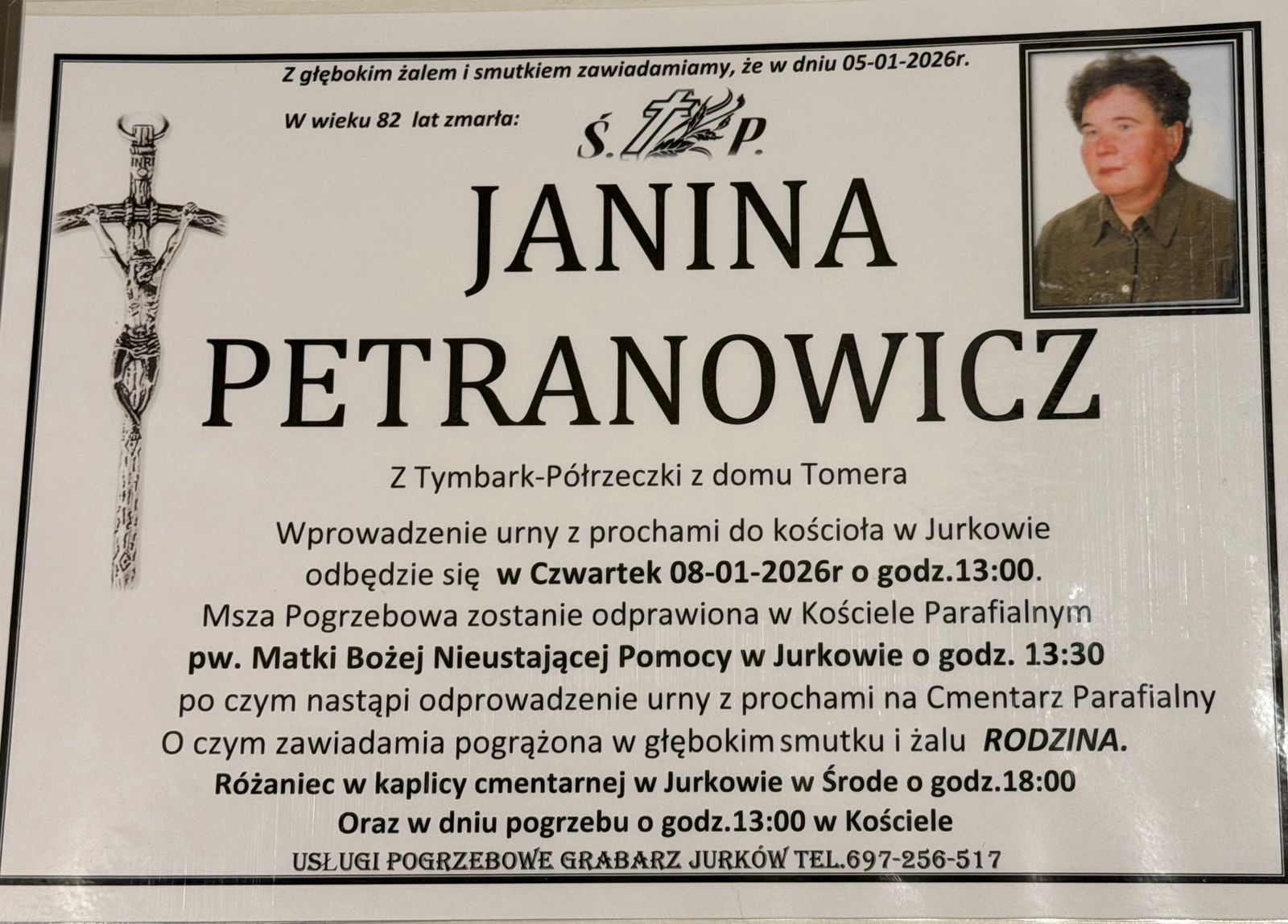Zmarła śp. Janina PETRANOWICZ z Tymbarku