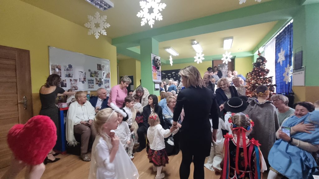 Czwartek był dniem, na który przedszkolaki „U Cioci Agatki” zaprosiły do przedszkola swoje Babcie i swoich Dziadków, aby uczcić ich święto, podziękować i złożyć życzenia. Dzieci przestawiły dynamiczne, muzyczne, jasełka, przygotowane przez Panie wychowawczynie Katarzynę Opiołę oraz Justynę Mrózek. Jasełka zakończyły się wspólnym śpiewem – dzieci i dziadków – pastorałki „Józefie stajenki nie szukaj”, której dziadkowie uczyli się śpiewać zanim rozpoczął się dziecięce występ. Potem był czas na dużo wzajemnej miłości, gorące dziecięce życzenia, wręczanie przygotowanych upominków oraz ciasta upieczone przez rodziców. I oczywiście wspólne fotografie. Nad całością czuwała Dyrektor Przedszkola Pani Agata Kęska.