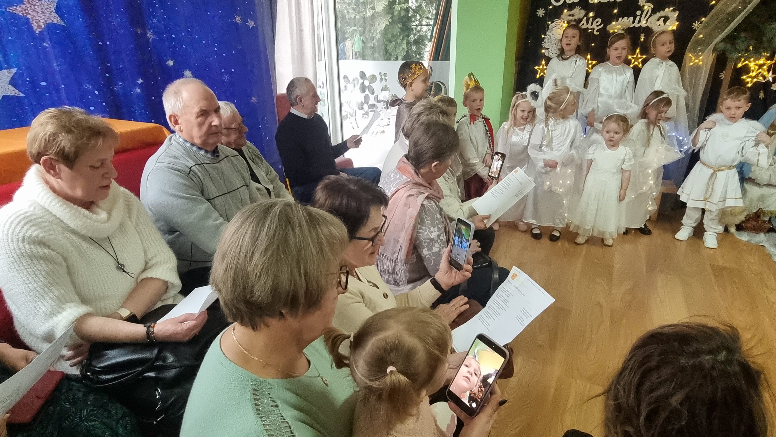 Czwartek był dniem, na który przedszkolaki „U Cioci Agatki” zaprosiły do przedszkola swoje Babcie i swoich Dziadków, aby uczcić ich święto, podziękować i złożyć życzenia. Dzieci przestawiły dynamiczne, muzyczne, jasełka, przygotowane przez Panie wychowawczynie Katarzynę Opiołę oraz Justynę Mrózek. Jasełka zakończyły się wspólnym śpiewem – dzieci i dziadków – pastorałki „Józefie stajenki nie szukaj”, której dziadkowie uczyli się śpiewać zanim rozpoczął się dziecięce występ. Potem był czas na dużo wzajemnej miłości, gorące dziecięce życzenia, wręczanie przygotowanych upominków oraz ciasta upieczone przez rodziców. I oczywiście wspólne fotografie. Nad całością czuwała Dyrektor Przedszkola Pani Agata Kęska.