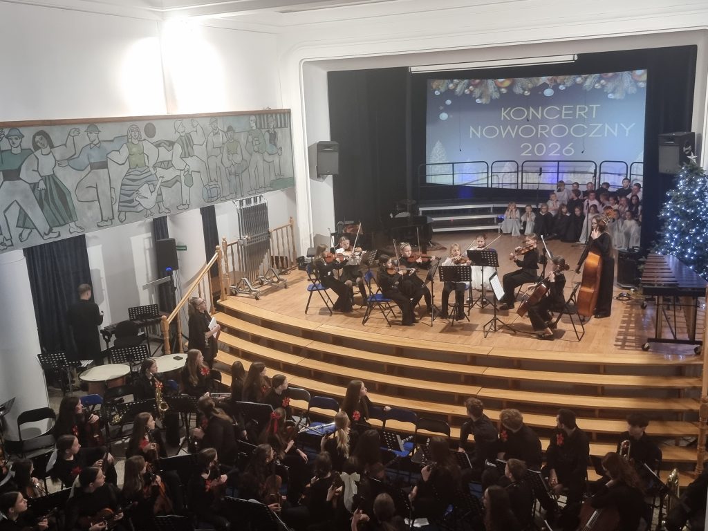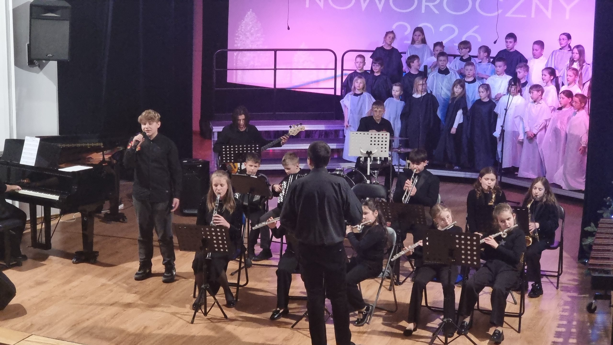 Społeczna Publiczna Szkoła Muzyczna w Tymbarku – Koncert Noworoczny 2026 – występ Orkiestry Szkolnej 24 stycznia 2026 by Irena Wilczek Sowa