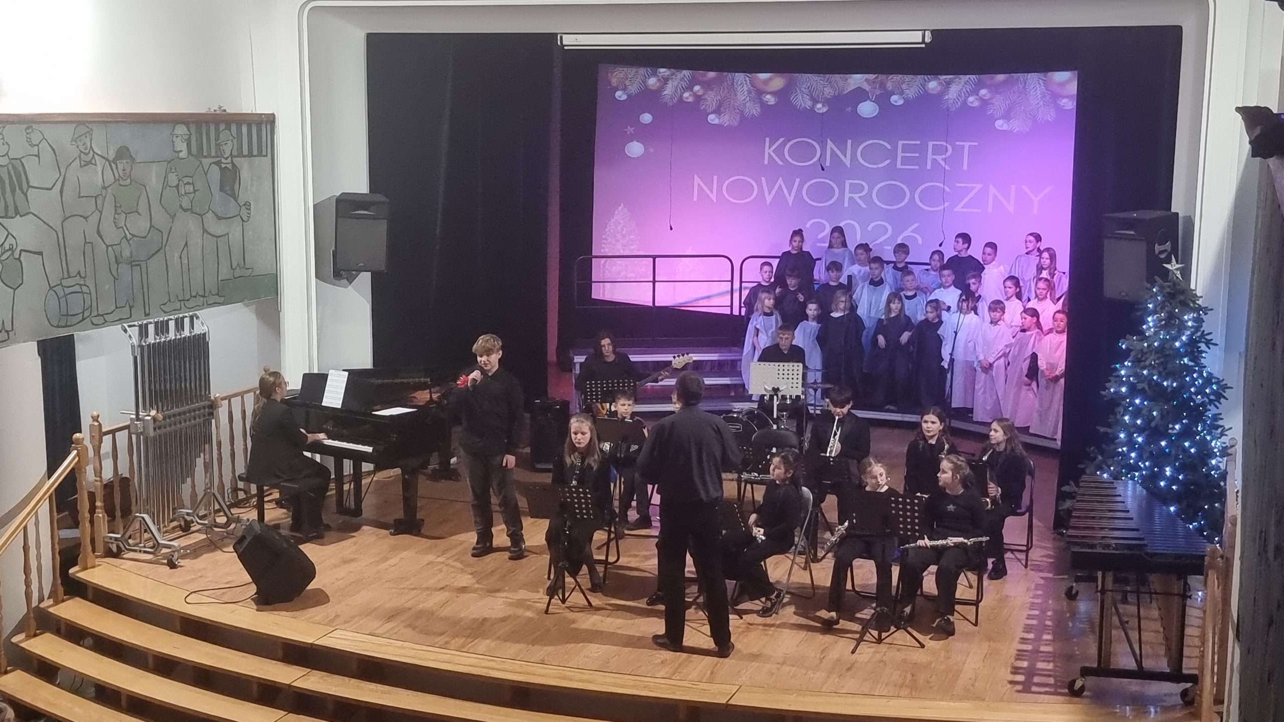 Społeczna Publiczna Szkoła Muzyczna w Tymbarku – Koncert Noworoczny 2026 – występy zespołów muzycznych 24 stycznia 2026 by Irena Wilczek Sowa