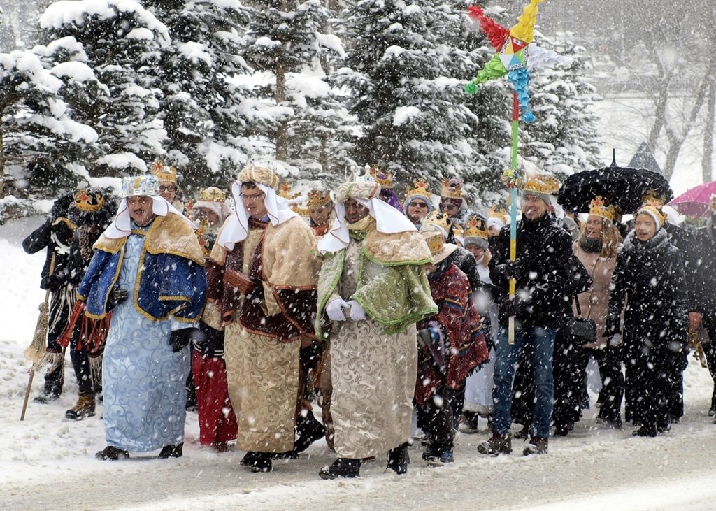 „Wielu przyjdzie ze Wschodu i Zachodu i zasiądą do stołu z Abrahamem, Izaakiem i Jakubem w królestwie niebieskim” – pisze Mateusz (Mt 8,11). Nie wiemy ile ich przybyło i skąd pochodzili, ale wiemy, że reprezentowali ludy pogańskie, przychodzące ze wszystkich stron świata, by oddać cześć Zbawicielowi. W innych podaniach byli oni królami i było ich trzech: Kacper, Melchior i Baltazar. Przynieśli do Betlejem dary: złoto, kadzidło, czyli mieszaninę aromatycznych żywic i korzeni, oraz mirrę, cenną wonną żywicę używaną do wytwarzania kadzidła. Na pamiątkę tego wydarzenia w kościołach święci się kadzidło i kredę do oznaczenia drzwi domów symbolem K†M†B (C†M†B). Są to inicjały łacińskiego życzenia: Chrystus dom błogosławi (Christus Mansionem Benedicat) – w czym doszukuje się też genezy imion trzech króli.