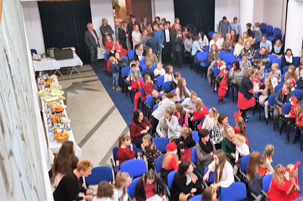 W środę cała społeczność Społecznej Publicznej Szkoły Muzycznej w Tymbarku, dzieci, rodzice, nauczyciele, członkowie stowarzyszenia, spotkała się w auli Szkoły. Świąteczne spotkanie rozpoczął występ szkolnej Małej Orkiestry, która przedstawiła finlandzką opowieść o św.Mikołaju. Następnie Dyrektor Szkoły-honorowy profesor oświaty Pani Halina Waszkiewicz-Rosiek  opowiedziała o wigilijnych zwyczajach oraz złożyła wszystkim świąteczne życzenia, a indywidualnie połamała się opłatkiem z obecnymi. Podobnie uczynili uczniowie, nauczyciele, goście.   Na wszystkich czekał przygotowany przez rodziców wigilijny poczęstunek. Nie zabrało aromatycznego czerwonego barszczu, pysznych pierogów, kapusty z grochem, krokietów. Na deser ciasta i owoce. Wspólnie spędzony czas wypełniony był życzeniami, opowieściami, rozmowami.