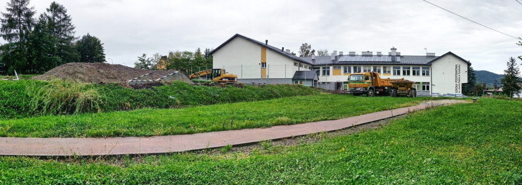 Każdy kto obserwuje prace przy budowie nowych boisk i dojazdu do SP w Tymbarku zadaje sobie pytanie czy zdążą? Myśląc oczywiście o końcu wakacji. Chociaż wykonawca (jedyny jaki wziął udział w przetargu) nie zobowiązywał się, że tak będzie to i tak każdy rodzic  chciałby, aby dojazd do Szkoły był skończony na rozpoczęciem roku szkolnego. Ale pozostał tylko tydzień!