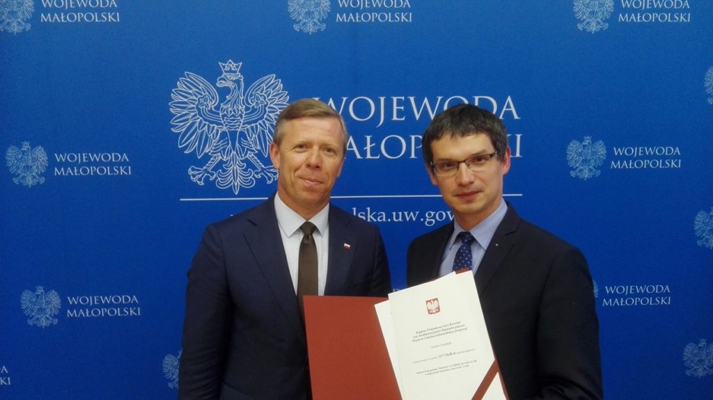 Dzisiaj  wojewoda małopolski Piotr Ćwik wręczył przedstawicielom jednostek samorządu terytorialnego promesy na drogi lokalne. Promesę otrzymała również Gmina Tymbark, na ręce wójta Pawła Ptaszka, na remont  drogi „Sołtystwo” łączącej Tymbark z drogą krajową w Zamieściu.