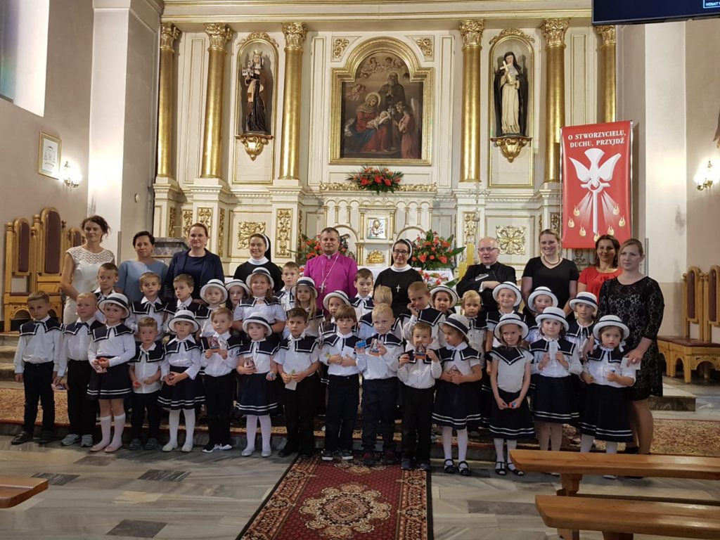 Msza Św. o godz. 1000 była ze szczególnym udziałem rodzin. Podczas Mszy św. śpiewał i grał zespół „Gloria Mariae”. Po zakończonej Eucharystii Ks.Biskup rozmawiał z dziećmi i rodzicami „Gloria Mariae” oraz dziećmi pierwszokomunijnymi.