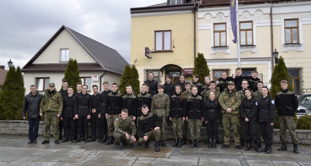 Od 17 stycznia 2018 roku do 13 marca bm. raz w tygodniu funkcjonariusze Wydziału Odwodowego (Reprezentacyjnego) Karpackiego Oddziału Straży Granicznej w Nowym Sączu prowadzili szkolenia z zakresu musztry dla Strzelców będących uczniami klas mundurowych Zespołu Szkół im. Komisji Edukacji Narodowej w Tymbarku.