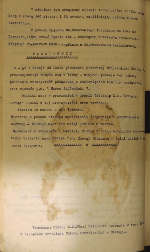 Spieszę z wyjaśnieniem skąd wzięła się liczba 190; po prostu jest to suma naszych lokalnych rocznic czyli: 140 /OSP/ plus 25 /orkiestra/ plus 25 /Strzelec/. A skąd pozyskać tylu tancerzy? Spośród nas, mieszkańców; fantastycznie rozśpiewanych i roztańczonych dzieci, całkiem sporej grupy naszych maturzystów, którzy już mają za sobą swojego studniówkowego poloneza, gimnazjalistów, którzy poloneza będą tańczyć na czerwcowym komersie i oczywiście osób dorosłych. Utworem przy którym pary ruszą w tan powinien być piękny polonez skomponowany przez Wojciecha Kilara do filmu „Pan Tadeusz” w reżyserii Andrzeja Wajdy. Utwór ten opracuje i wykona nasza orkiestra -jubilatka. W czasie wydarzenia należy zadbać o solidną dokumentację zdjęciowo-filmową, z ujęciami z drona włącznie, a także postarać się o specjalną księgę pamiątkową celem wpisania wszystkich uczestników; tancerzy i widzów. Każdy z uczestników powinien otrzymać drobny pamiątkowy gadżet, np. okolicznościowy znaczek czy brelok. Wydarzenie powinno się zakończyć wspólnym zdjęciem i biesiadą, np. z bigosem w roli głównej. Nie byle jakim lecz staropolskim, przygotowanym według reguł opisanych przez Wieszcza Adama w IV Księdze „Pana Tadeusza”.