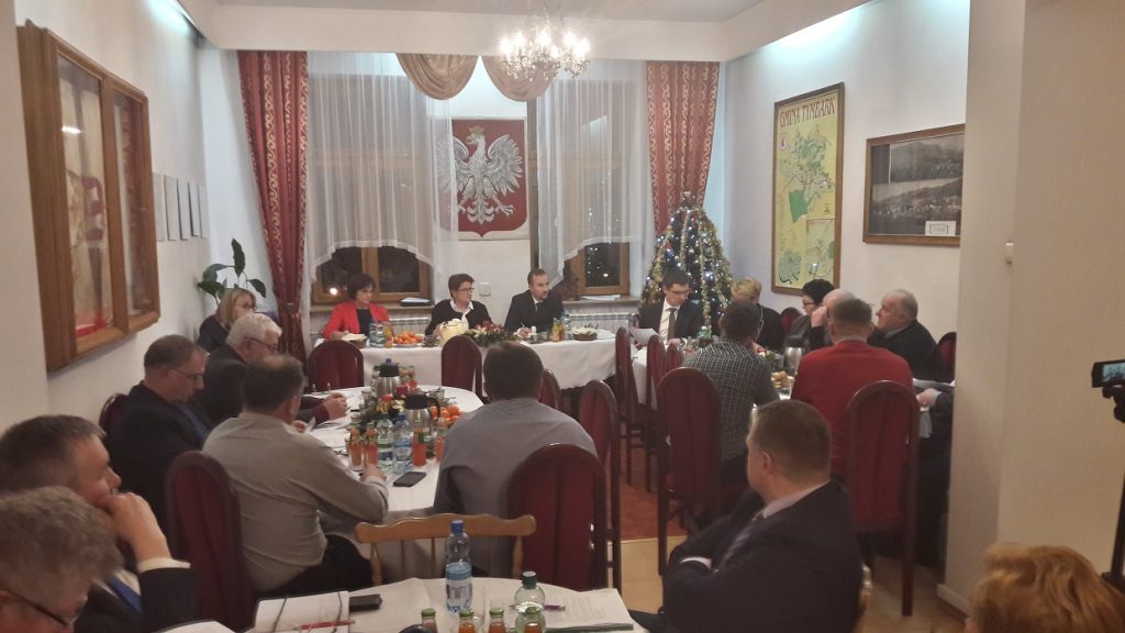 W Urzędzie Gminy w Tymbarku 28.12. miała miejsce XXXIV Sesja Rady Gminy Tymbark, tym razem była to tzw. sesja budżetowa, gdyż najważniejszym tematem sesji było przyjęcie budżetu Gminy Tymbark na 2018 rok. Przybyło 13 radnych. Oprócz stałych punktów porządek obrad przedstawiał się następująco: