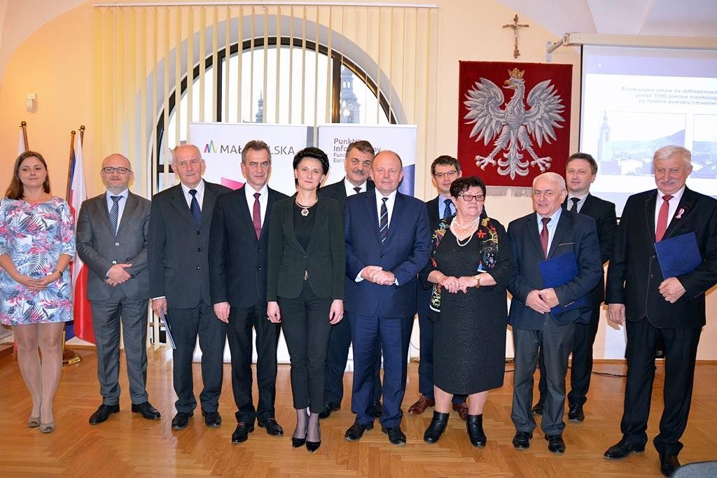 W miniony piątek w Starostwie Powiatowym w Limanowej odbyło się przekazanie umów na dofinansowanie wymiany nieekologicznych pieców dla kilku gmin z terenu powiatu limanowskiego, w tym dla gminy Tymbark. Umowy (na łączną wartość 16 mln zł) wręczyli przedstawiciel Zarządu Województwa Małopolskiego – Stanisław Sorys oraz Przewodnicząca Sejmiku Województwa Małopolskiego Urszula Nowogórska.