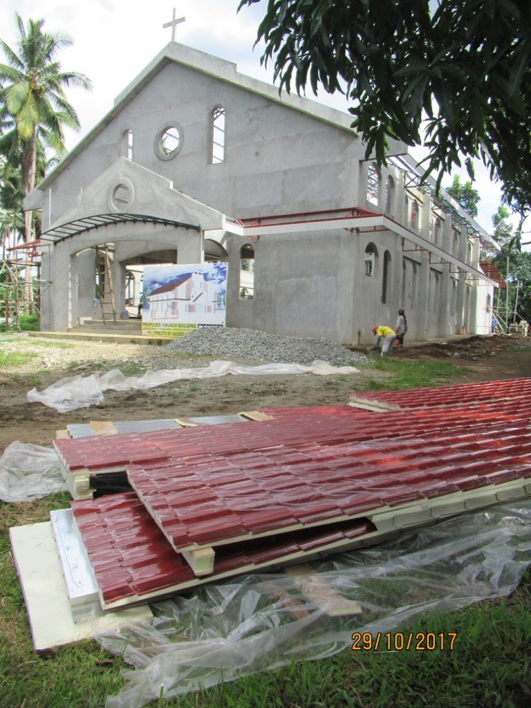 „Mimo, że nadchodzi zima , na Filipinach zaczyna robić się coraz cieplej, i za parę tygodni będzie pora sucha. Udało nam się, z pomocą wielu ludzi dobrego serca, zakupić blachę na pokrycie kościoła parafialnego. Liczymy, że po Uroczystościach Wszystkich Świętych, ok. 6 listopada, zaczniemy przykrywać kościół. Mamy bardzo wielką nadzieje, iż może się uda wejść do niego na Boże Narodzenie?
