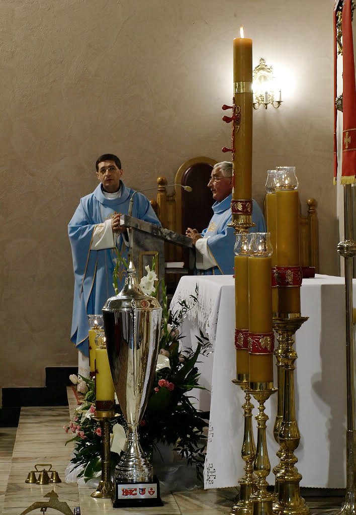 Zwycięzcy tymbarscy ministranci przywieźli z Częstochowej (gdzie odbywał się 1-2 maja finał turnieju)  zdobyty, imponujący!, puchar, jaki dzisiaj został postawiony na stopniach ołtarza.