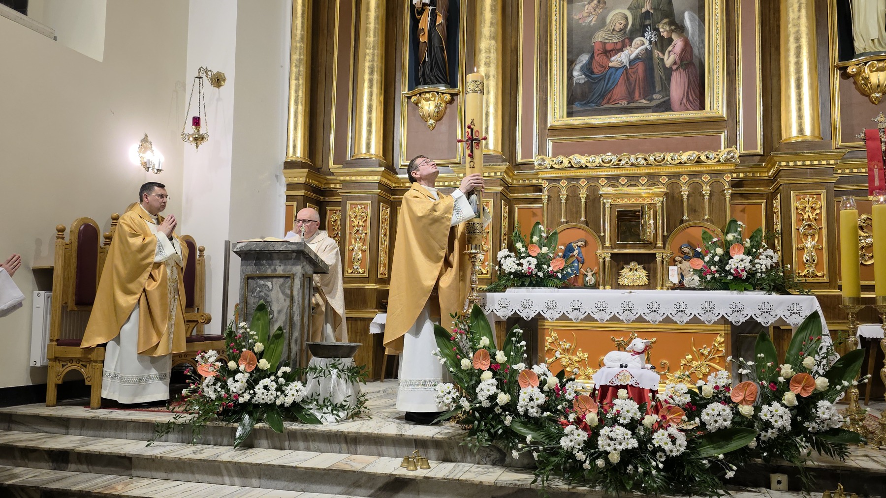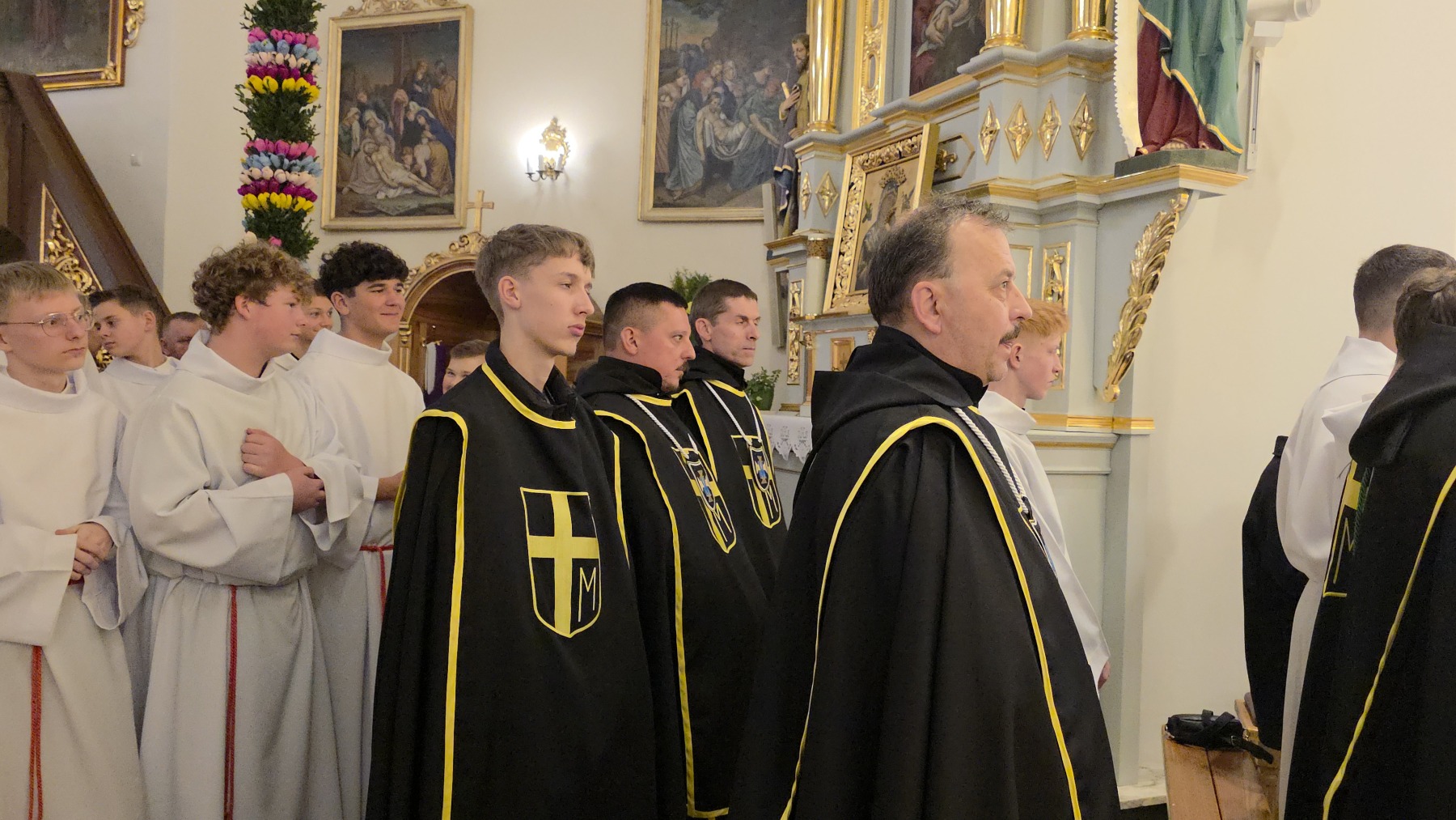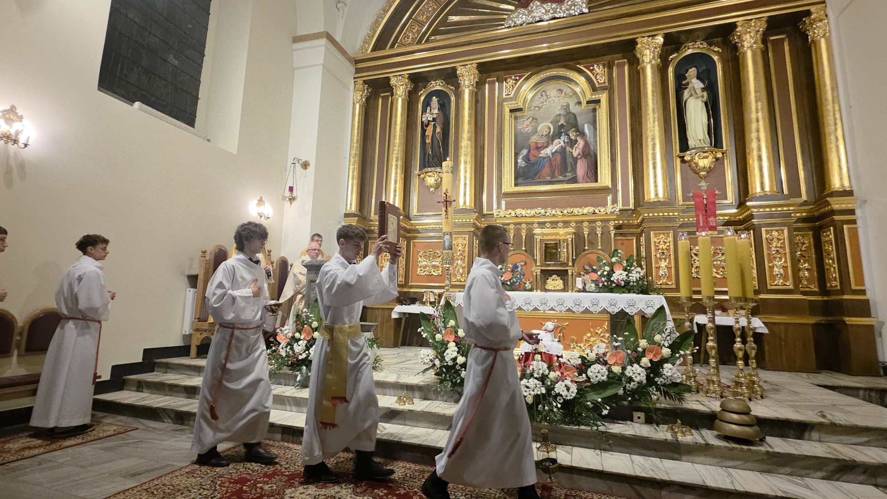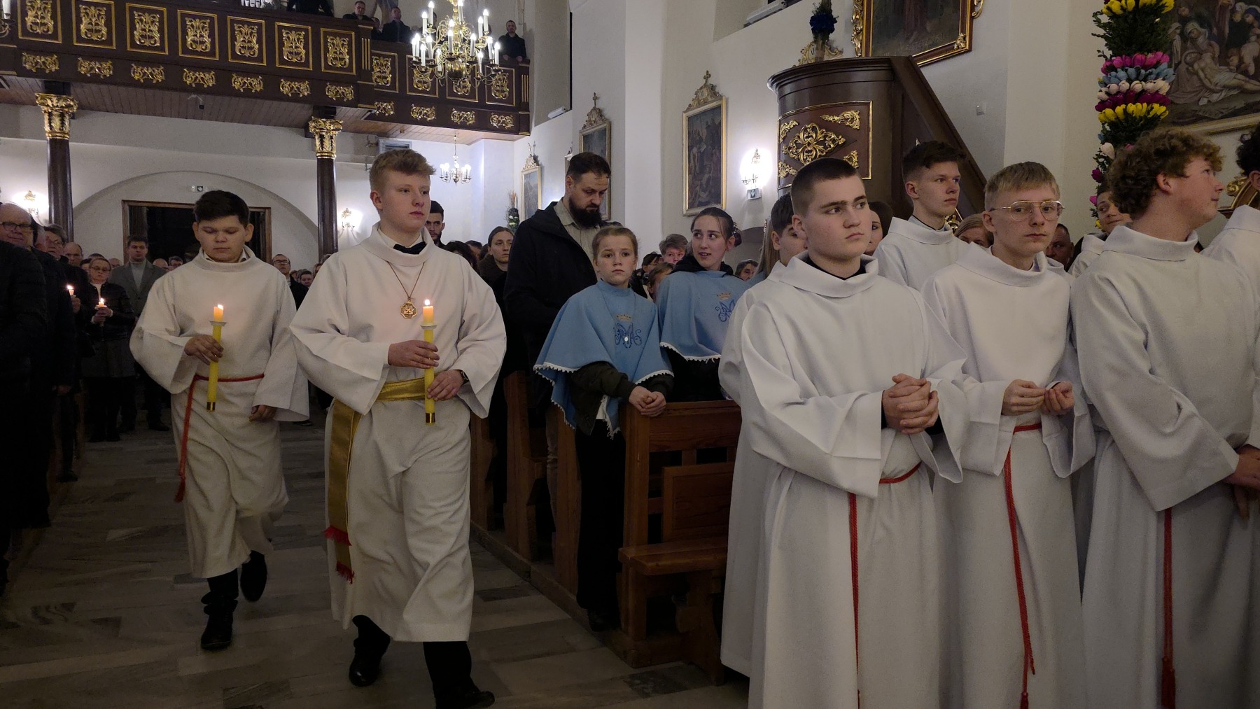 Obrzęd błogosławieństwa pokarmów na stół wielkanocny oraz życzenia od kapłanów (Parafia Tymbark)