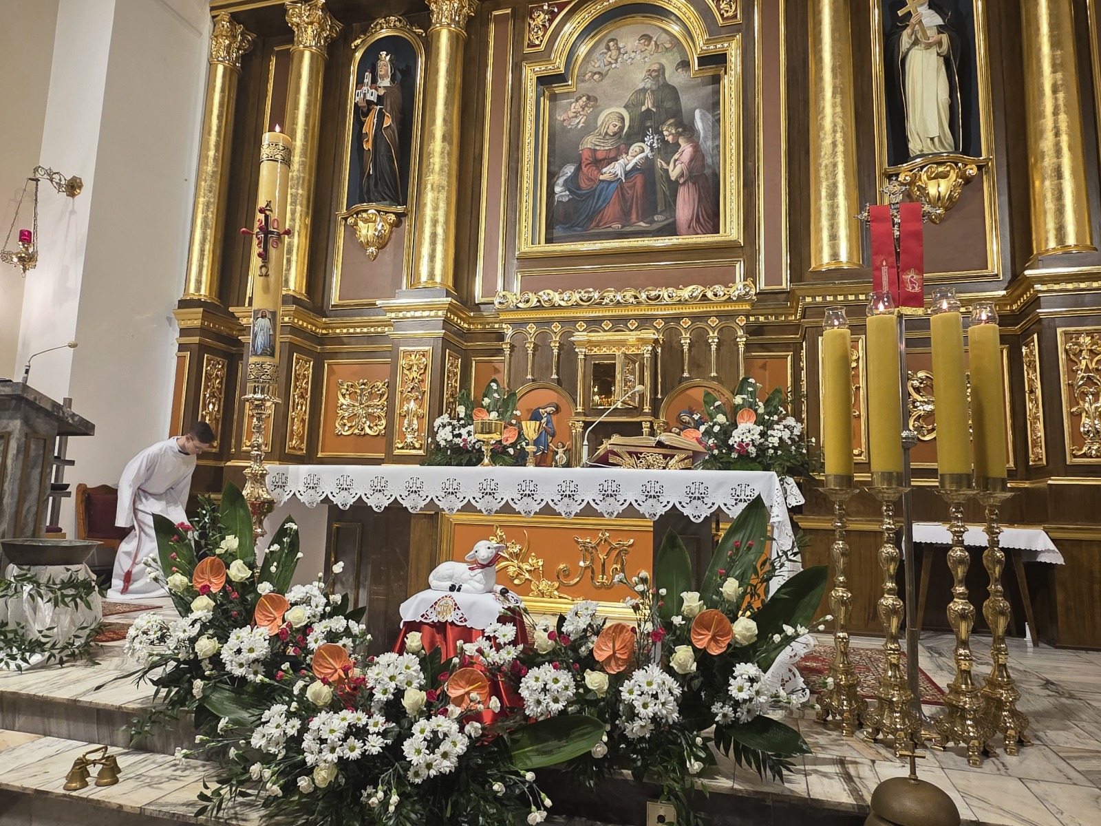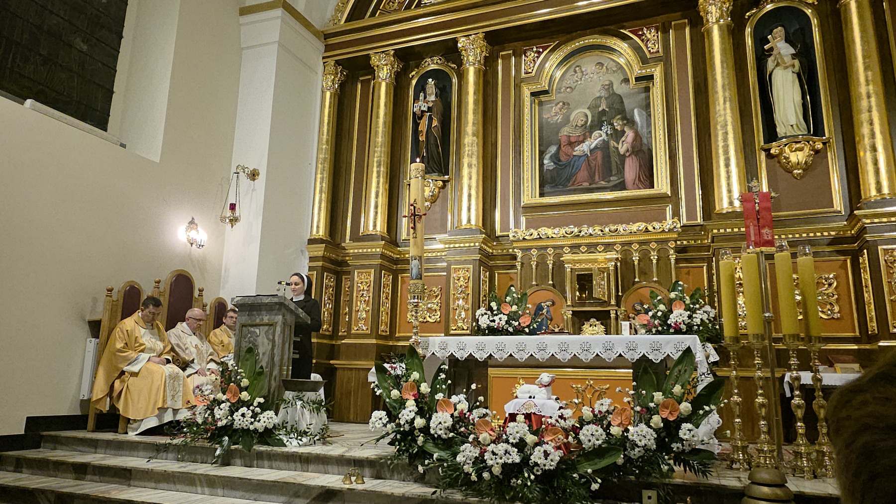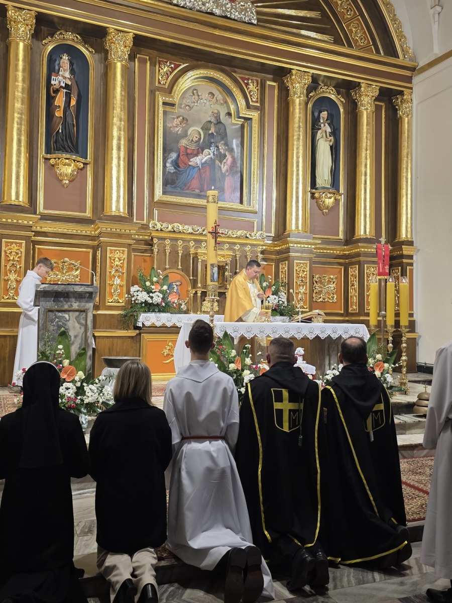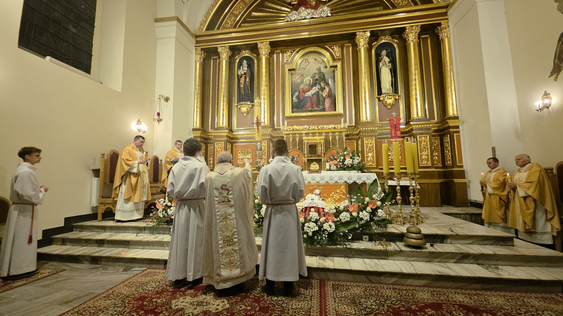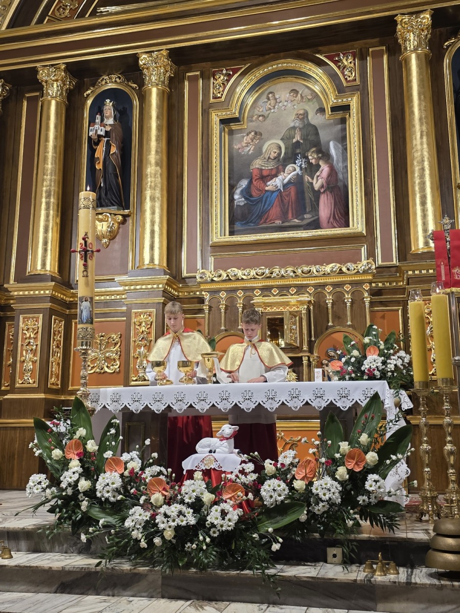 Obrzęd błogosławieństwa pokarmów na stół wielkanocny oraz życzenia od kapłanów (Parafia Tymbark)