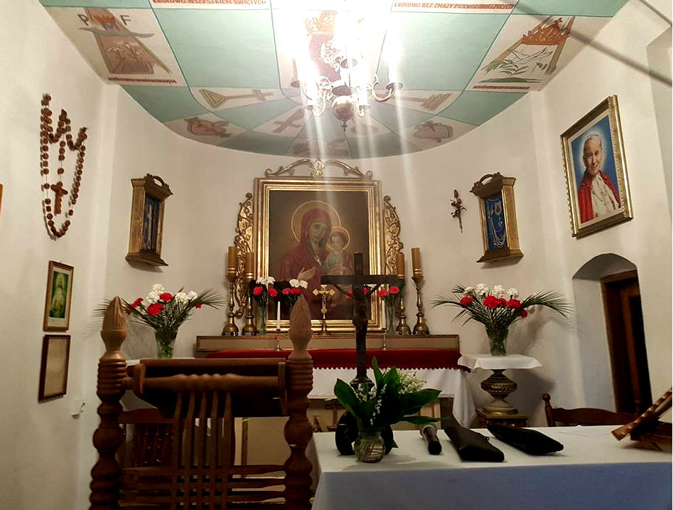 Moskalowie co jakiś czas malują ściany kaplicy. Przed laty na klepisku położyli podłogę. Potem dach trzeba było zrobić. Prąd też doprowadzili od swojego domu, blisko, ledwie kilkanaście metrów. Ludzie pomogli, czasem ktoś dał parę groszy, ale to na msze zanosiliśmy do kościoła parafialnego – uśmiecha się pani Janina.
