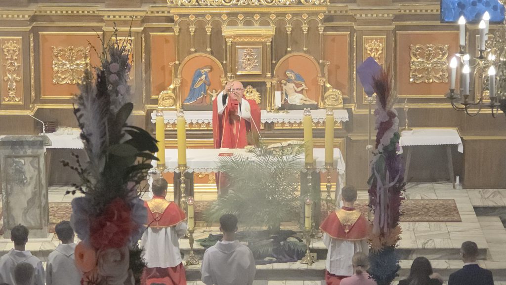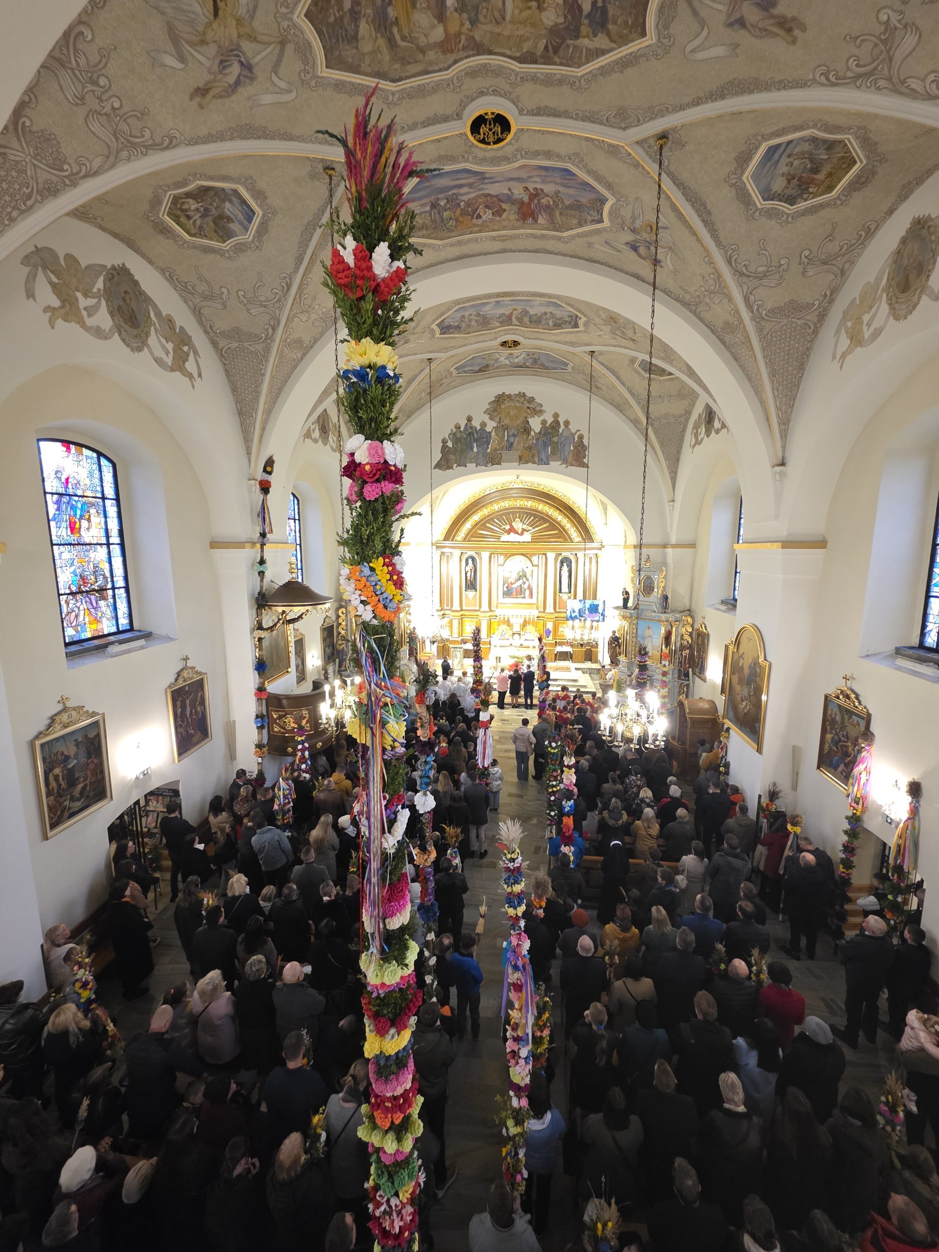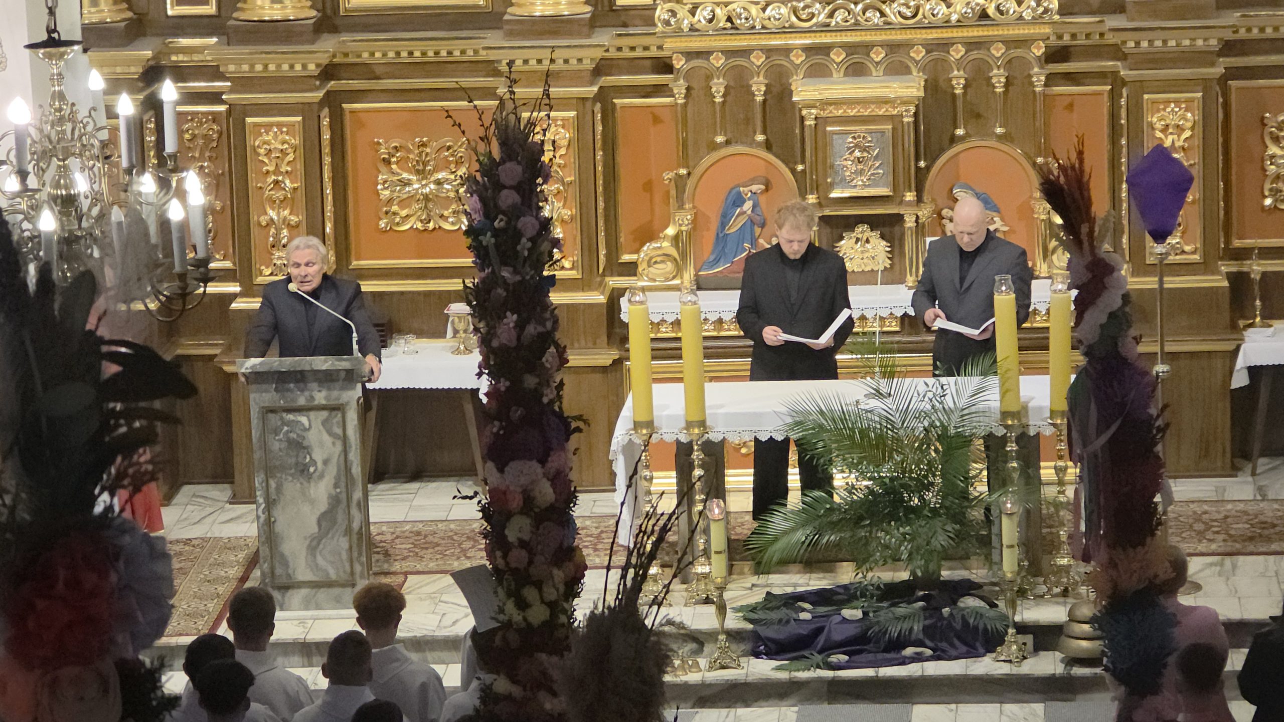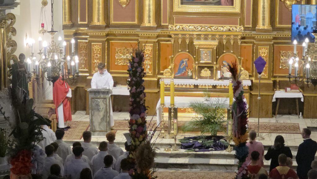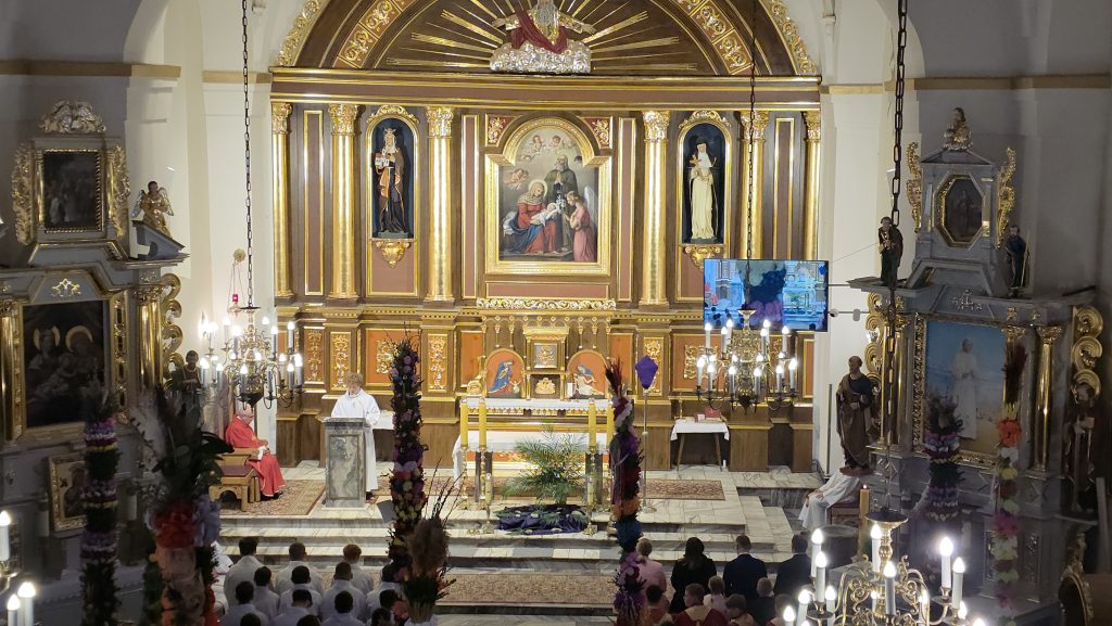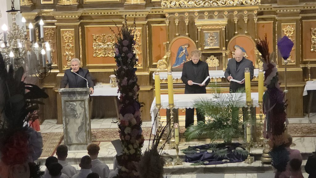 Grupa Teatralna Parafii Skrzydlna wzorem lat ubiegłych przedstawiła dzisiaj, w Niedzielę Palmową, Misterium Męki Pańskiej. W związku z niepewną pogodą, zdecydowano się w ostatniej chwili o zmianę z formy plenerowej na formę łączoną. Spektakl pokazano w kościele, z wyjątkiem Drogi Krzyżowej. która była już na zewnątrz.