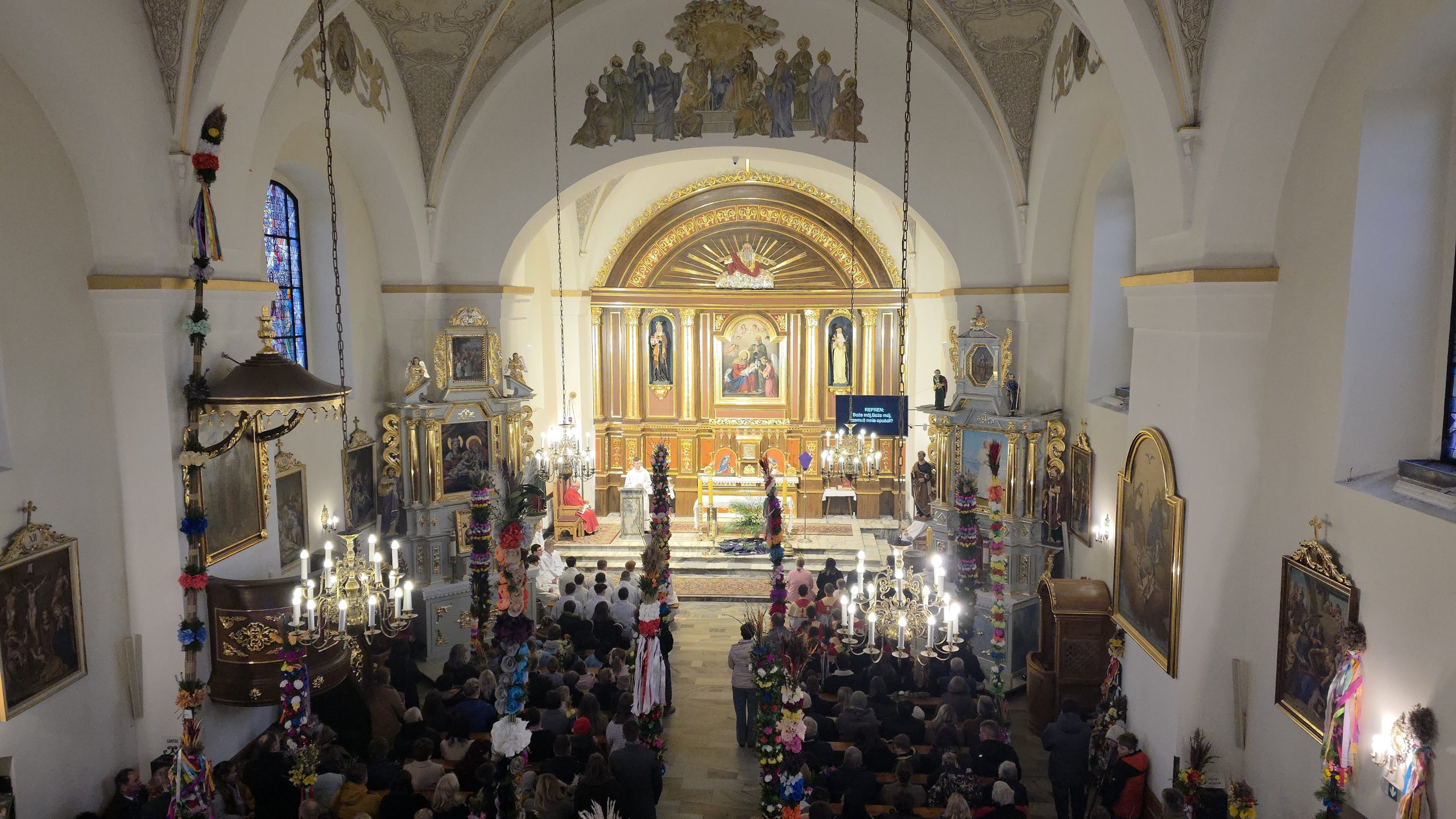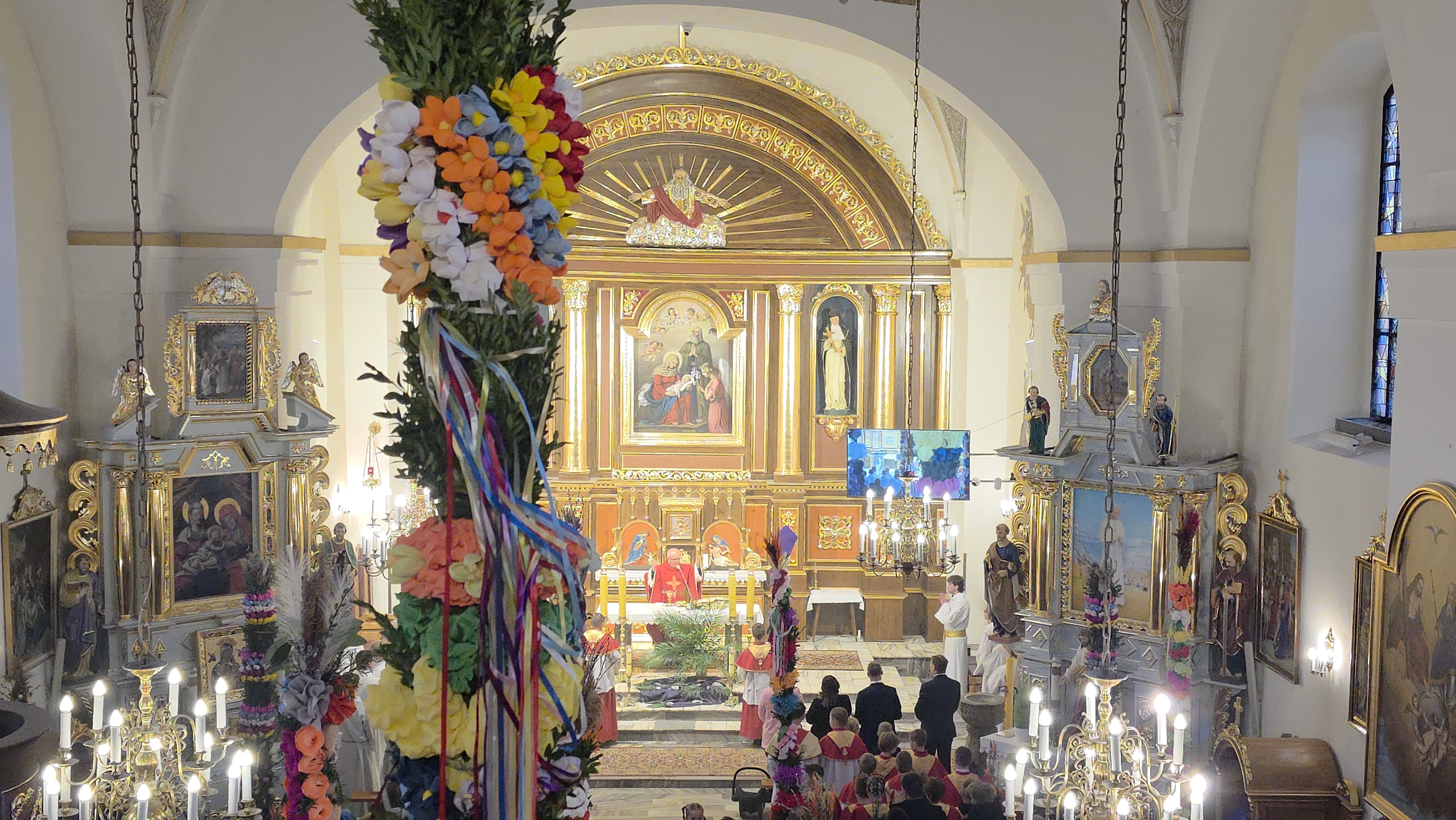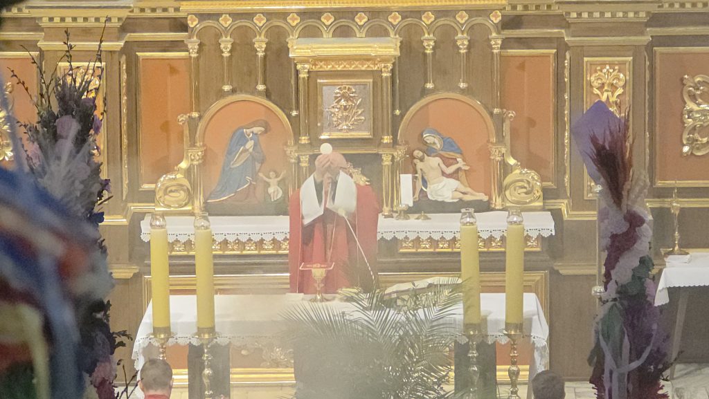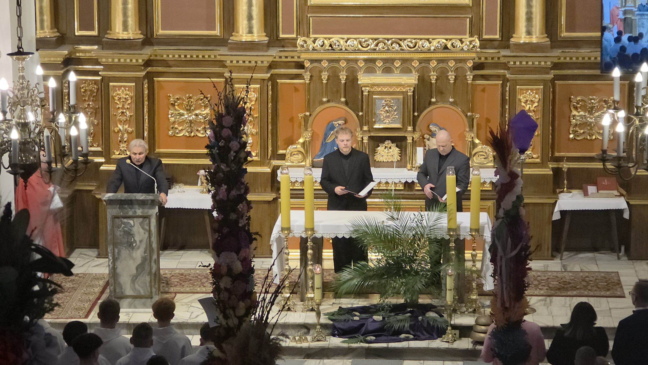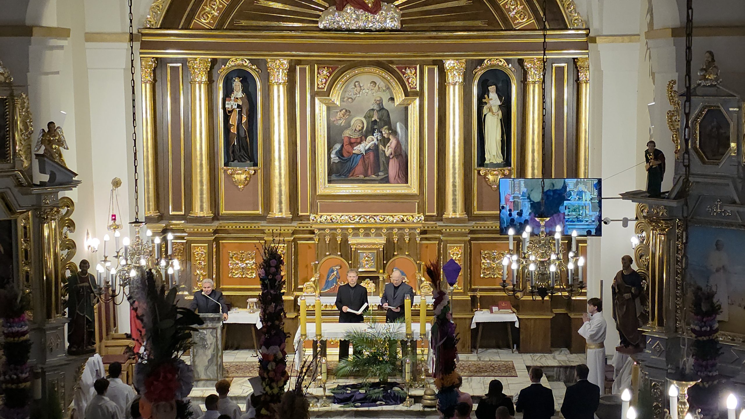 Grupa Teatralna Parafii Skrzydlna wzorem lat ubiegłych przedstawiła dzisiaj, w Niedzielę Palmową, Misterium Męki Pańskiej. W związku z niepewną pogodą, zdecydowano się w ostatniej chwili o zmianę z formy plenerowej na formę łączoną. Spektakl pokazano w kościele, z wyjątkiem Drogi Krzyżowej. która była już na zewnątrz.
