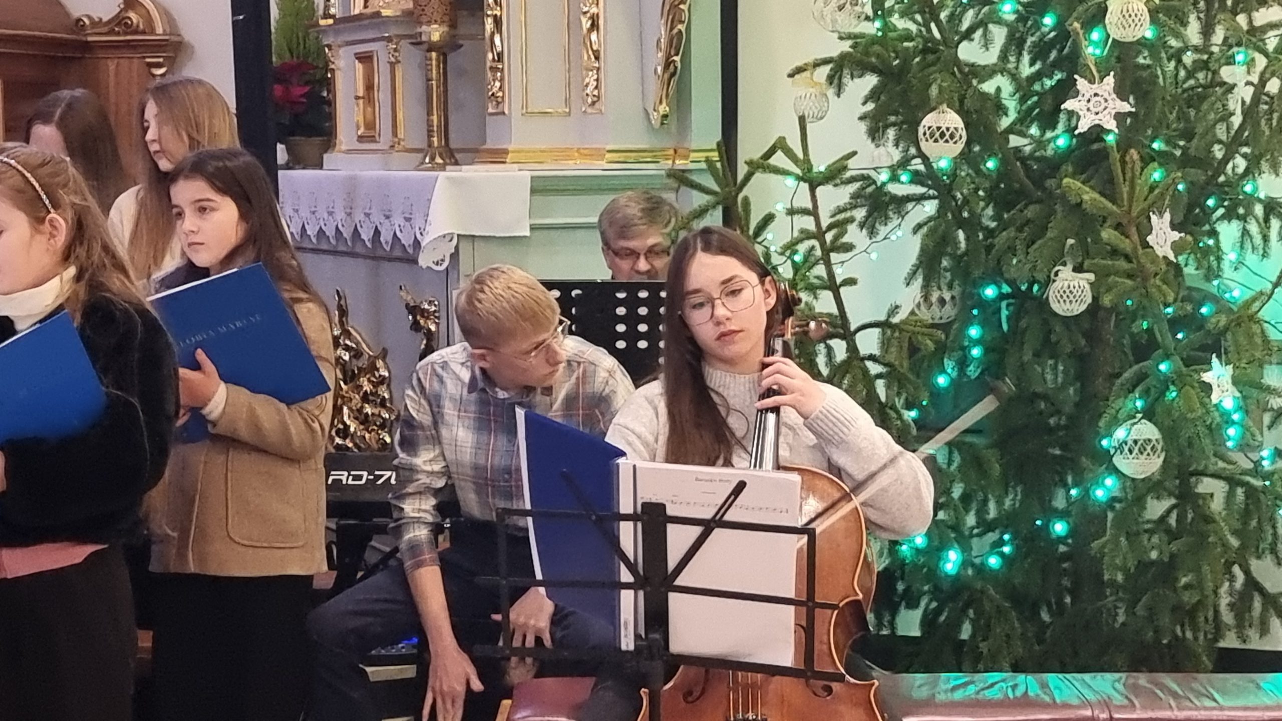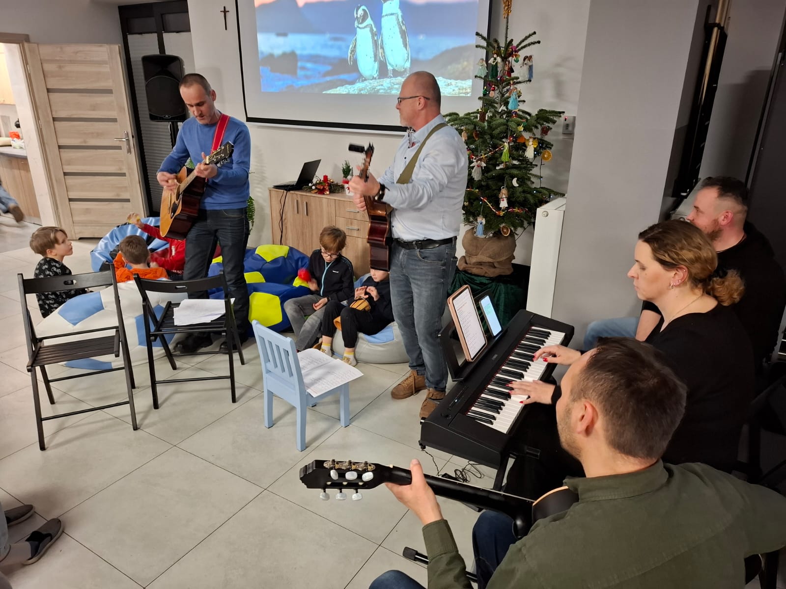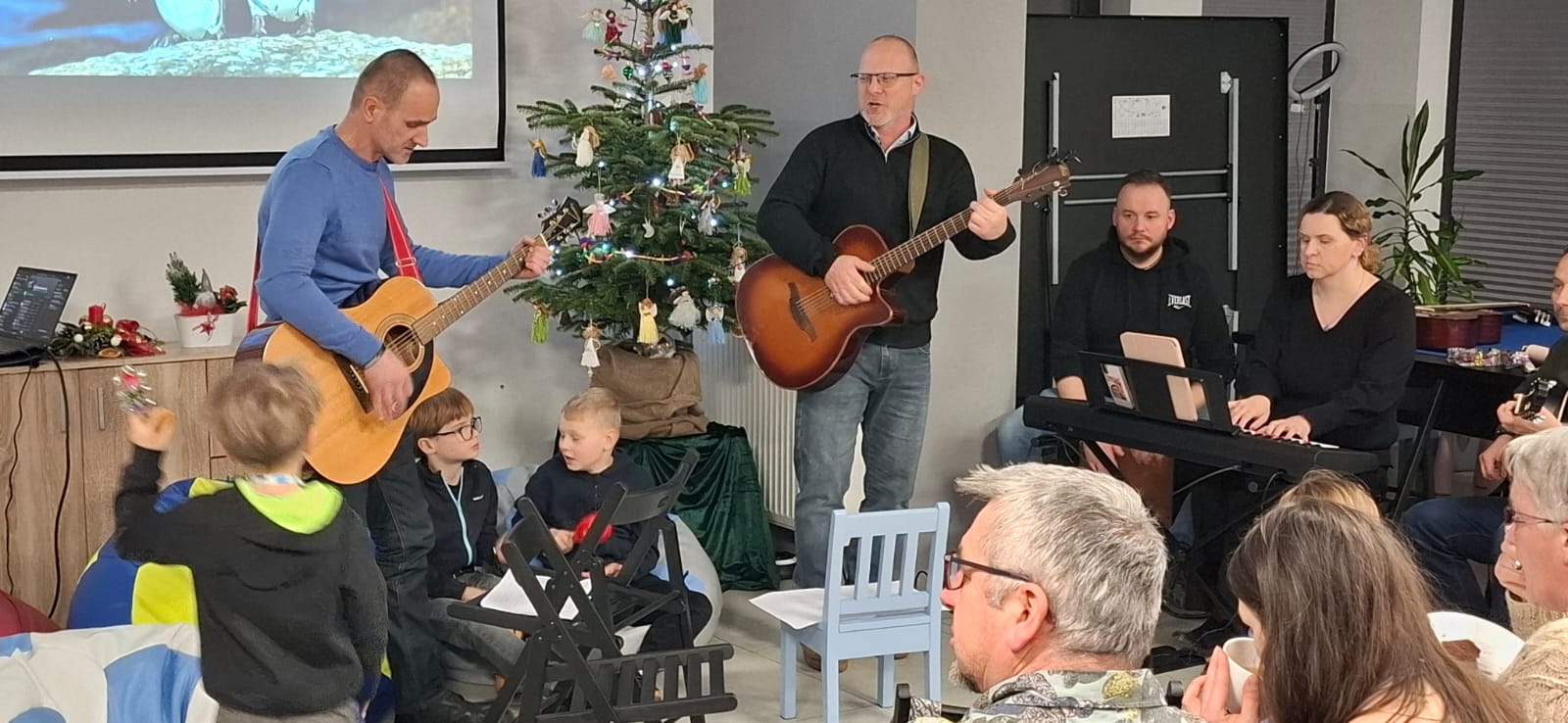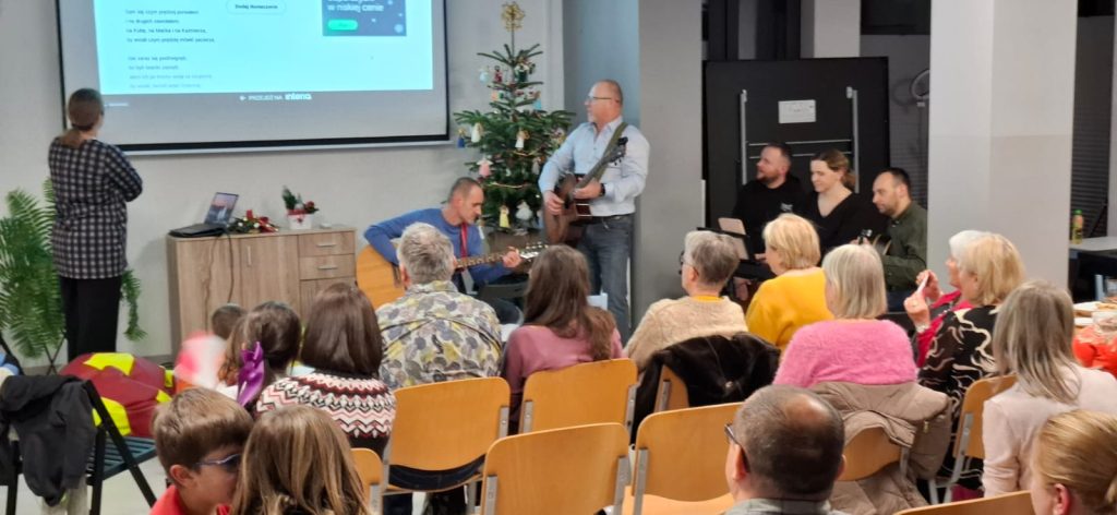 Po filmie odbyło się wspólne kolędowanie. Kolędę prowadzili utalentowani muzycznie członkowie wspólnoty. Nie zabrakło również instrumentów dla dzieci, które wraz z przybyłymi gośćmi włączyły się do wspólnego śpiewu w tym radosnym czasie.