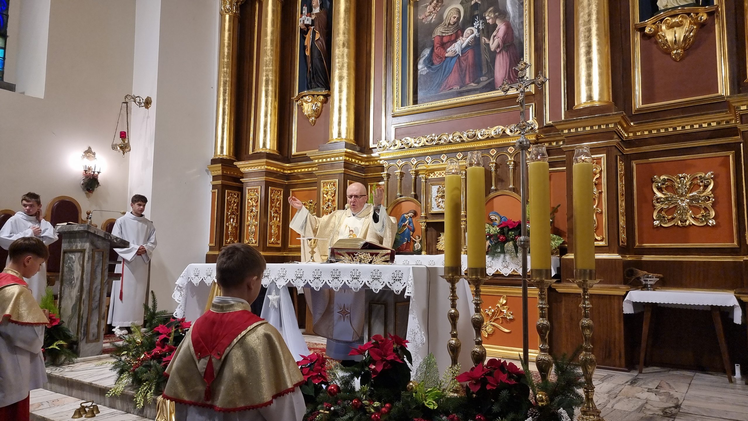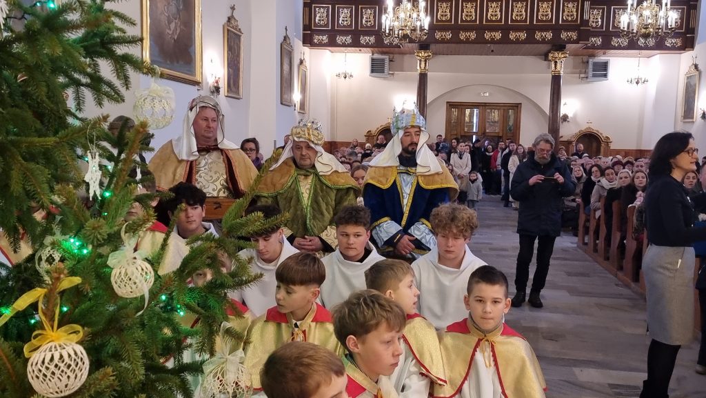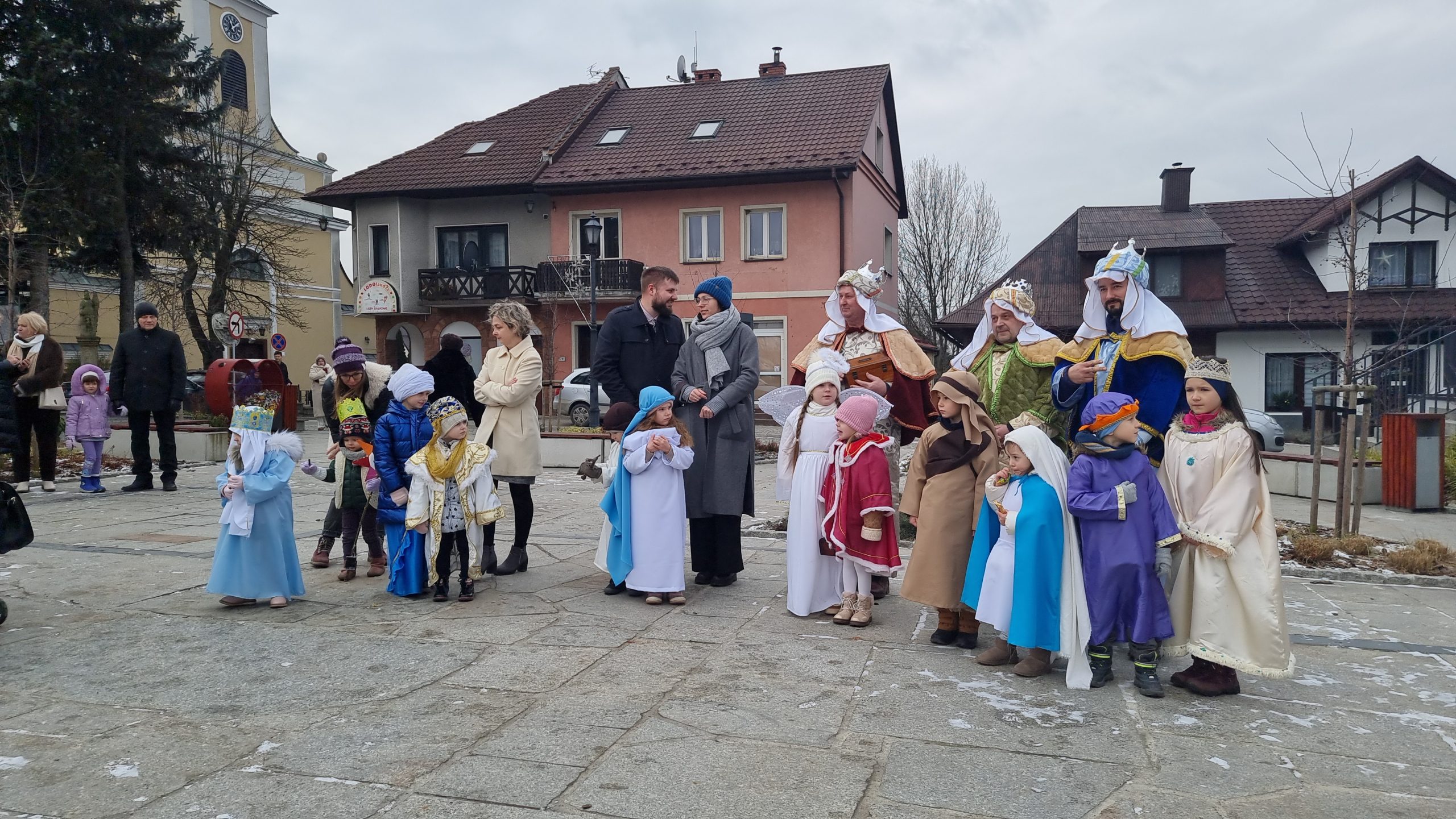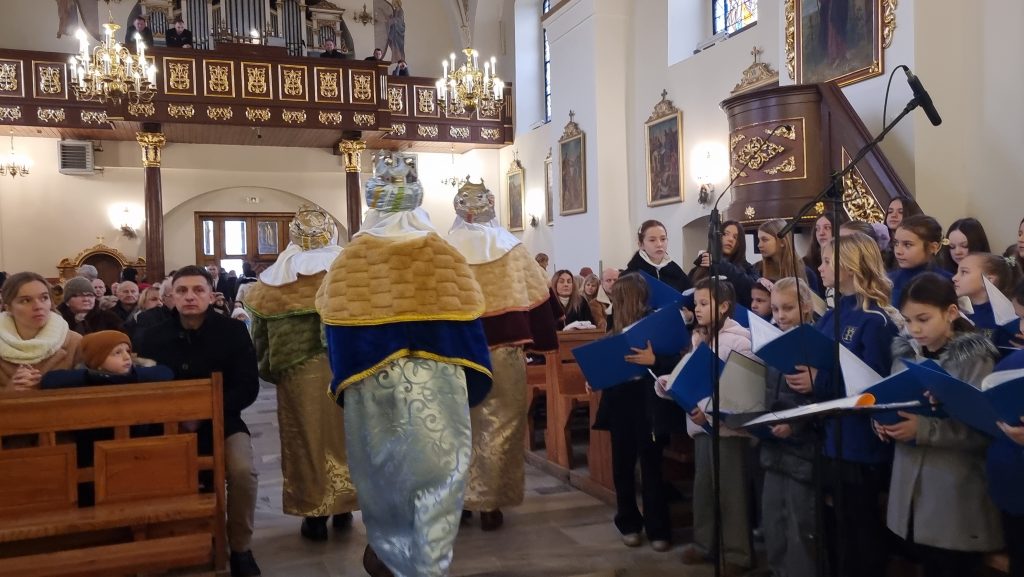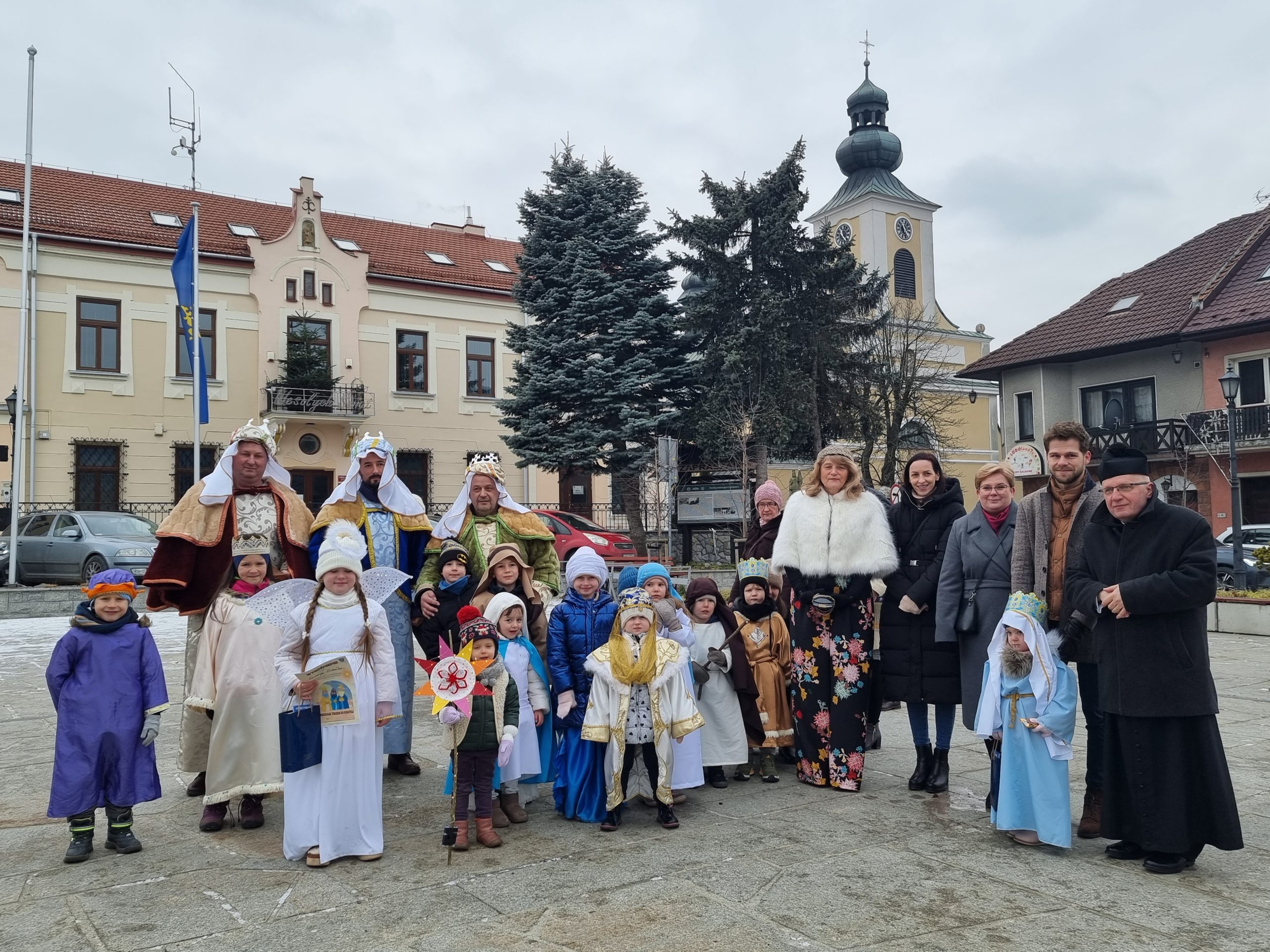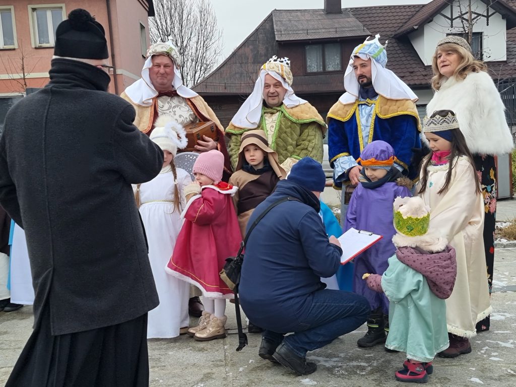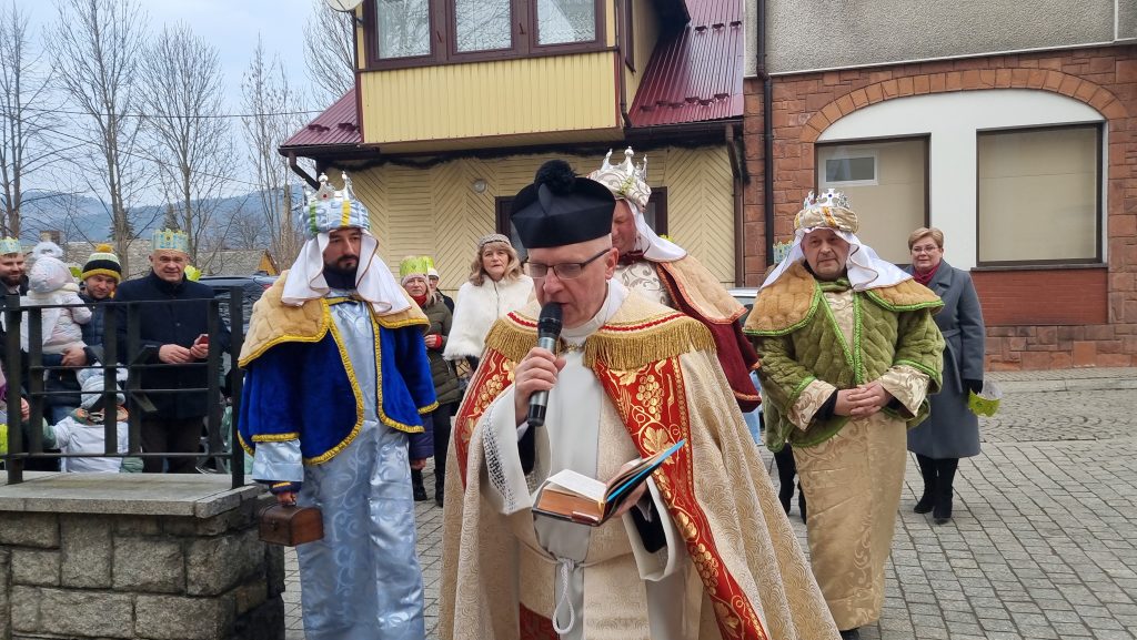 Orszak Trzech Króli przybył do tymbarskiej świątyni na Mszę św.o godz.10.00, którą sprawował ks.proboszcz prałat dr Jan Banach.