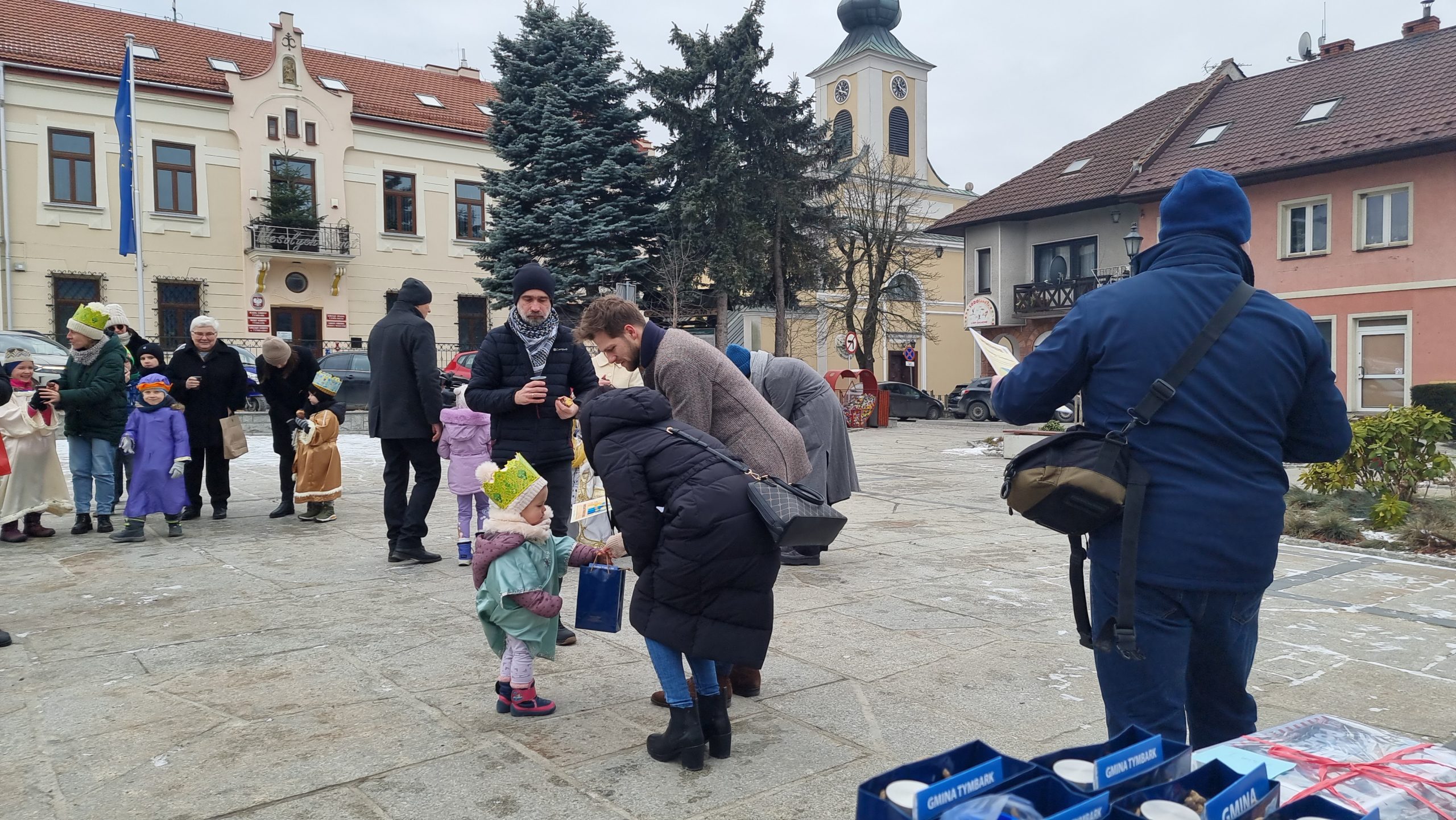 W Tymbarku Orszak Trzech Króli przeszedł od Biblioteki Publicznej w Tymbarku do kościoła parafialnego, przed którym został przywitany przez księdza proboszcza prałata dr.Jana Banacha i dalej już Orszak przeszedł do szopki, aby tam pokłonić się Narodzonemu Jezusowi. Trzech Królowie uczestniczyli we Mszy św. o godz.10, po której na tymbarskim Rynku odbył się konkurs na najładniejsze stroje.