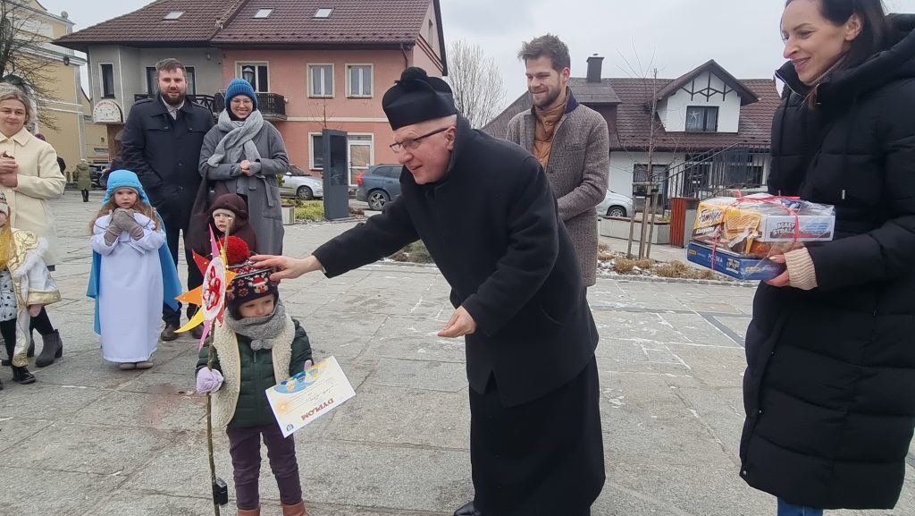 Po zakończonej Eucharystii o godz.10-tej, na tymbarskim Rynku odbył się konkurs na najpiękniejszy strój kolędowy i misyjny. Konkurs poprowadził Robert Kowalski z Urzędu Gminy w Tymbarku. Przewodniczącym komisji konkursowej był ks.proboszcz Parafii Tymbark dr Jan Banach.
