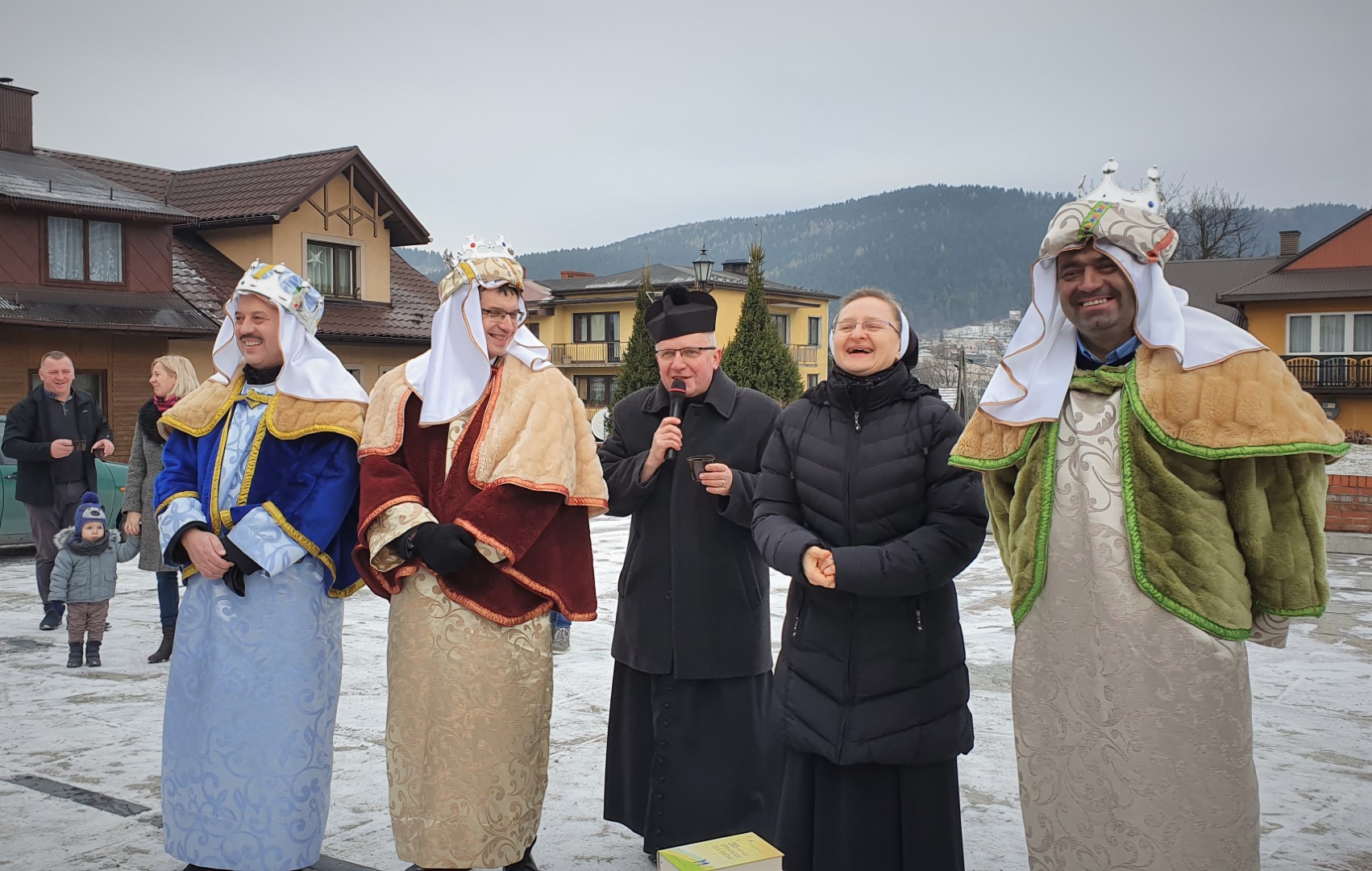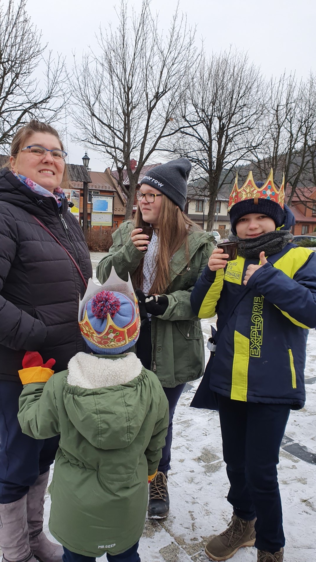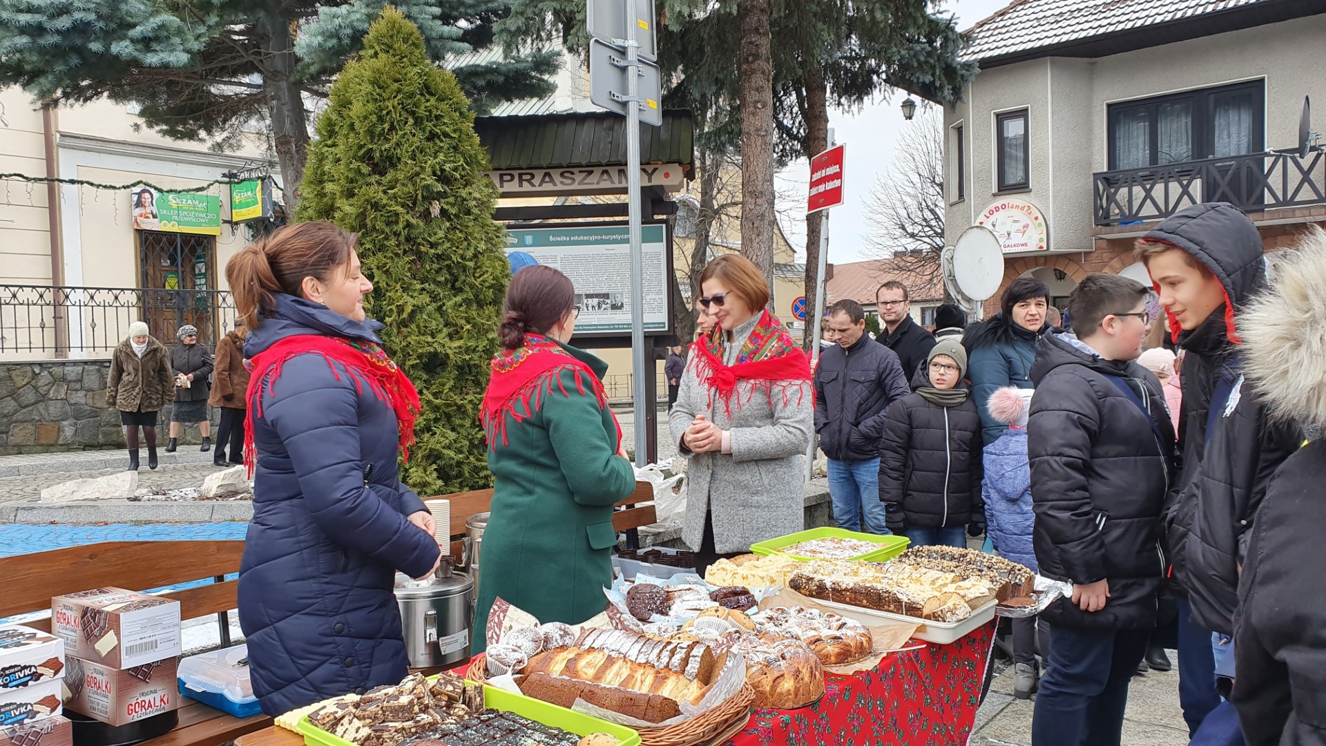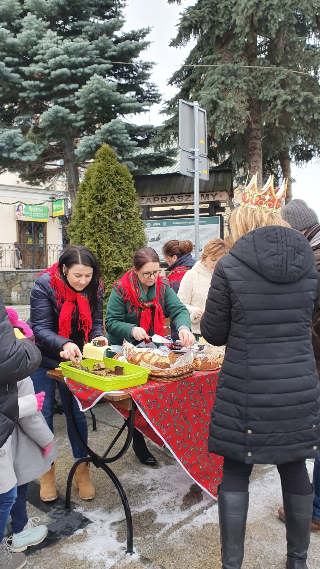 Po zakończeniu Mszy św. na tymbarskim Rynku nastąpiło rozstrzygnięcie konkursu na najpiękniejszy strój kolędnika misyjnego, a Panie z KGW Tymbark przyjęły wszystkich poczęstunkiem  w formie gorącej czekolady oraz  pysznego ciasta.