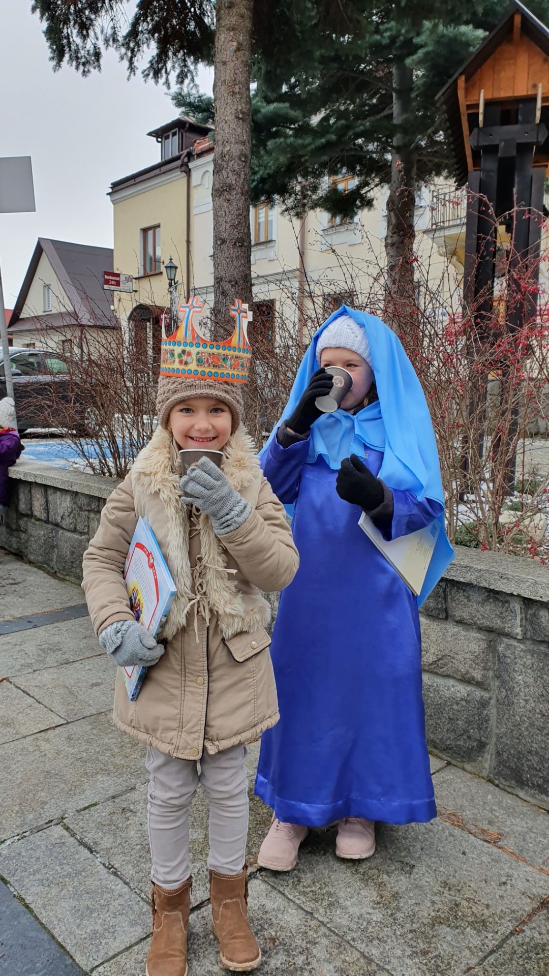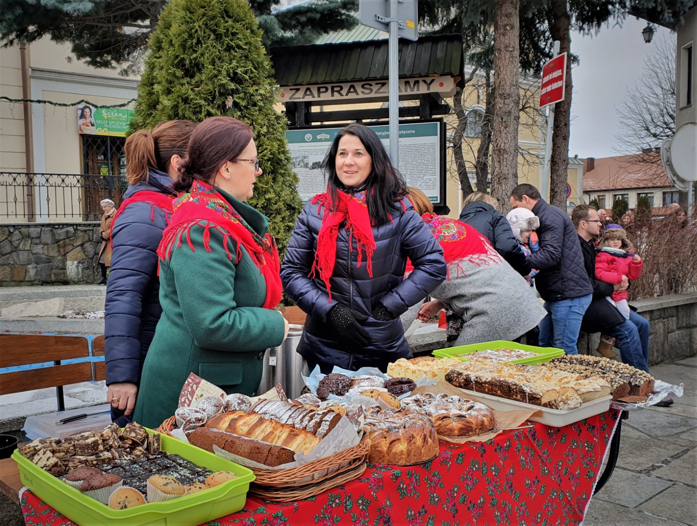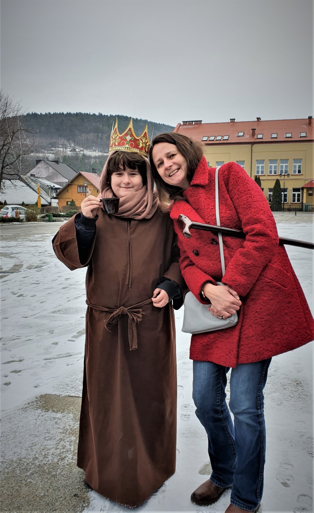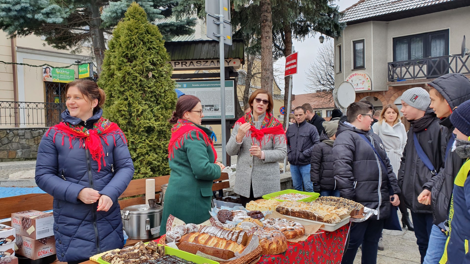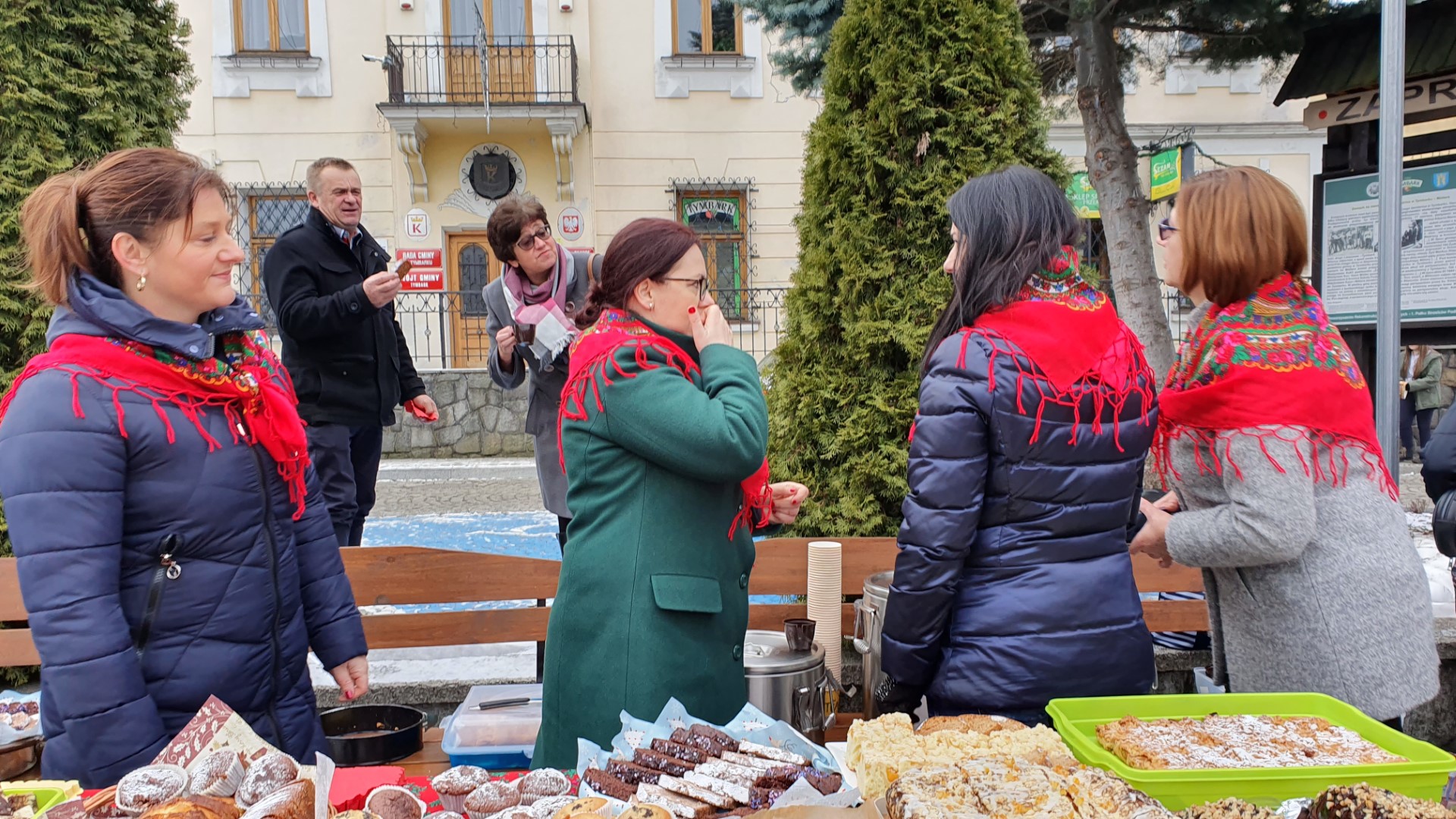 Po zakończeniu Mszy św. na tymbarskim Rynku nastąpiło rozstrzygnięcie konkursu na najpiękniejszy strój kolędnika misyjnego, a Panie z KGW Tymbark przyjęły wszystkich poczęstunkiem  w formie gorącej czekolady oraz  pysznego ciasta.