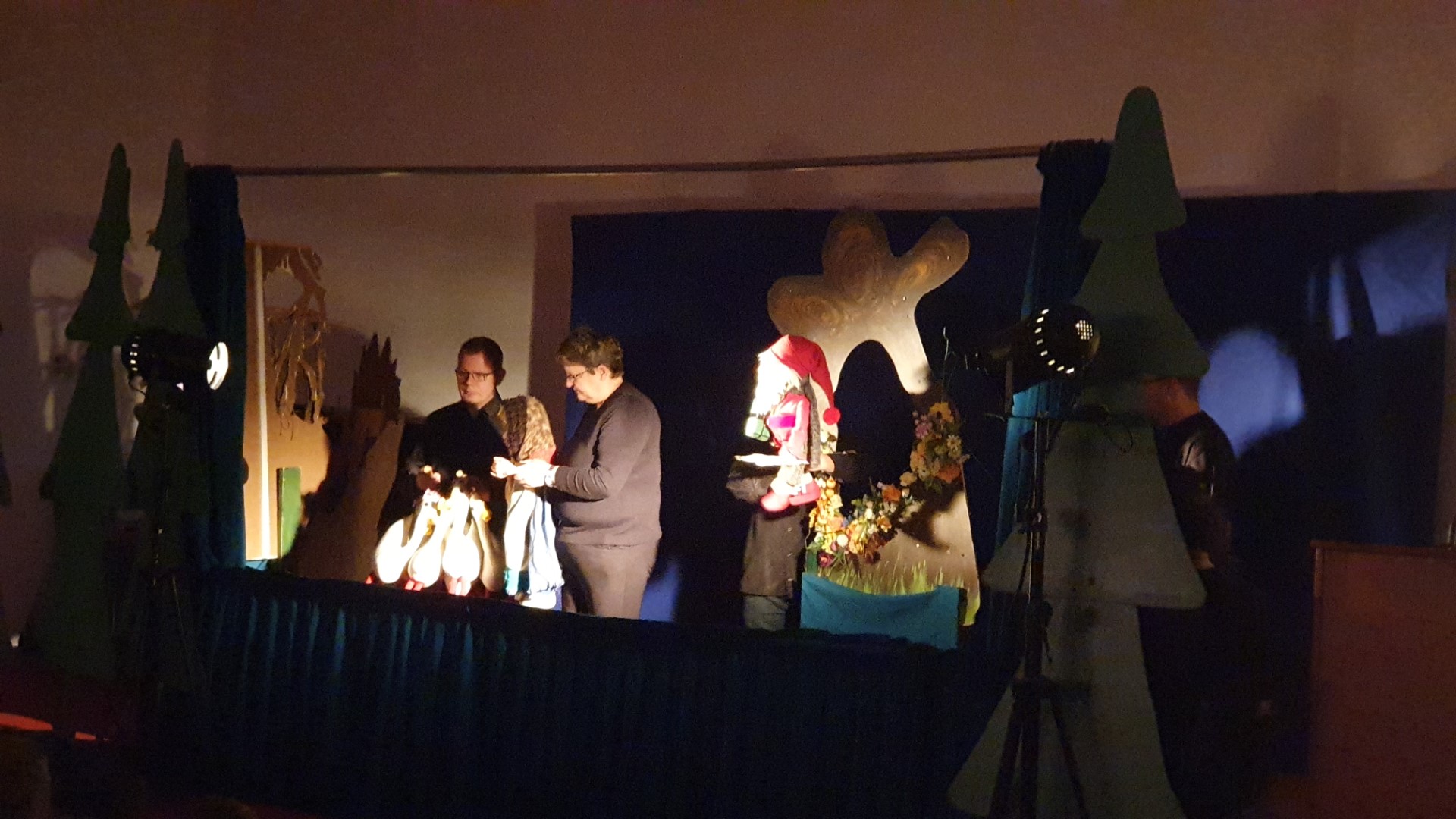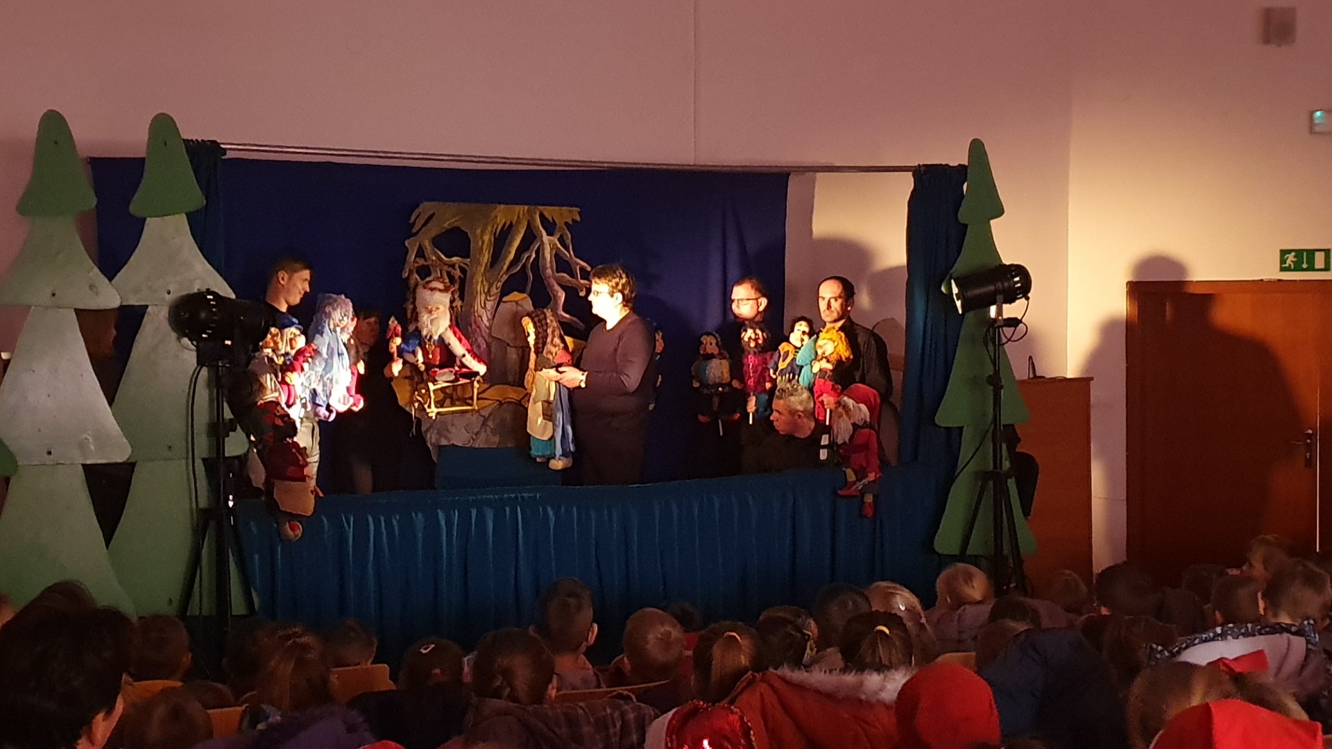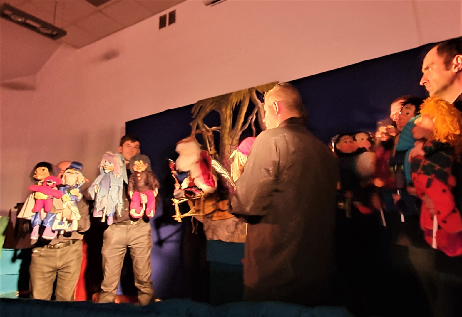 Zanim święty Mikołaj dotarł do Biblioteki Publicznej w Tymbarku, aby tam spotkać się z grzecznymi dziećmi, na zabranych czekała niespodzianka. Była nią występ Grupy Teatralnej „Nowi Gotowi”, która zaprezentowała kukiełkowy spektakl „O krasnoludkach i Sierotce Marysi”. O tym, że spektakl był bardzo dobry i „wciągający” świadczy to, że dzieci oglądały teatr z olbrzymim zainteresowaniem, a na zakończenie podziękowały aktorom gromkimi oklaskami.