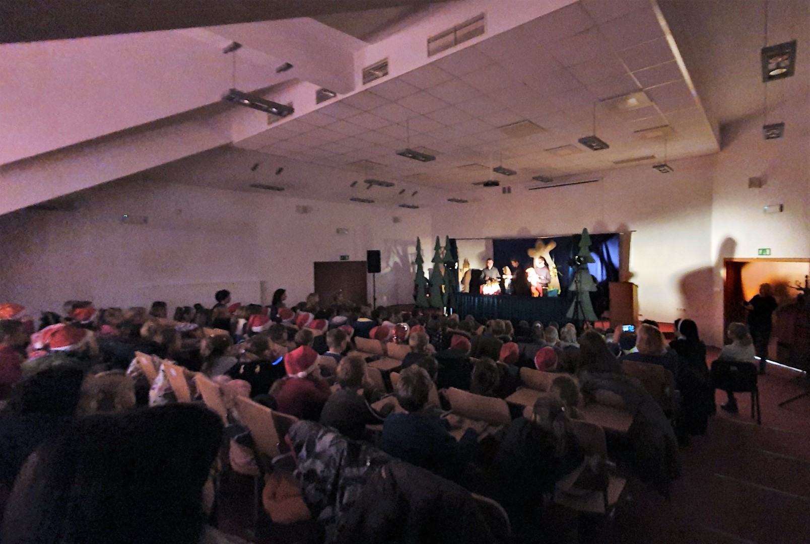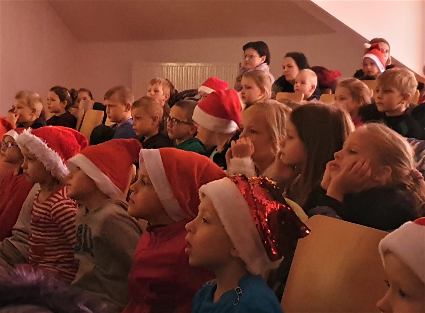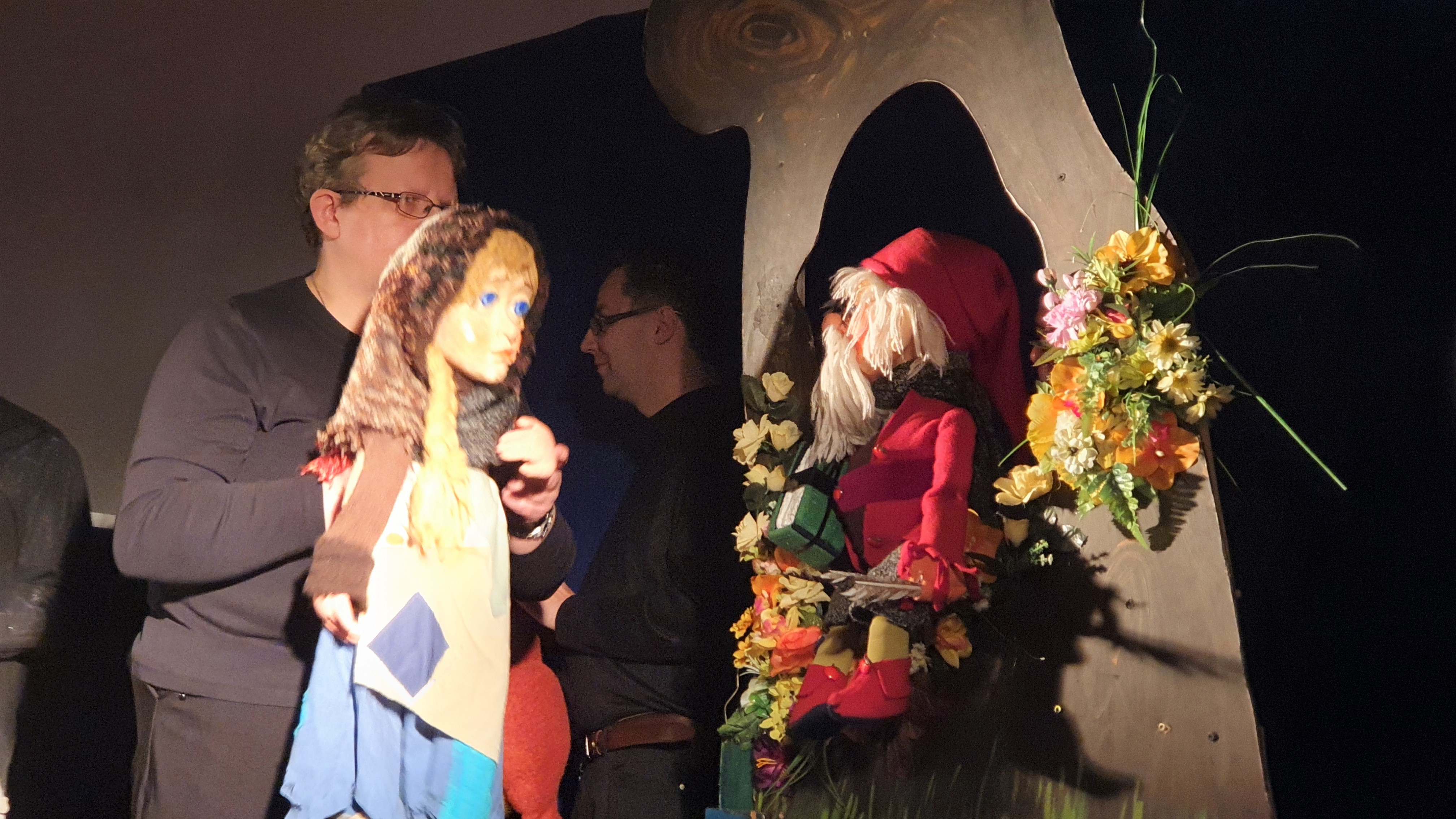 Zanim święty Mikołaj dotarł do Biblioteki Publicznej w Tymbarku, aby tam spotkać się z grzecznymi dziećmi, na zabranych czekała niespodzianka. Była nią występ Grupy Teatralnej „Nowi Gotowi”, która zaprezentowała kukiełkowy spektakl „O krasnoludkach i Sierotce Marysi”. O tym, że spektakl był bardzo dobry i „wciągający” świadczy to, że dzieci oglądały teatr z olbrzymim zainteresowaniem, a na zakończenie podziękowały aktorom gromkimi oklaskami.
