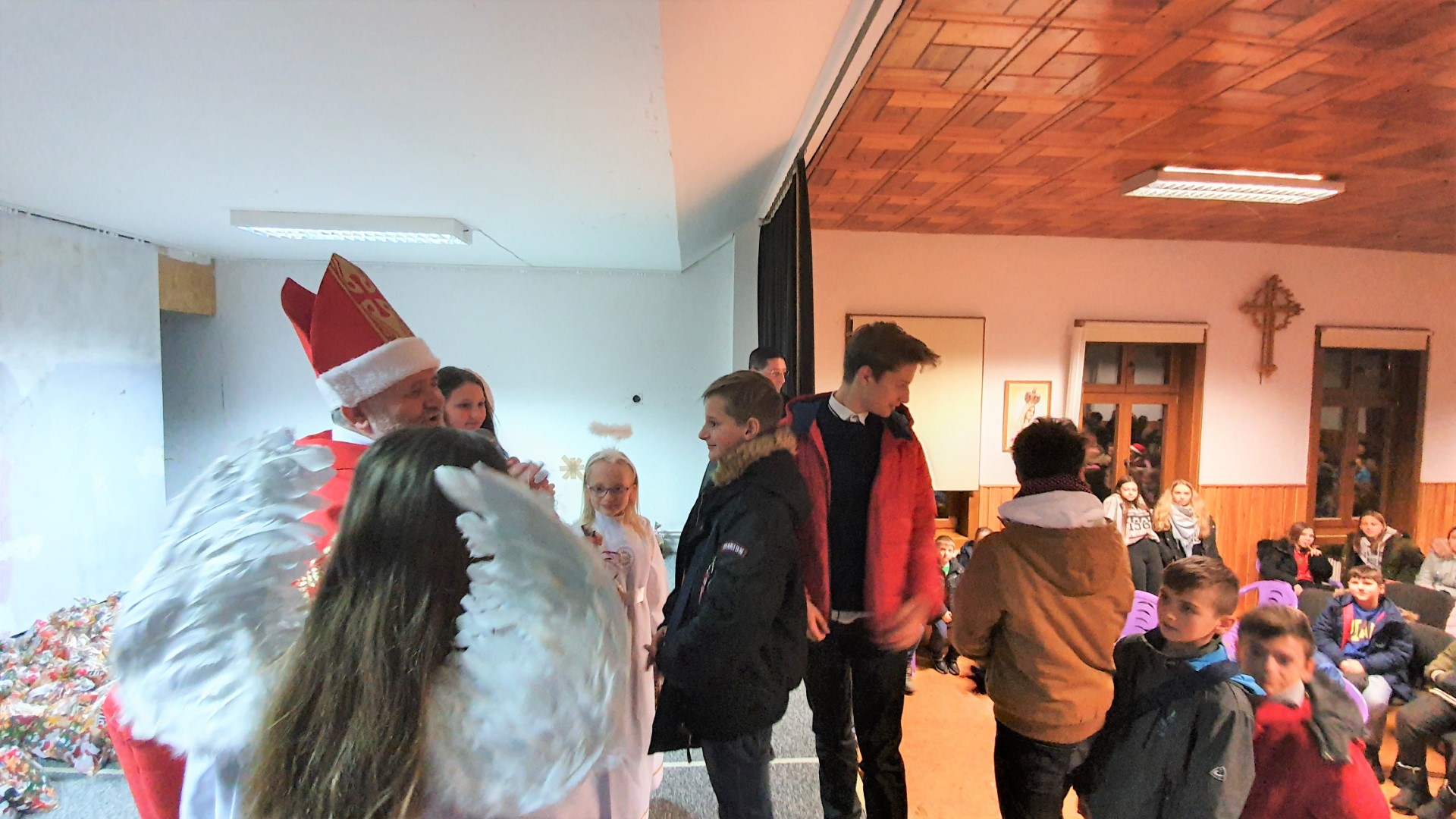 Święty Mikołaj nie zapomniał też o dzieciach i młodzieży zaangażowanej w życie parafialne w Parafii Tymbark. Do Parafialnego Centrum Kultury św.Mikołaj przybył w otoczeniu Aniołków. Przyniósł bardzo dużo prezentów, gdyż wiedział, że czaka na niego pełna sala. Na spotkanie z nim przyszli ministranci, lektorzy z Tymbarku oraz z Piekiełka, dziewczęta z DSM, członkowie zespołu „Gloria Mariae” oraz zespołu „Święty Józef” z Piekiełka. Św.Mikołaj pamiętał też o młodych uczestnikach zajęć w Świetlicy Wiejskiej w Zamieściu.