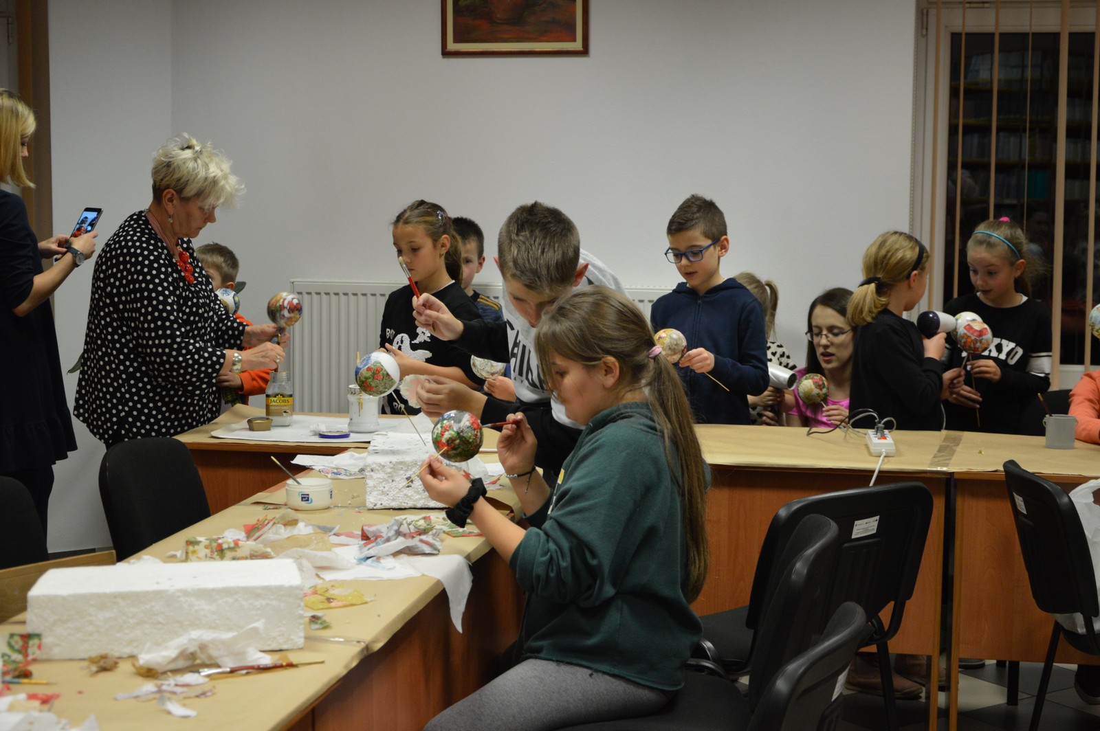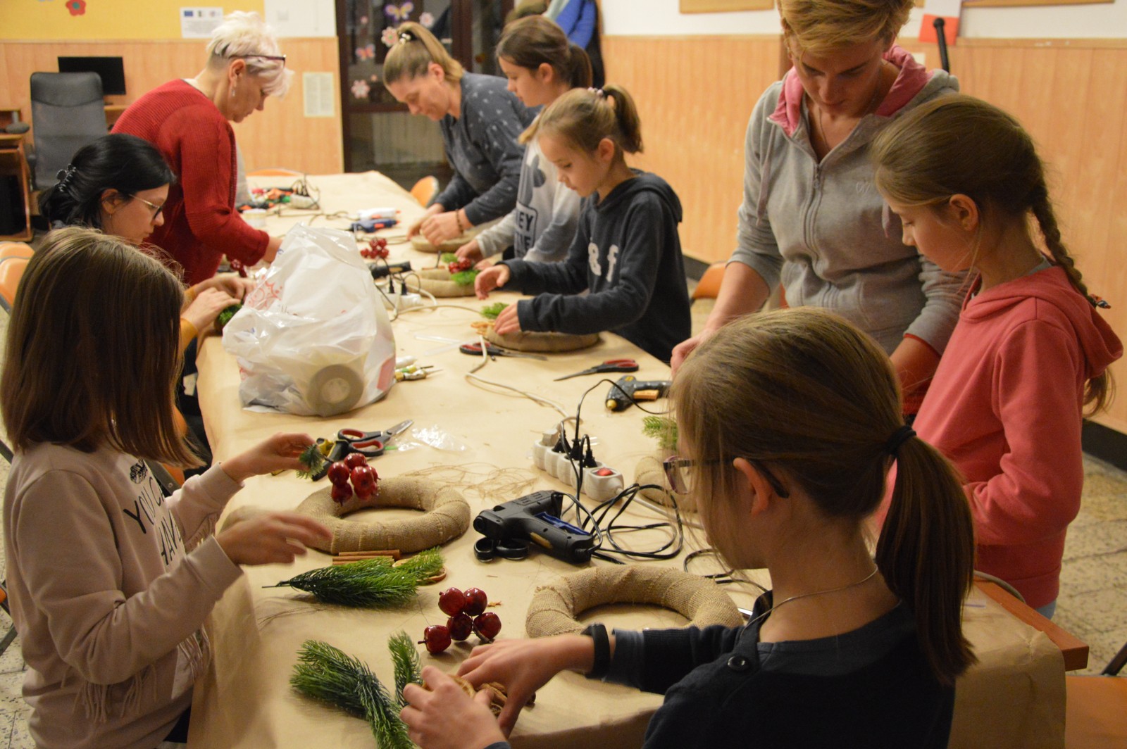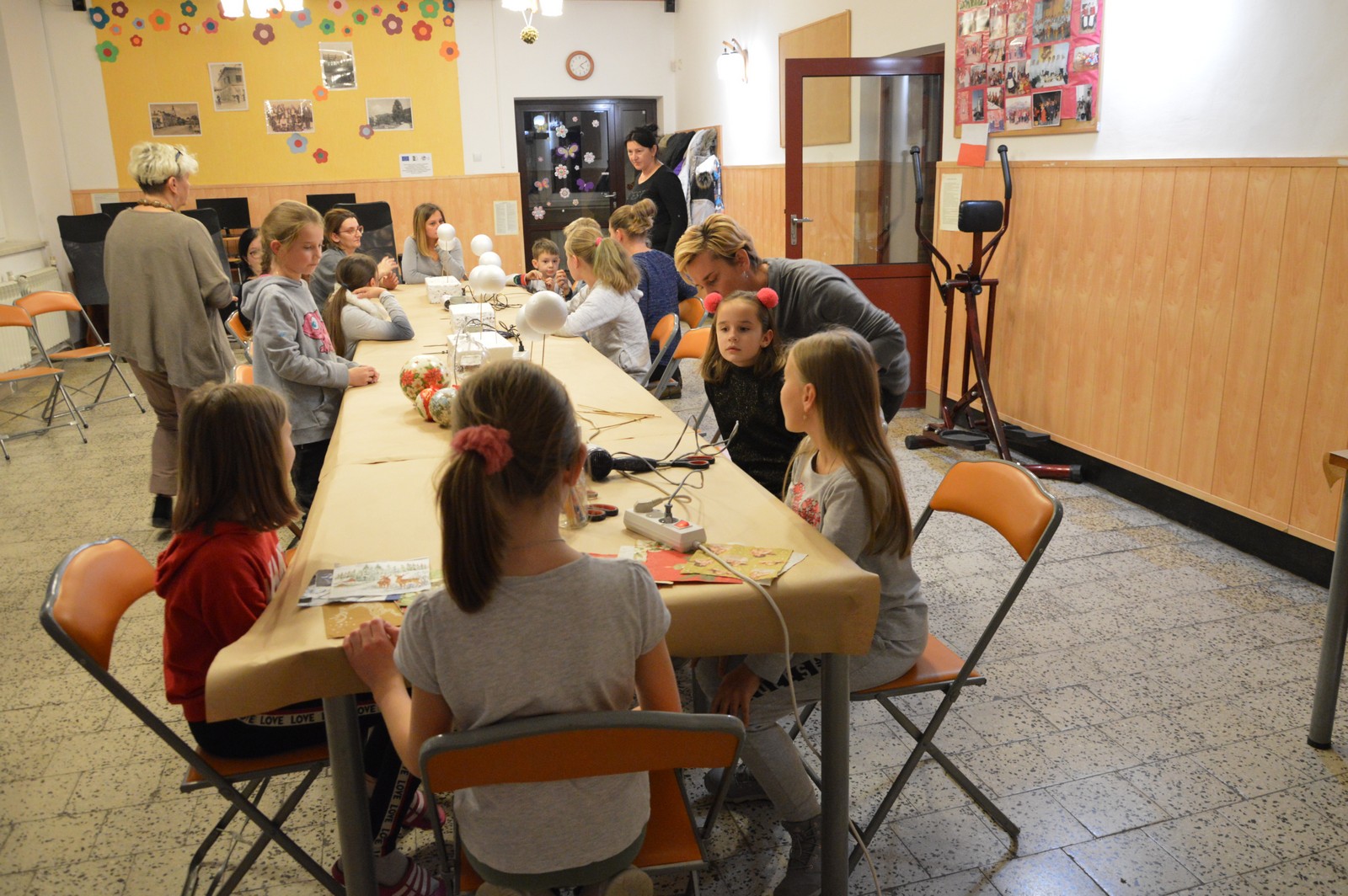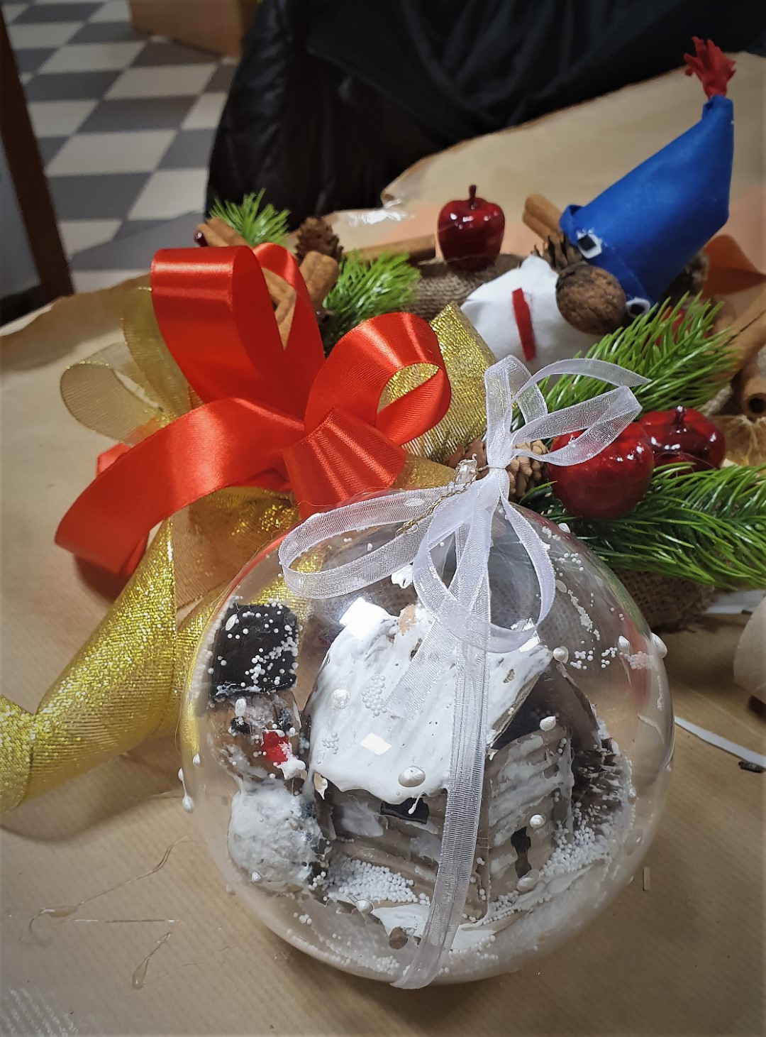 Warsztaty nawiązywały do rodzinnych tradycji wspólnego przygotowywania ozdób choinkowych i dekoracji świątecznych. Uczestnicy pod okiem plastyczki Wiesławy Frączek, samodzielnie tworzyli oryginalne: bombki wykonane techniką decoupage, miniaturowe zimowe domki zamknięte w szklanych bańkach, wianki świąteczne na drzwi, błyszczące gwiazdy, filcowe skrzaty oraz aniołki z makaronu. Powstałe na zajęciach dekoracje świąteczne można było zabrać do domu, by poczuć świąteczny klimat.