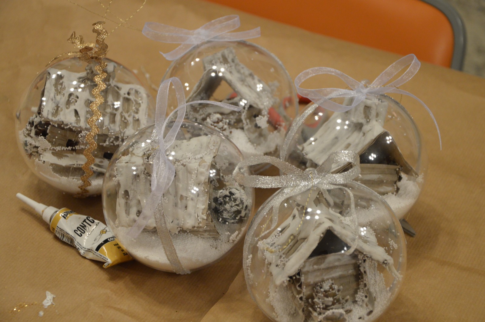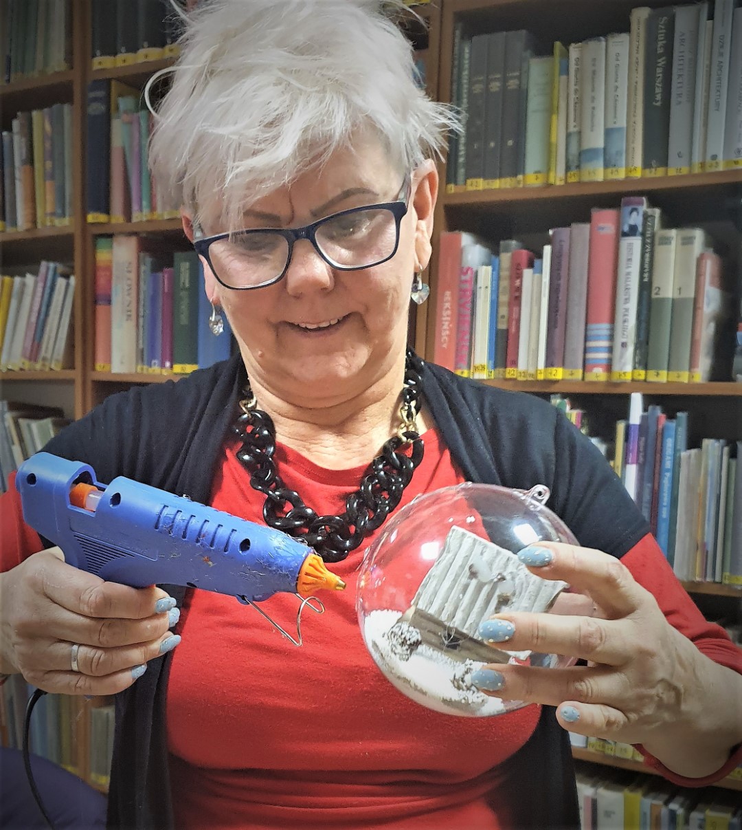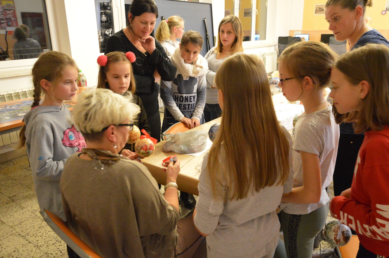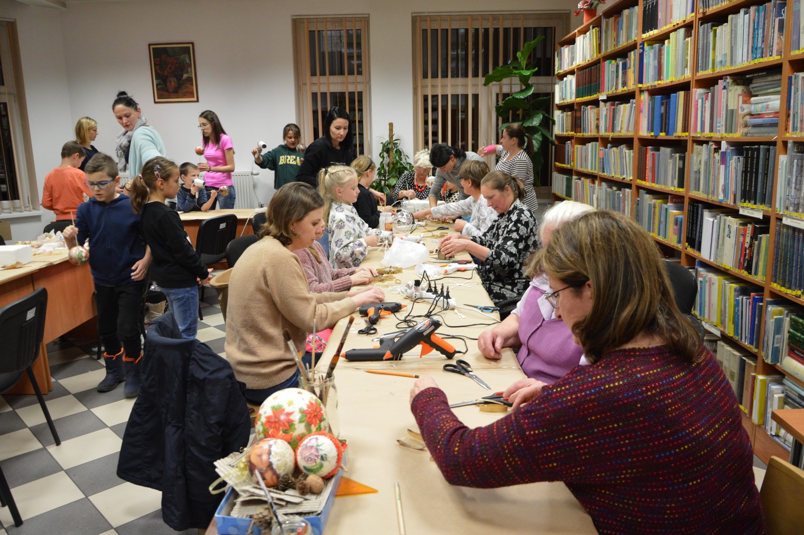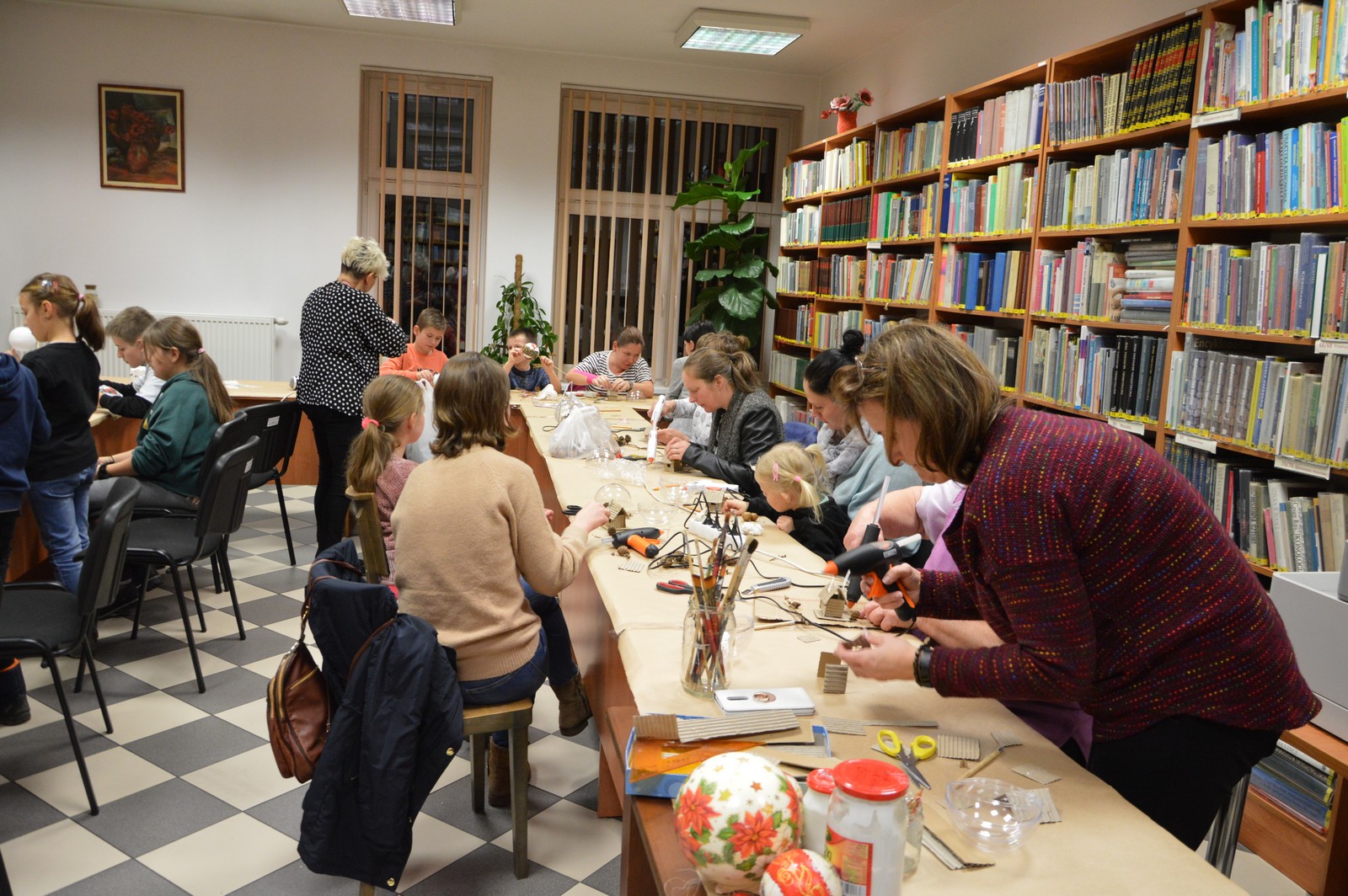 Warsztaty nawiązywały do rodzinnych tradycji wspólnego przygotowywania ozdób choinkowych i dekoracji świątecznych. Uczestnicy pod okiem plastyczki Wiesławy Frączek, samodzielnie tworzyli oryginalne: bombki wykonane techniką decoupage, miniaturowe zimowe domki zamknięte w szklanych bańkach, wianki świąteczne na drzwi, błyszczące gwiazdy, filcowe skrzaty oraz aniołki z makaronu. Powstałe na zajęciach dekoracje świąteczne można było zabrać do domu, by poczuć świąteczny klimat.