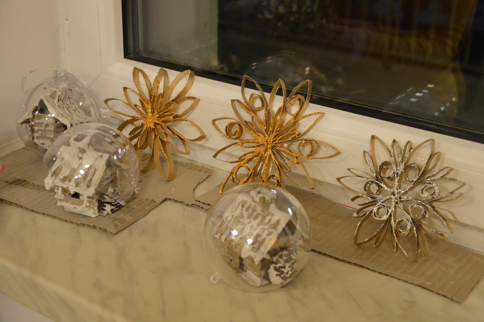 Pani Ewa podkreśla, że do wykonywania ozdób wykorzystuje przedmioty, które są w domu (nie kupuje ich w marketach), a bardzo często są to rzeczy, które normalnie byłyby wyrzucone do śmieci, np. uszkodzony niechcąco kieliszek, rolki po folii aluminiowej itp.