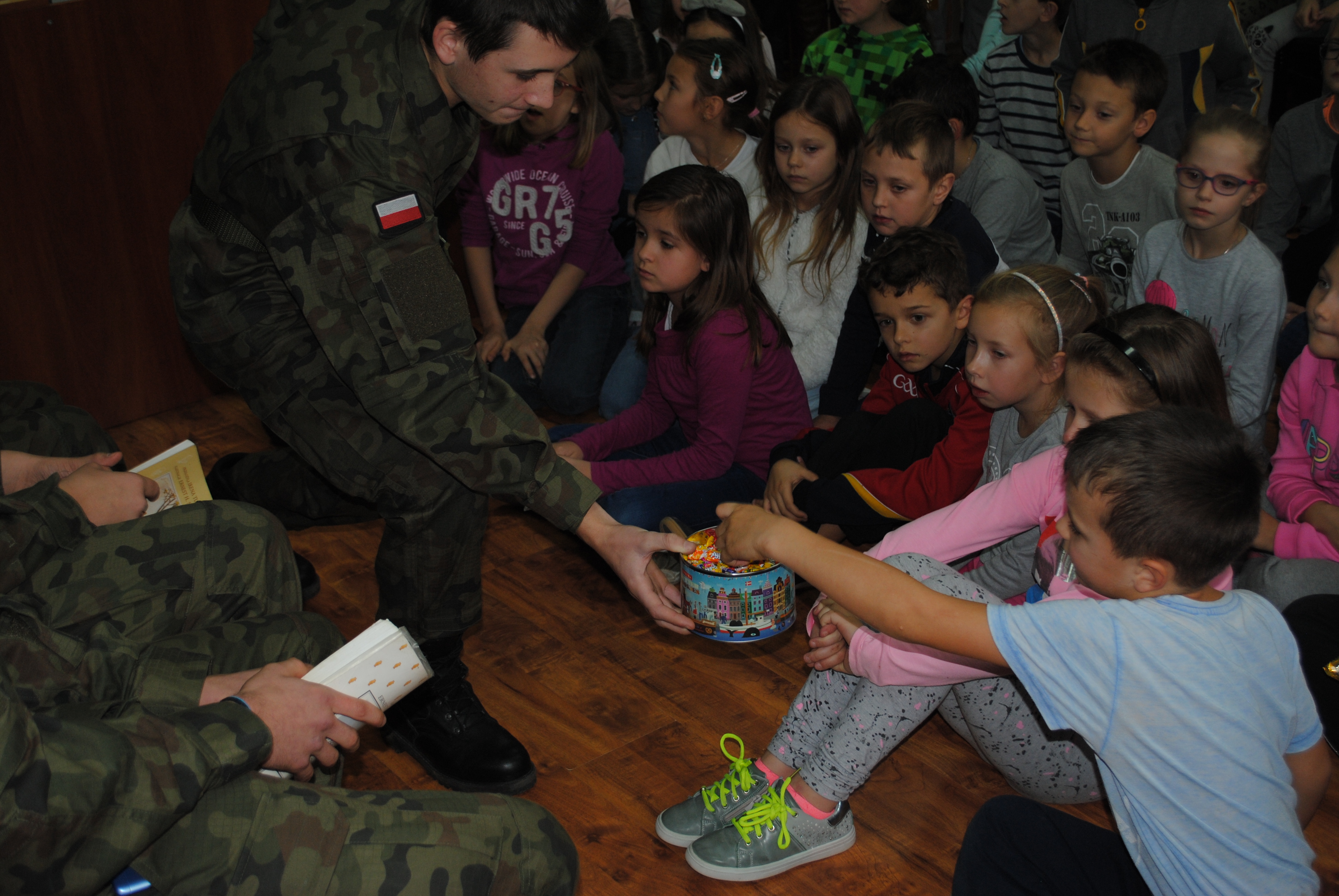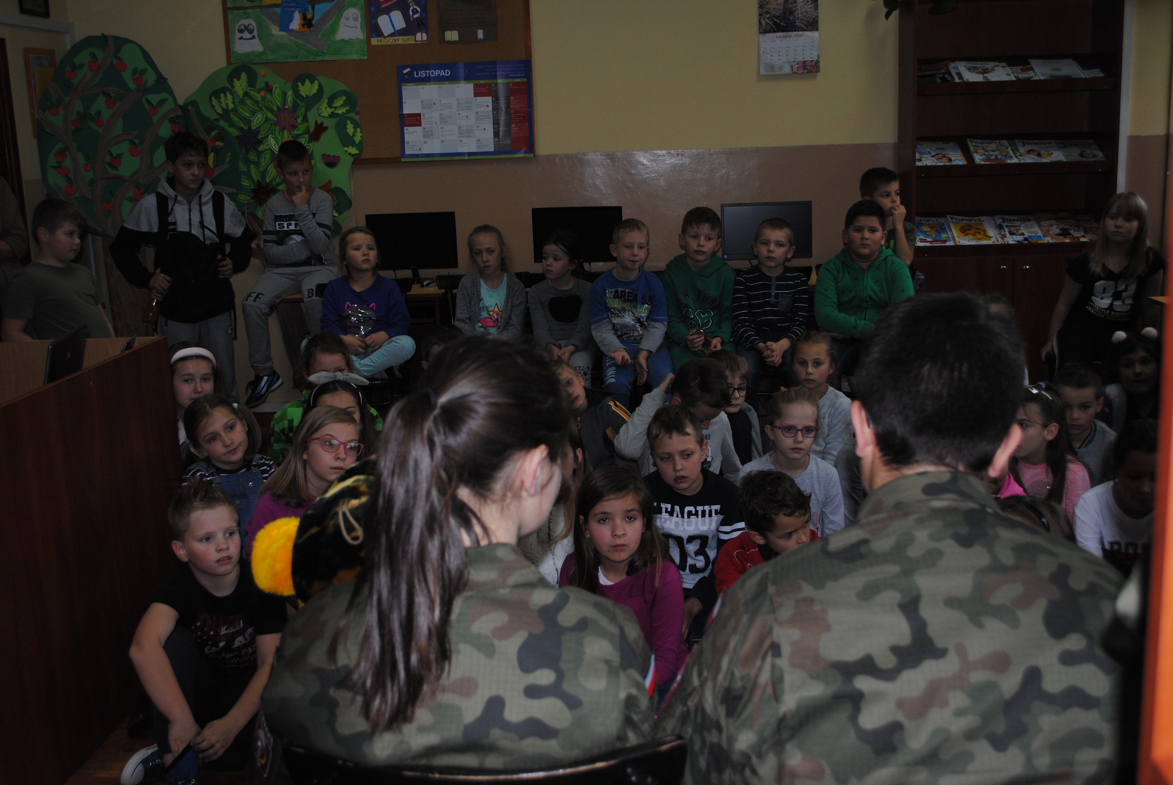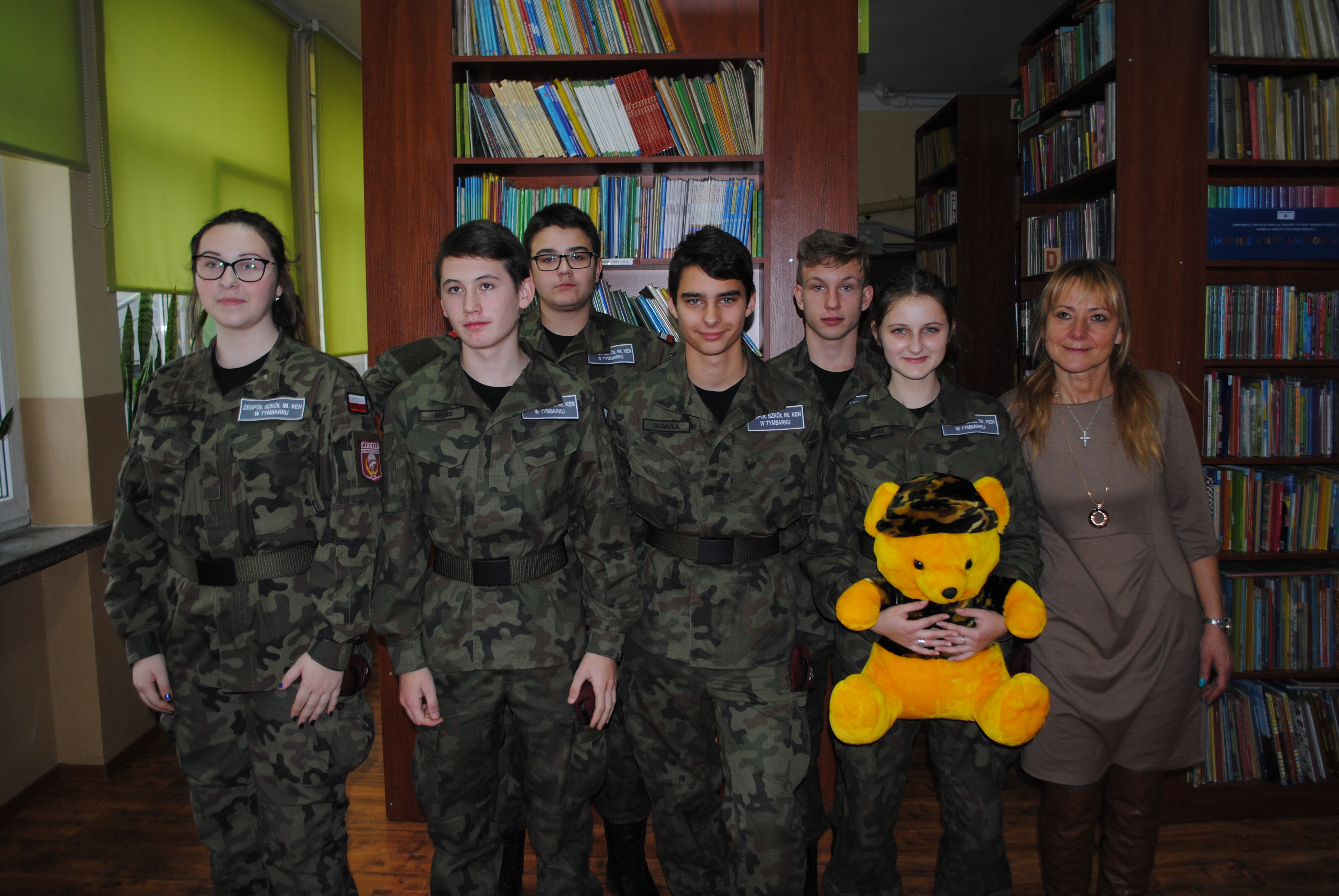 28 listopada w Szkole Podstawowej w Tymbarku gościliśmy, już po raz kolejny licealistów z klasy wojskowej z ZS im. KEN w Tymbarku z opiekunką, panią Lucyną Woźniak. Okazją do zaproszenia był obchodzony w rocznicę powstania maskotki 25 listopada Światowy Dzień Pluszowego Misia. Pluszowy Miś- przytulanka, przyjaciel z dzieciństwa, wierny, oddany, zabawny…. W ramach akcji „Cała Polska czyta dzieciom” uczniowie naszej szkoły mieli okazję do posłuchania fragmentów „Kubusia Puchatka” A. A. Milne oraz „Misia Uszatka” Cz. Janczarskiego . Oczywiście podczas zabawy nie zabrakło najważniejszego towarzysza -Misia, który słuchał opowieści wraz z uczniami.