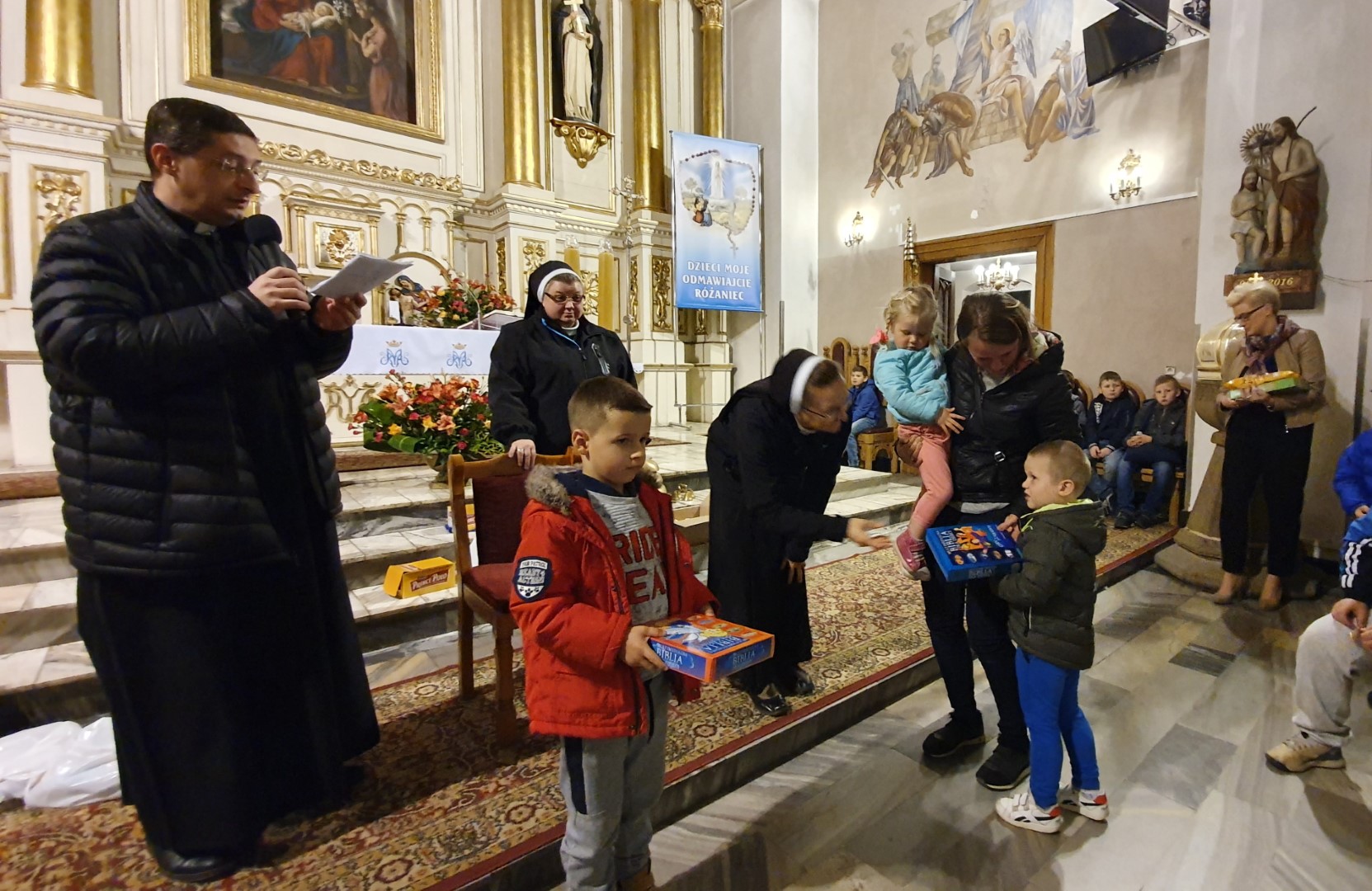 Zanim ksiądz Witold wraz z siostrami rozdali nagrody, zostały odczytane nazwiska dzieci, które systematycznie brały udział w codziennych nabożeństwach różańcowych. Było to sześćdziesięcioro. Nagrodą dla nich będzie wycieczka, która obędzie się w połowie listopada.