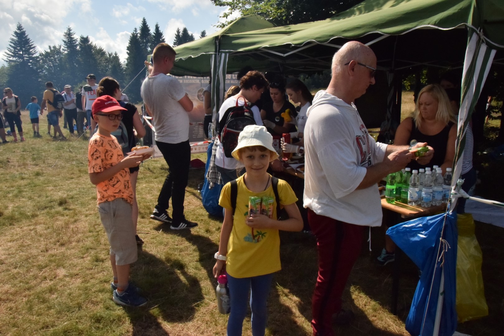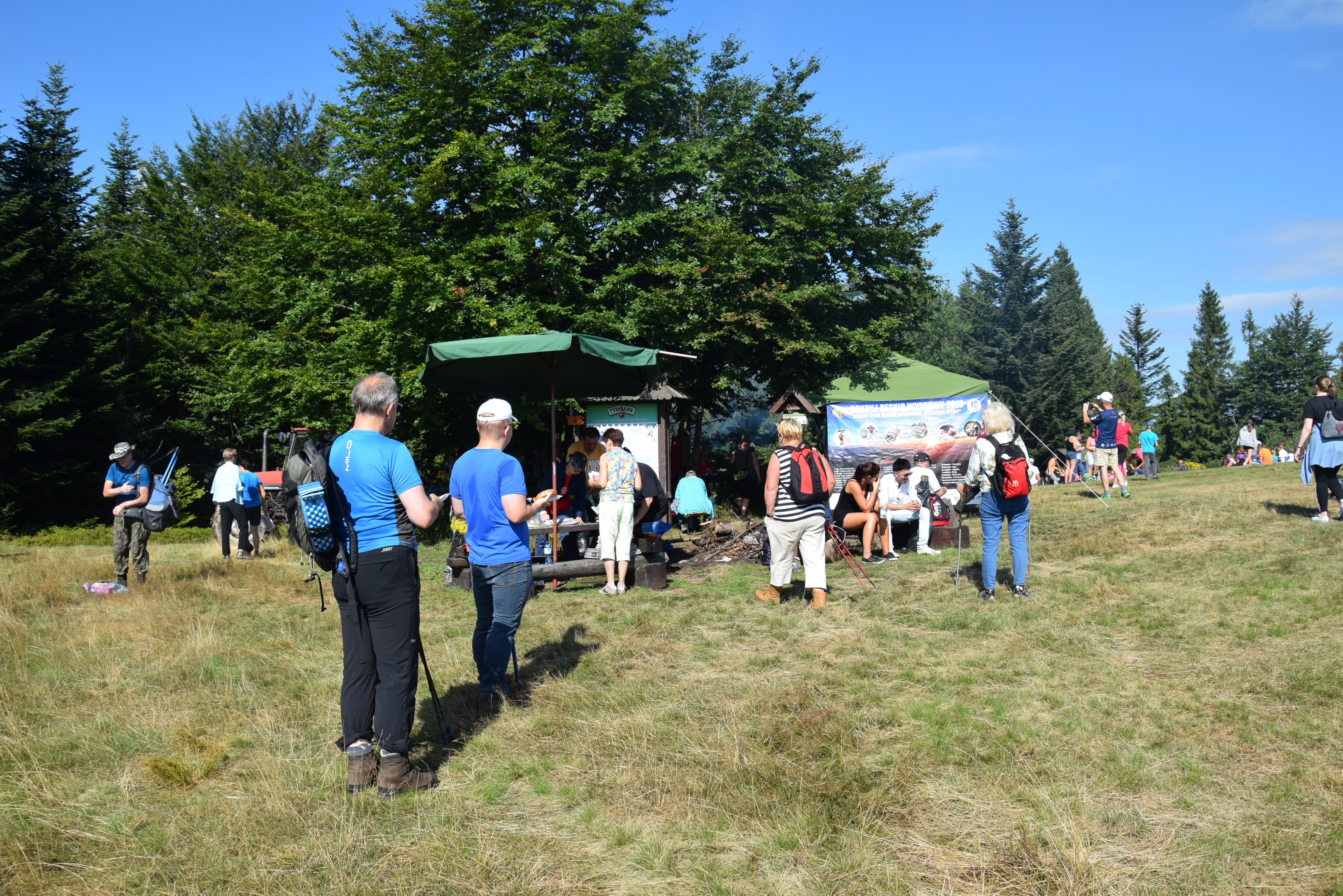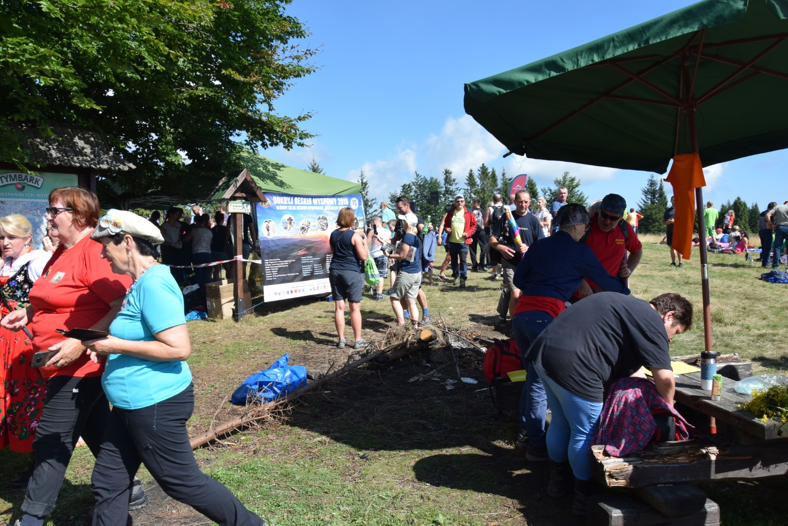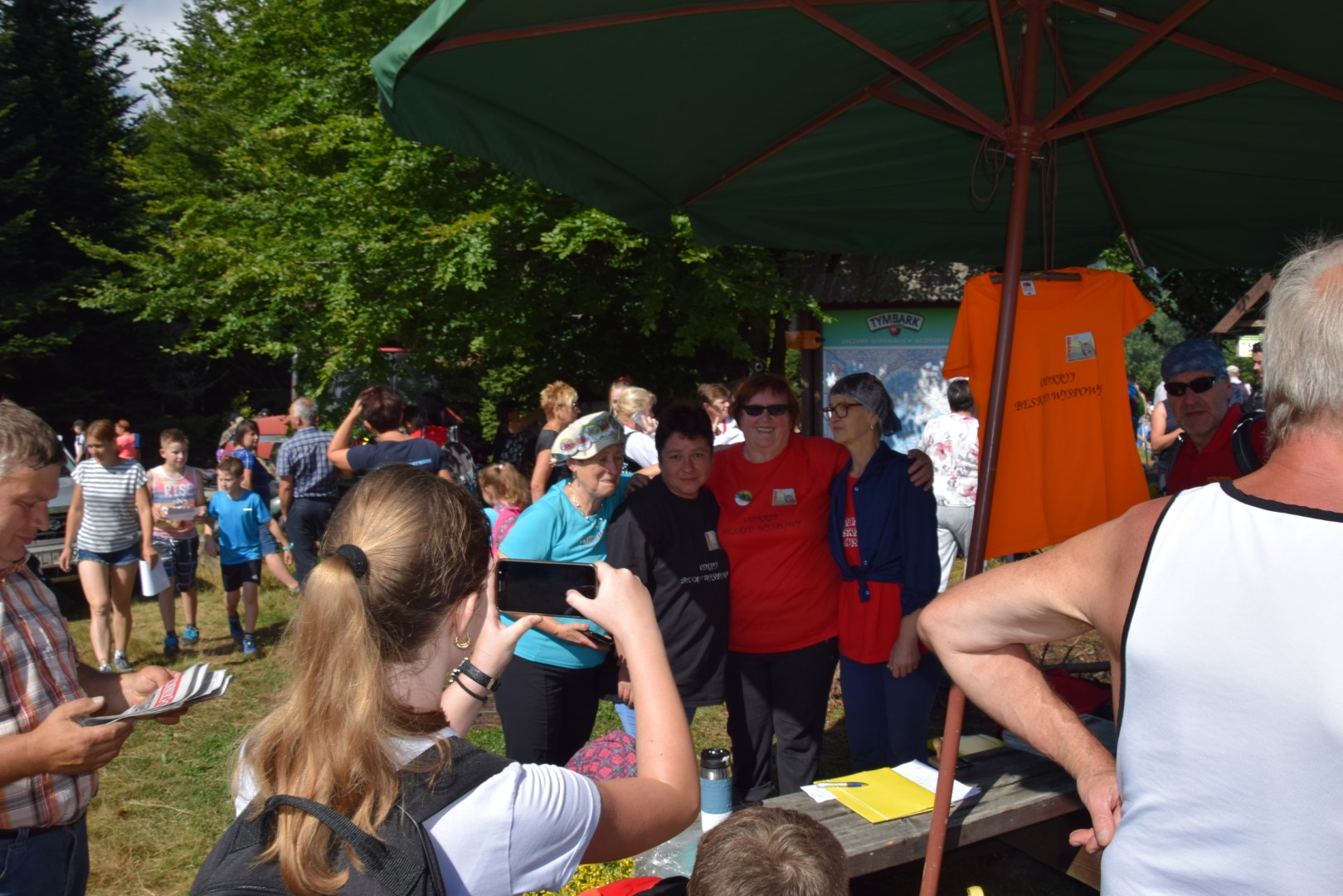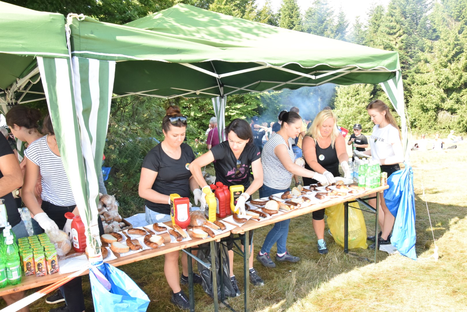 Druhowie z jednostek OSP w Dobrej i Tymbarku, Panie z Koła Gospodyń Wiejskich w Tymbarku i pracownicy Urzędu Gminy w Dobrej, częstowali turystów kiełbaskami z grilla, napojami i soczkami ufundowanymi przez Firmę Tymbark.