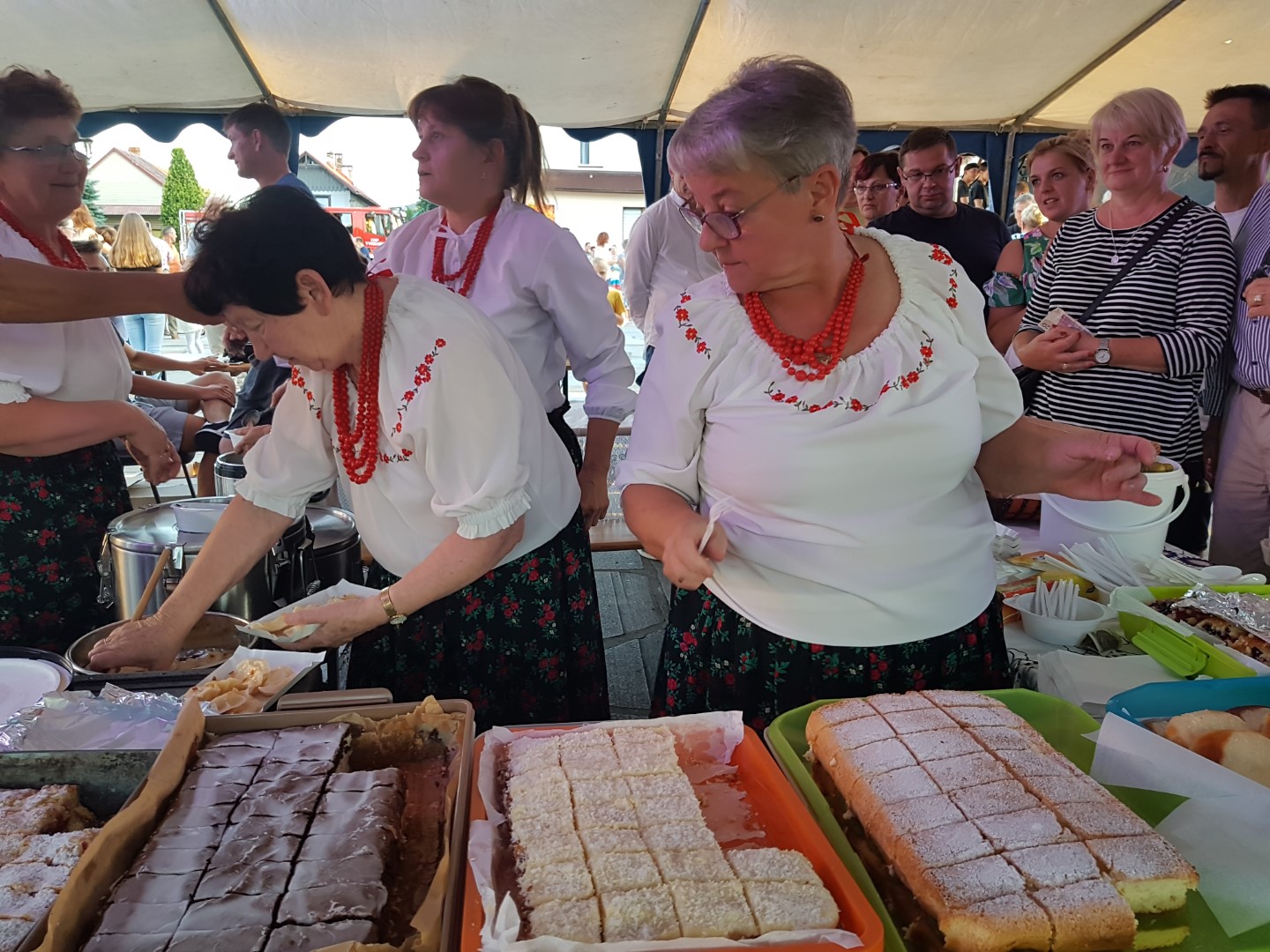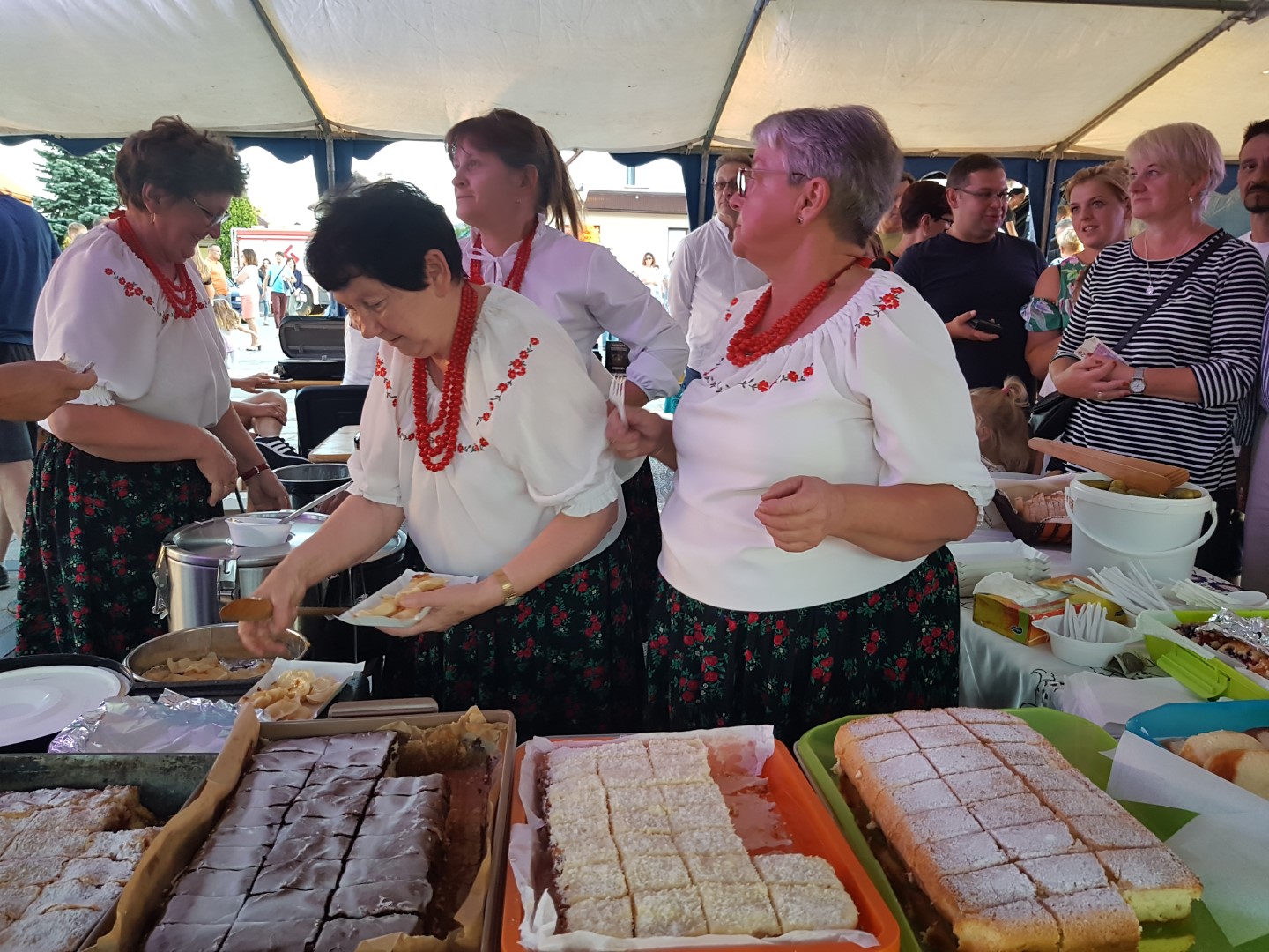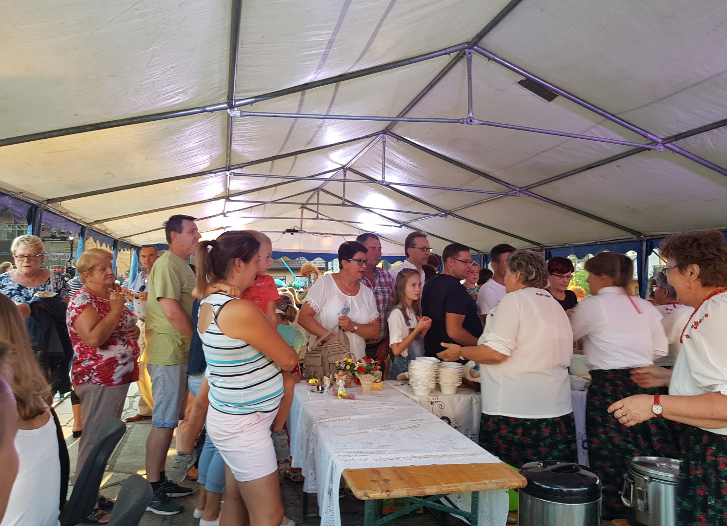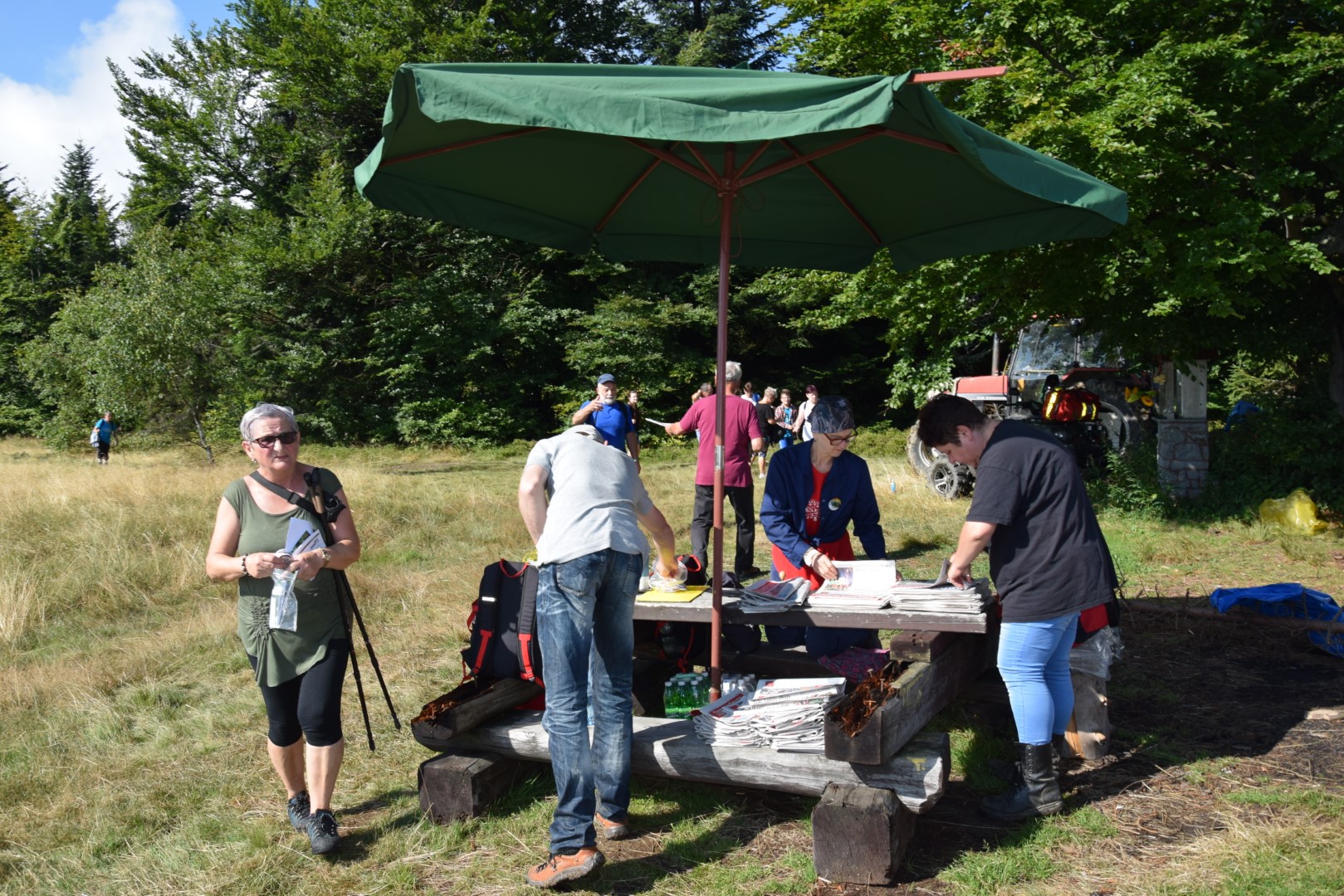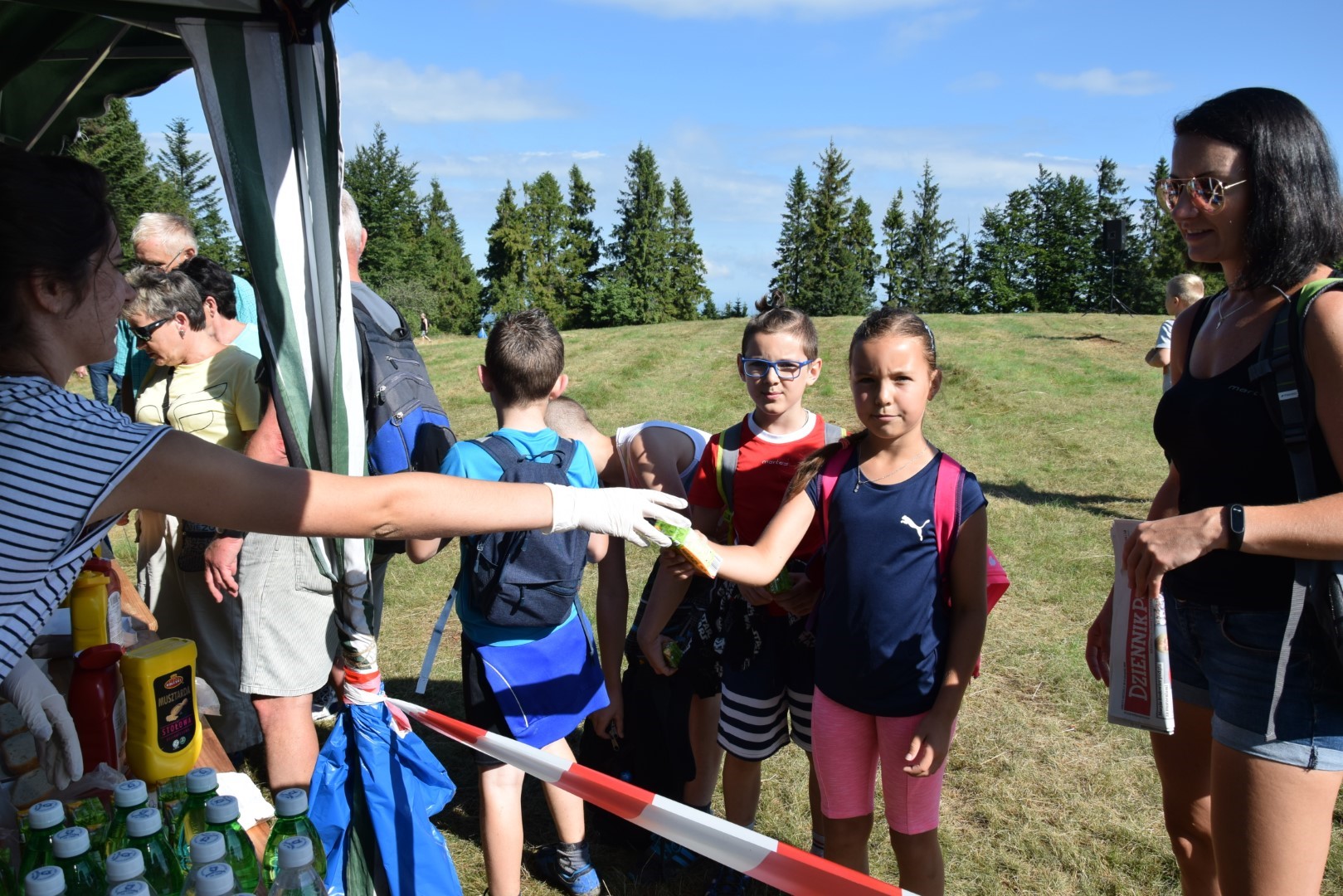 Druhowie z jednostek OSP w Dobrej i Tymbarku, Panie z Koła Gospodyń Wiejskich w Tymbarku i pracownicy Urzędu Gminy w Dobrej, częstowali turystów kiełbaskami z grilla, napojami i soczkami ufundowanymi przez Firmę Tymbark.