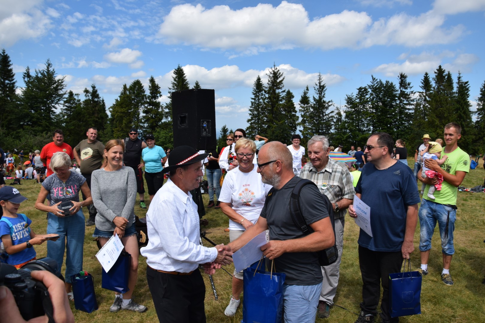 Nagrody ufundowane przez Urzędy Gmin; Tymbark i Dobra w imieniu organizatorów zwycięzcom wręczał wójt Gminy Dobra Benedykt Węgrzyn. W czasie spotkania chór złożony z kilkudziesięciu uczestników kolejny raz wykonał piosenkę – hymn Odkrywców Beskidu Wyspowego.