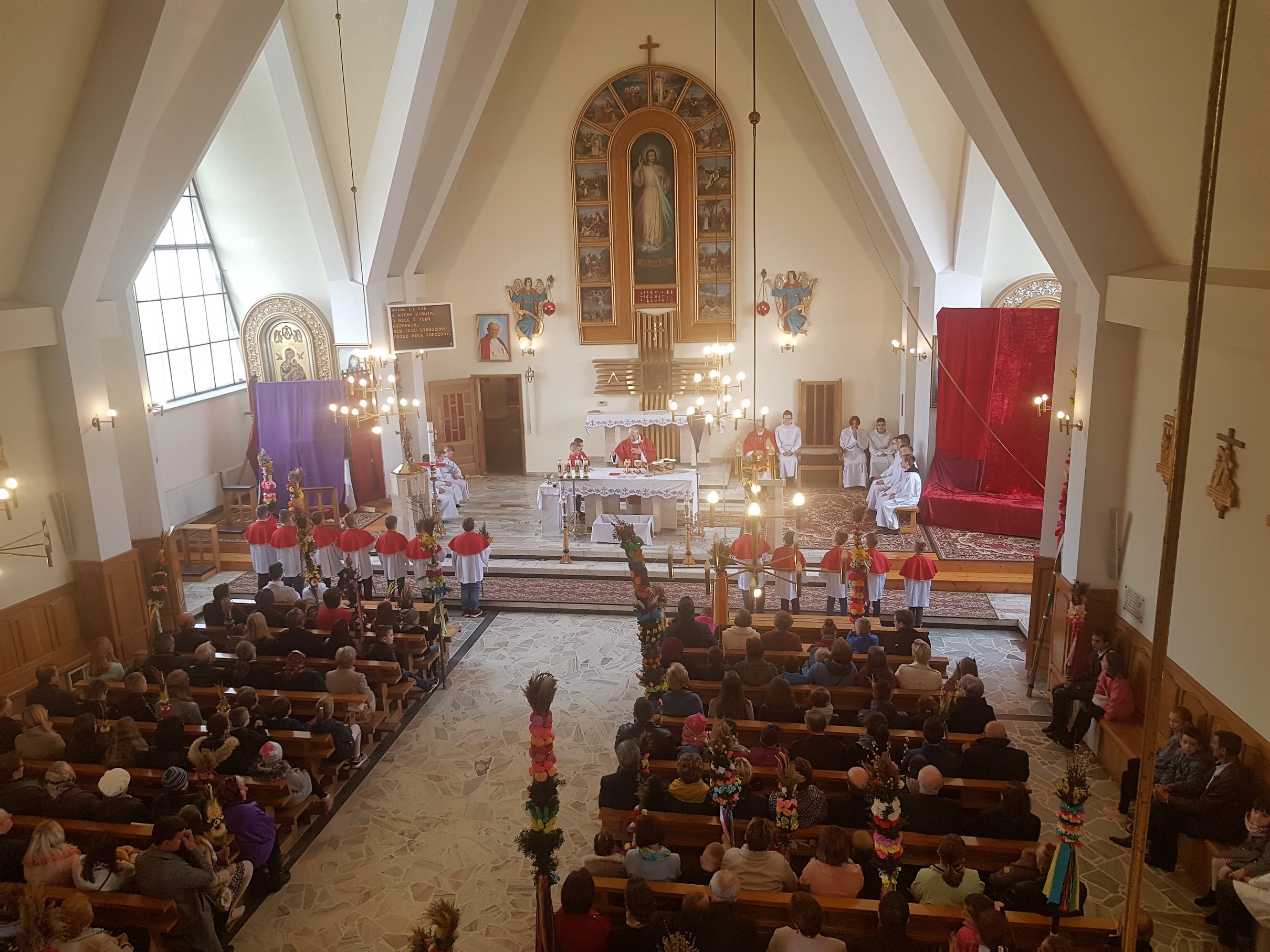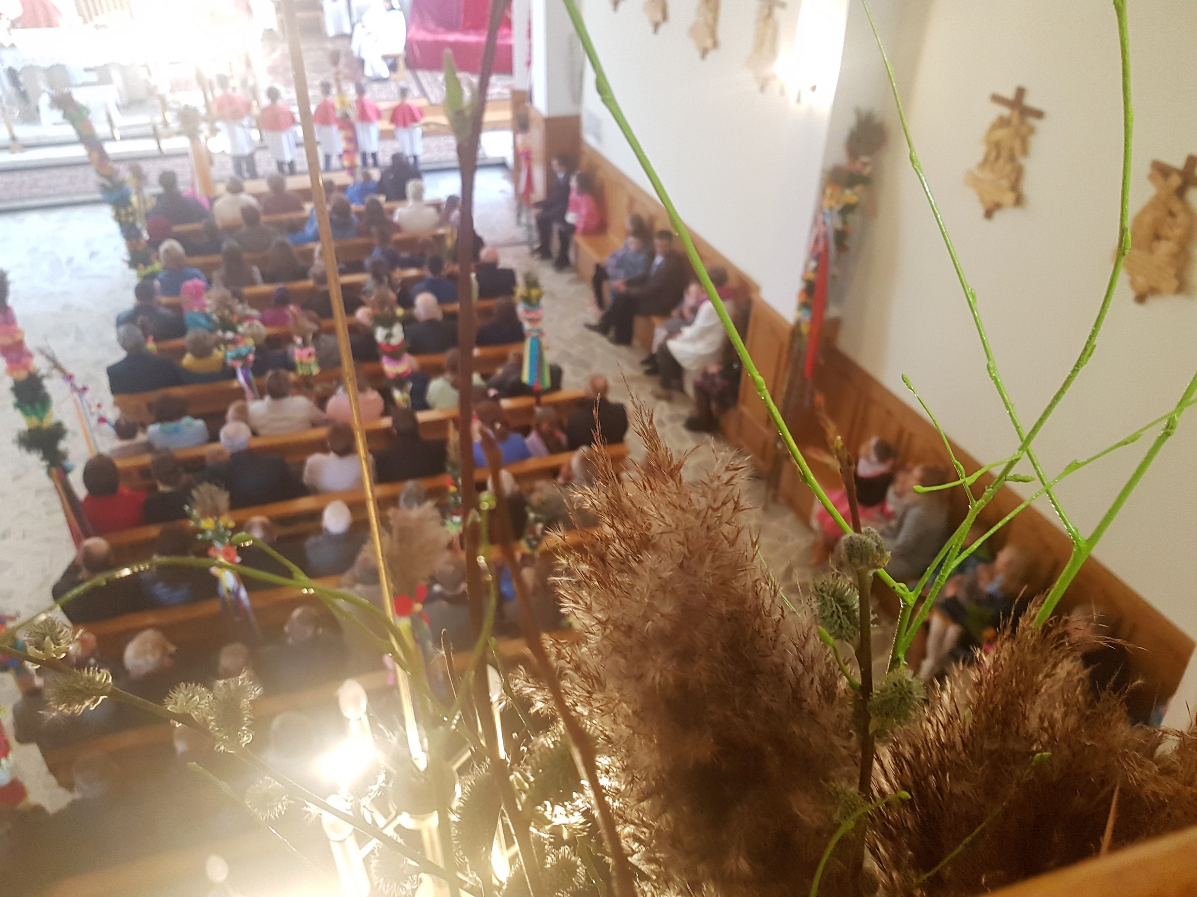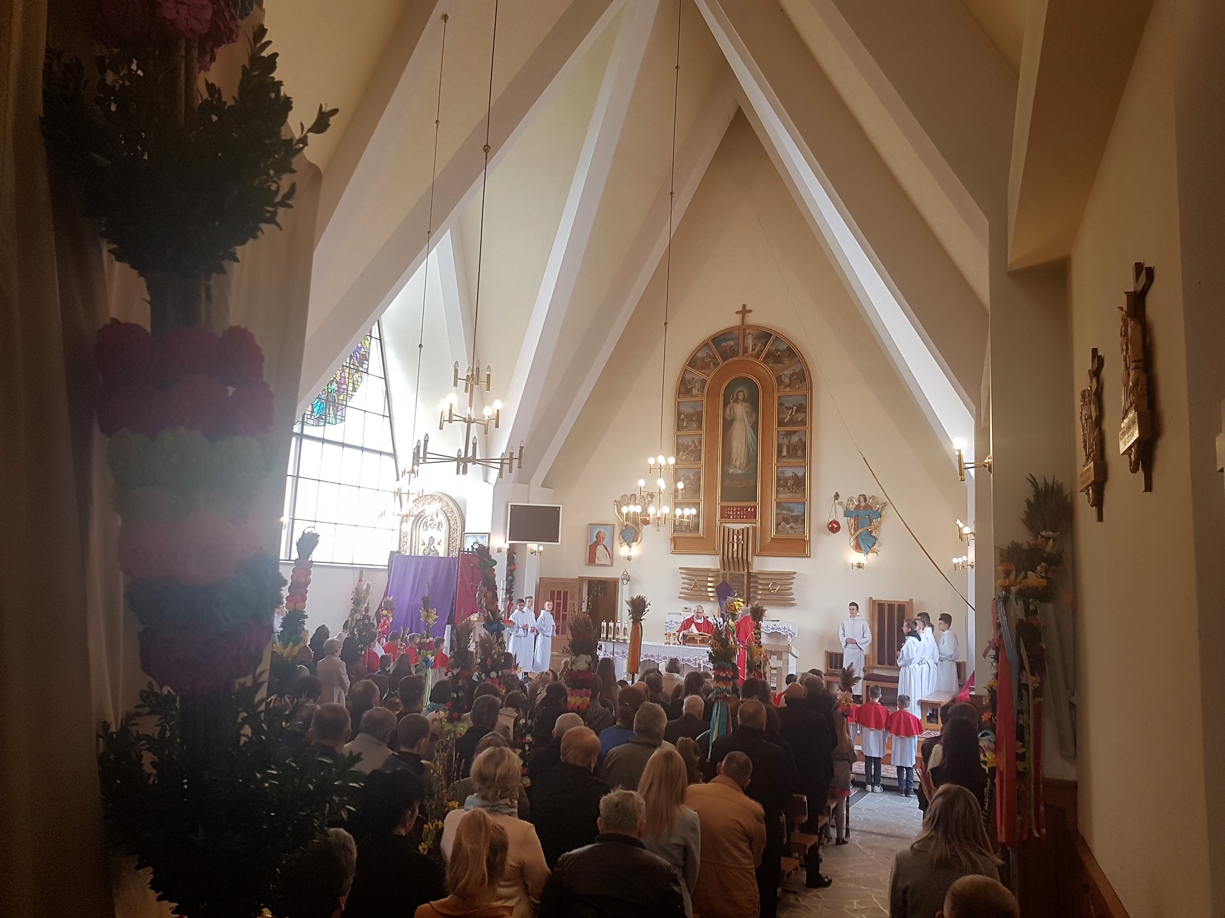 Niedziela Palmowa w Parafii Podłopień rozpoczęła się obrzędem poświęcenia przyniesionych przez wiernych palm wielkanocnych oraz procesją palmową do kościoła, którą poprowadził ksiądz proboszcz Wiesław Orwat. Na Mszy świętej, której przewodniczył ks.proboszcza a w koncelebrze ksiądz prałat Franciszek Malarz, została zaśpiewana Męka Pańska. Zaśpiewali Mirosław Staniszewski, Lucjan Bożek, Piotr Rapacz i Krzysztof Hutek ((poniżej fragment wykonania). Po Mszy św. odbył się tradycyjny już konkurs palm wielkanocnych.