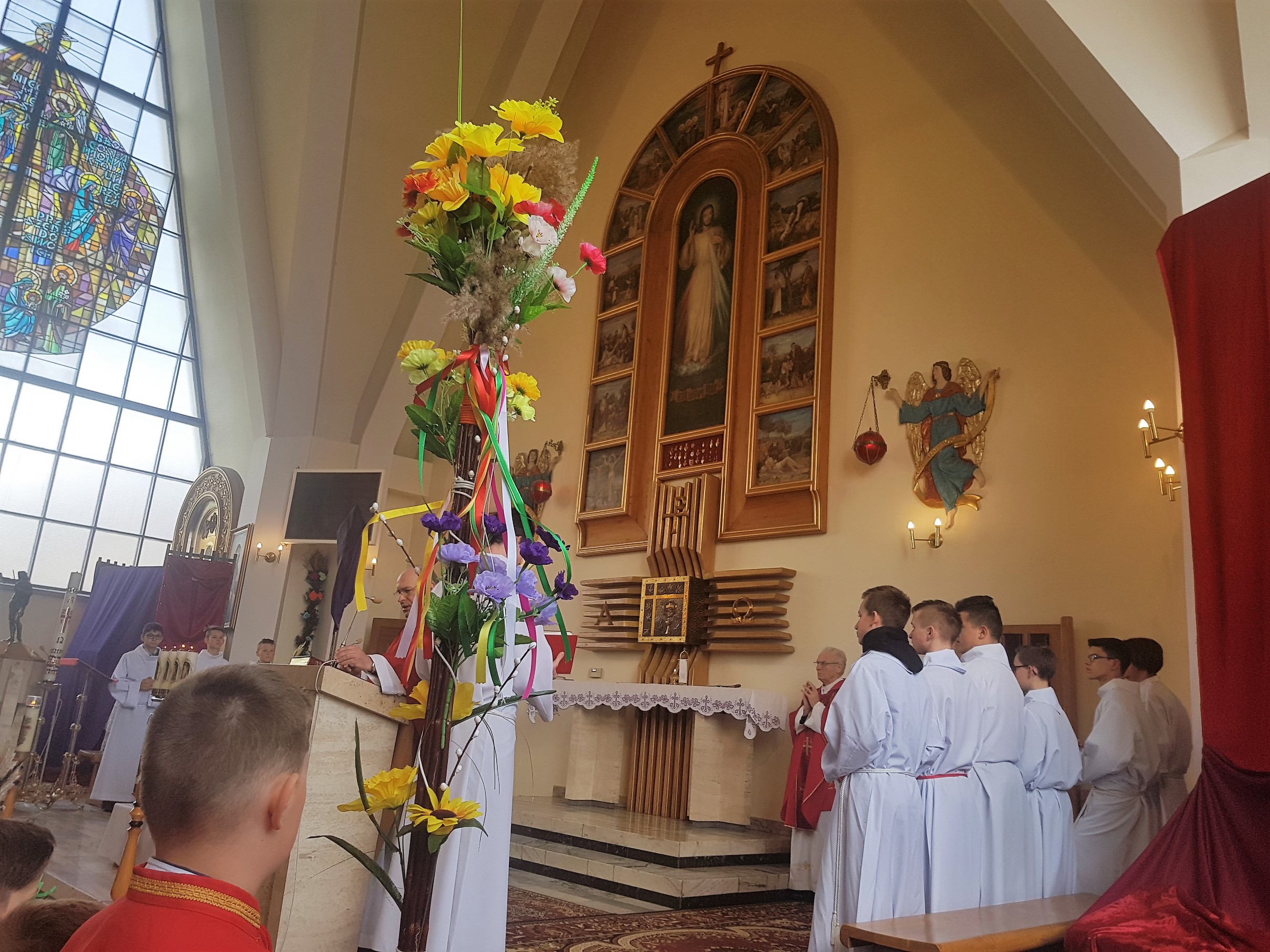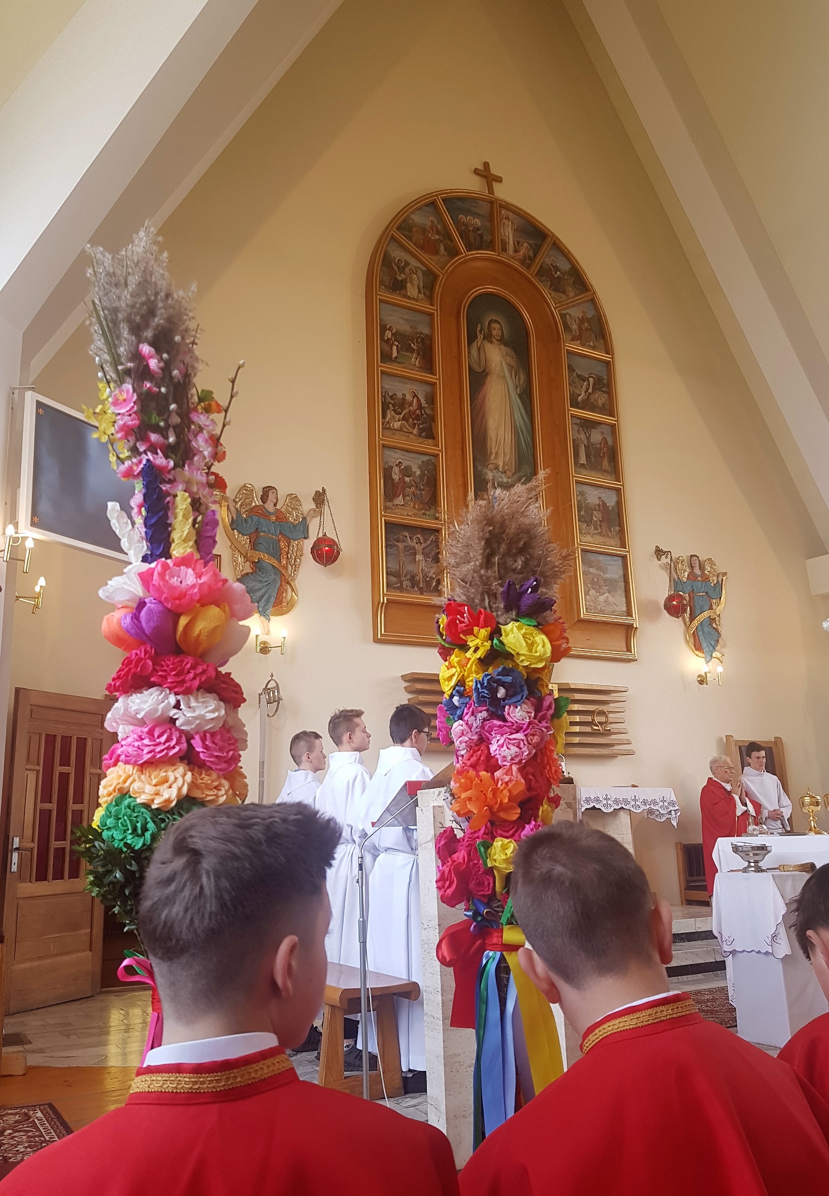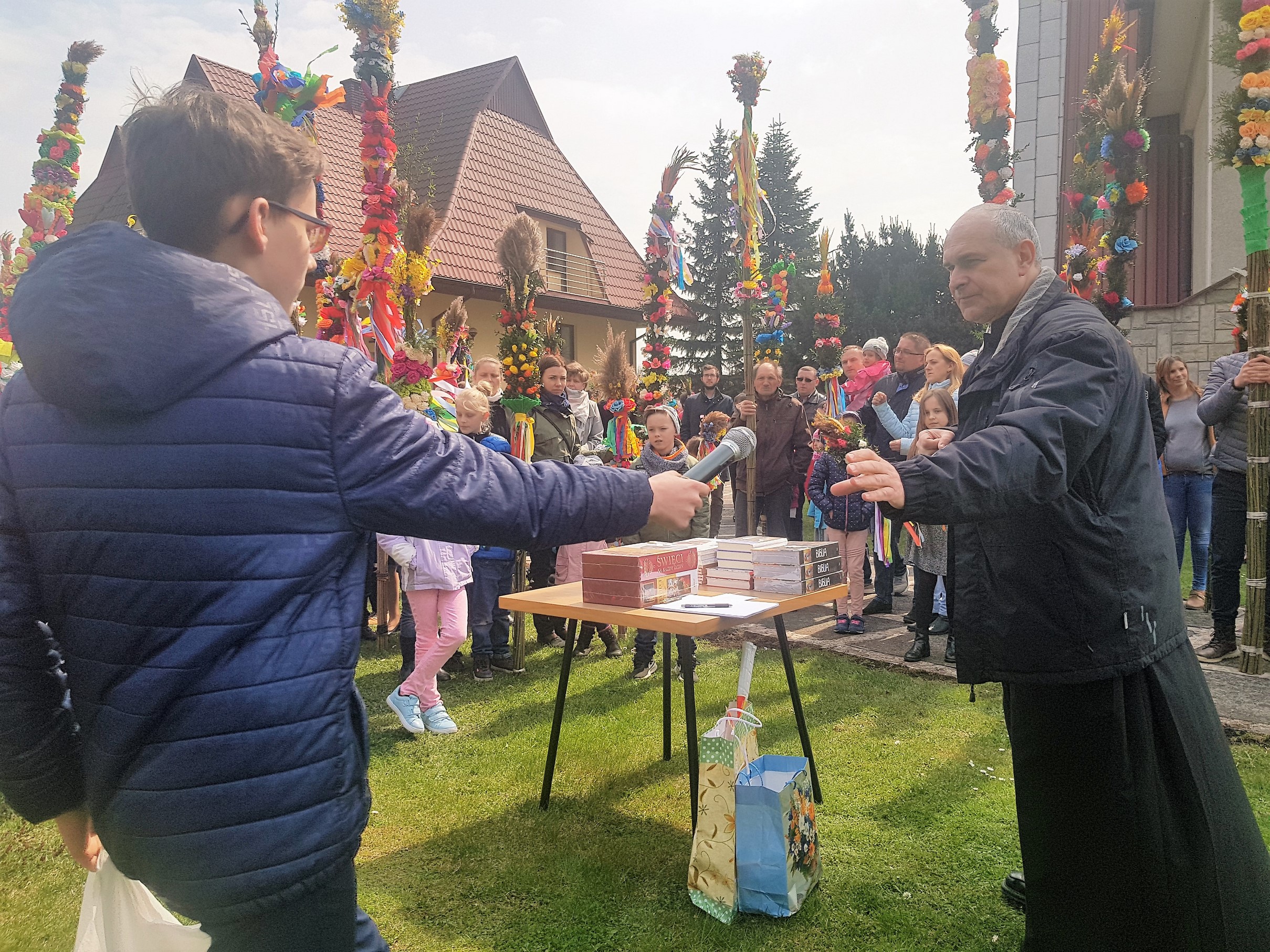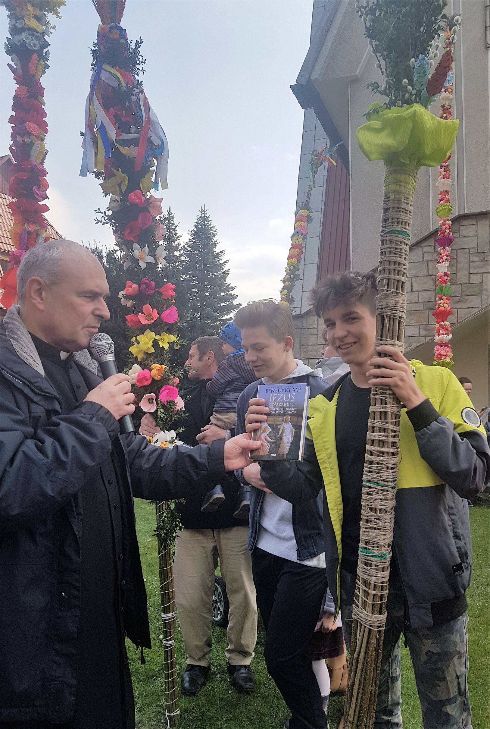 Niedziela Palmowa w Parafii Podłopień rozpoczęła się obrzędem poświęcenia przyniesionych przez wiernych palm wielkanocnych oraz procesją palmową do kościoła, którą poprowadził ksiądz proboszcz Wiesław Orwat. Na Mszy świętej, której przewodniczył ks.proboszcza a w koncelebrze ksiądz prałat Franciszek Malarz, została zaśpiewana Męka Pańska. Zaśpiewali Mirosław Staniszewski, Lucjan Bożek, Piotr Rapacz i Krzysztof Hutek ((poniżej fragment wykonania). Po Mszy św. odbył się tradycyjny już konkurs palm wielkanocnych.
